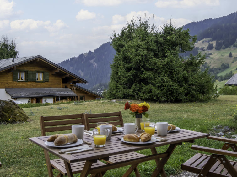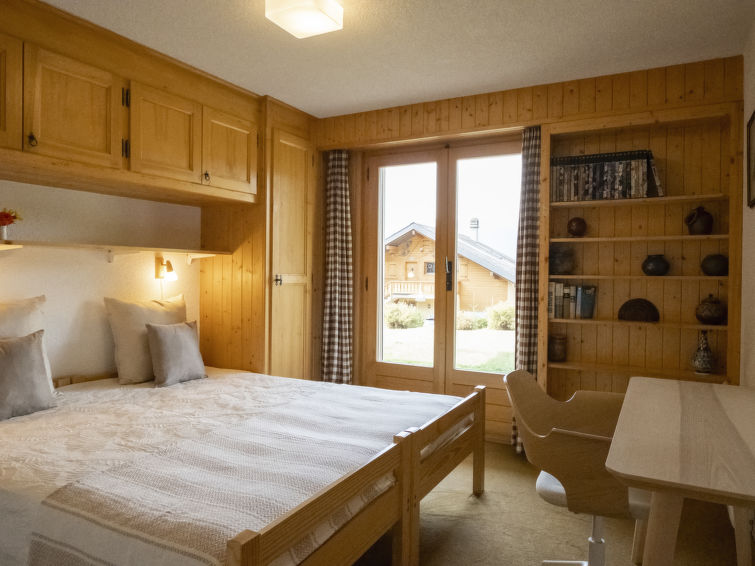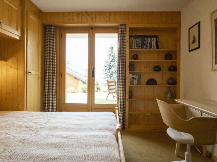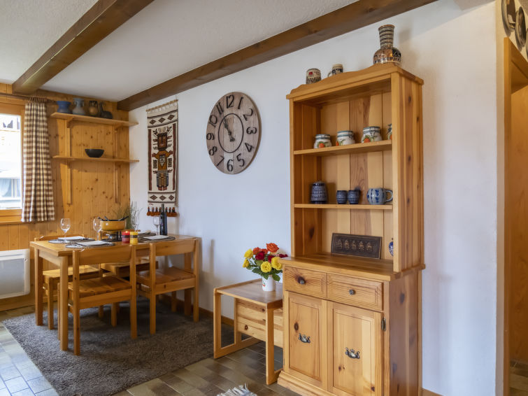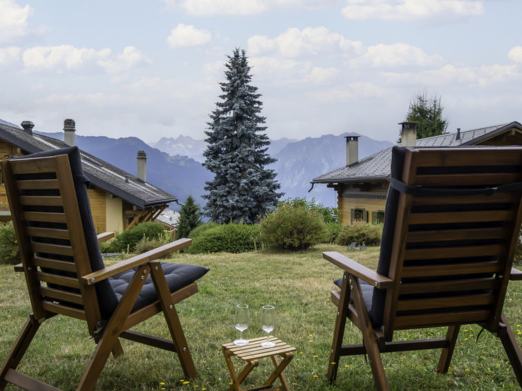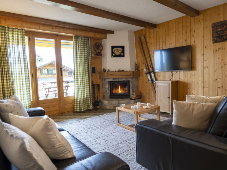 "Baroudeur B04", 3-Zimmer-Wohnung 73 m2, im Erdgeschoss. Geräumig und hell, zweckmässig eingerichtet: grosses Wohn-/Esszimmer mit offenem Kamin, Kabel-TV und E-Heizung. Ausgang zur Terrasse. 1 Zimmer mit 1 Doppelbett (2 x 90 cm, Länge 190 cm). Ausgang zur Terrasse. 1 Zimmer mit 2 Betten (90 cm, Länge 190 cm) (90 cm, Länge 190 cm). Kochnische (3 Kochplatten, Backofen, Geschirrspüler, Toaster, Wasserkocher, elektrische Kaffeemaschine, Kapseln für die Kaffeemaschine (Nespresso) extra, Racletteofen, Fondue Set (Käse)). Bad. Grosse Terrasse, Garten, Rasen. Terrassenmöbel, Liegestühle (2). Panoramasicht auf die Berge und die Ortschaft. Zur Verfügung: Haartrockner. Internet (Wireless LAN, gratis). Parkplatz Nr. 04 beim Haus. Bitte beachten: Nichtraucher-Unterkunft.