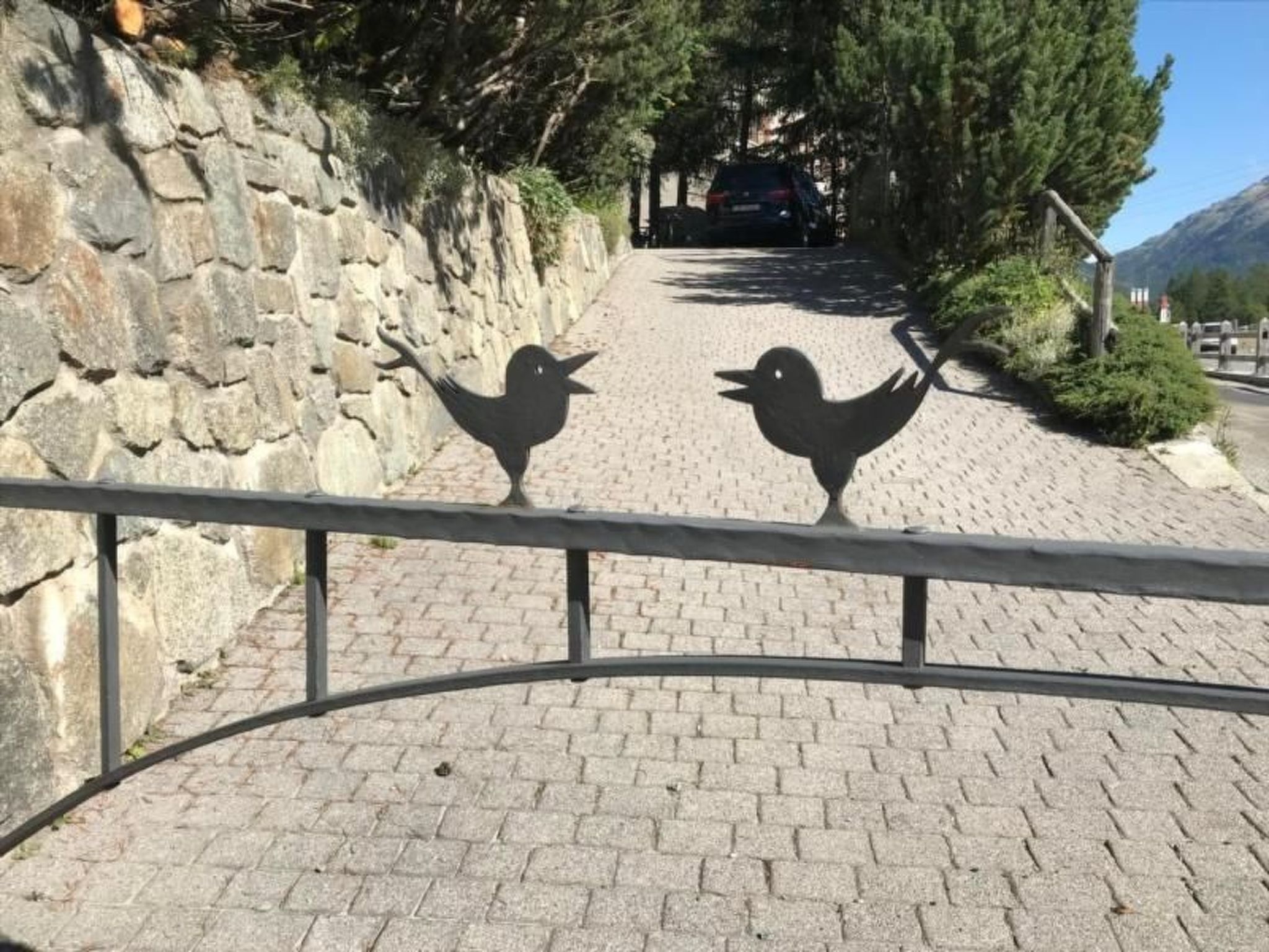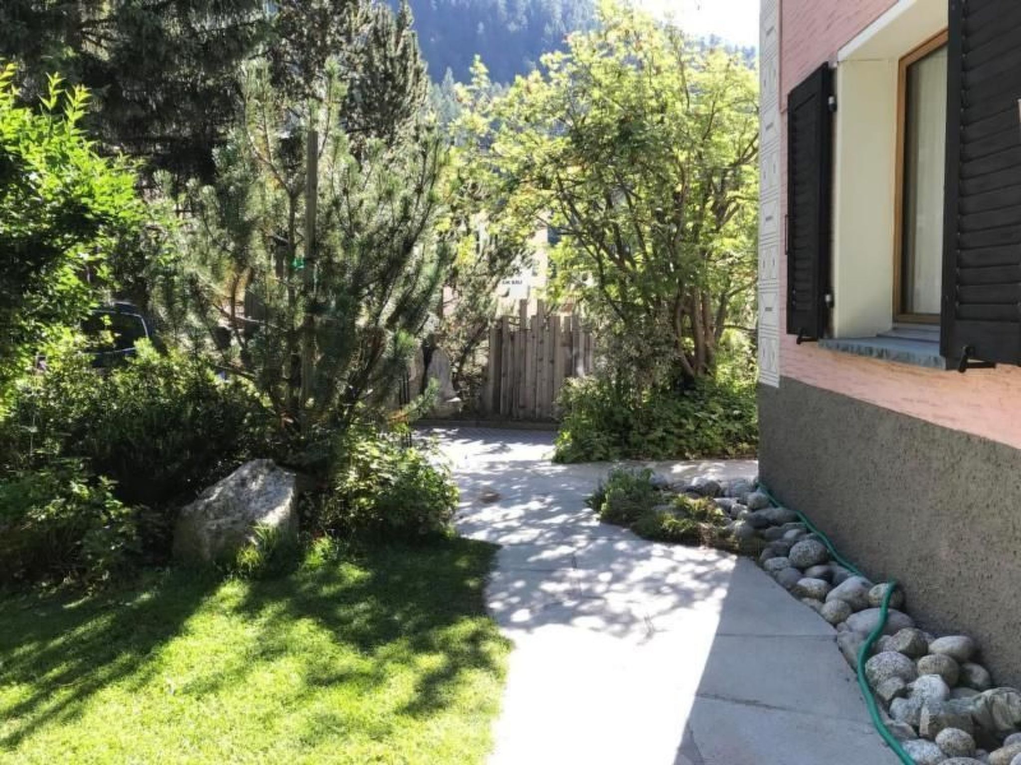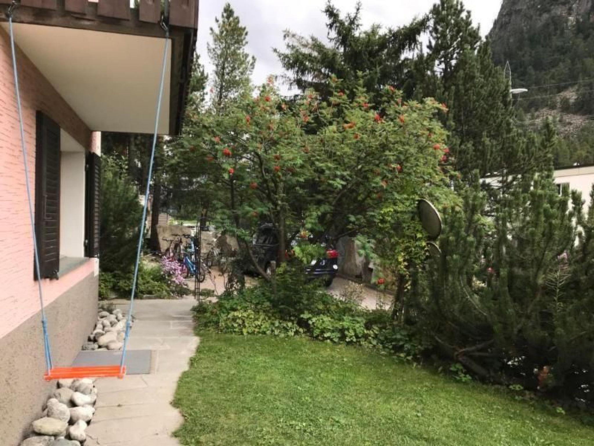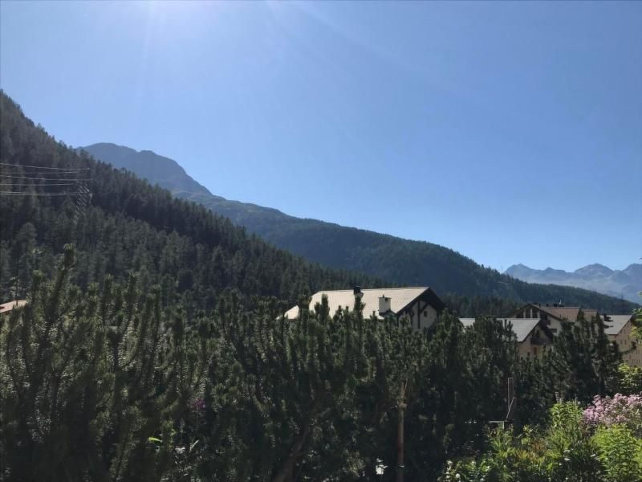 Die Ferienwohnung befindet sich in einem Zweifamilienhaus am Rande von Pontresina, direkt am Wanderweg, mit Blick zum Piz Palü, Richtung Berninapass.