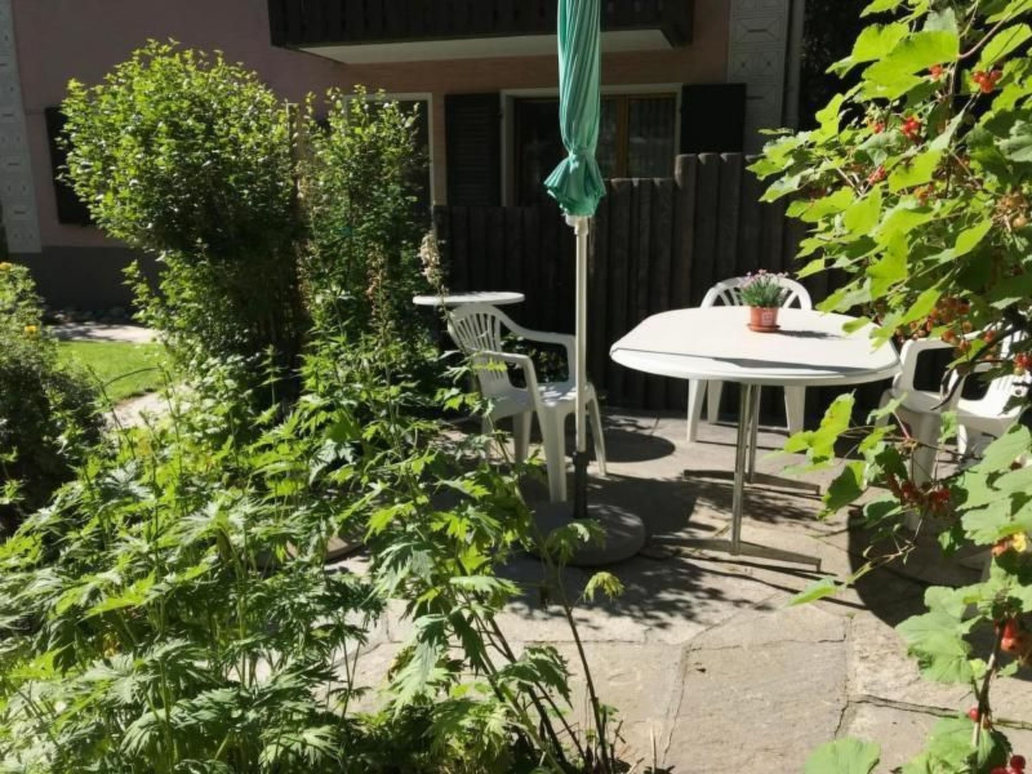Direkter Zugang zum Garten mit Gartensitzplatz und Grillmöglichkeiten.