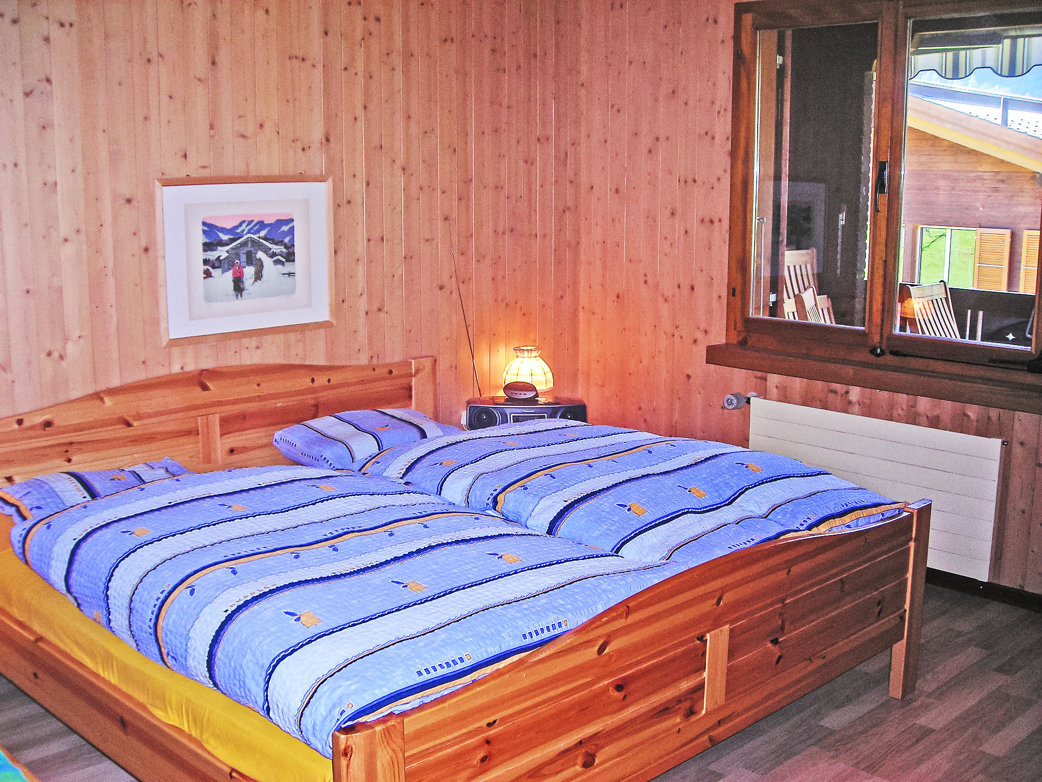 5-Zimmer-Wohnung 100 m2 auf 2 Stockwerken, im Obergeschoss, Südlage. Zweckmässig und gemütlich eingerichtet: Wohn-/Esszimmer mit offenem Kamin und Kabel-TV (Flachbildschirm). Ausgang zum Balkon. 1 Zimmer mit 2 Betten (90 cm, Länge 200 cm). Ausgang zum Balkon. Offene Küche (Backofen, Geschirrspüler, 4 Glaskeramikplatten, Toaster, Wasserkocher, elektrische Kaffeemaschine, Kapseln für die Kaffeemaschine (Delizio) extra). Bad/WC. Obergeschoss: 1 abgeschrägtes Zimmer mit 1 Bett (90 cm, Länge 200 cm), 1 franz. Bett (140 cm, Länge 200 cm). 1 Zimmer mit 2 Betten (90 cm, Länge 200 cm). Dusche/WC. Sehr schöne Sicht auf die Berge und Eigernordwand. Zur Verfügung: Haartrockner. Internet (Wireless LAN, gratis). Parkplatz, Garage Nr. 9, Studer beim Haus, Höhe 210 cm, Breite 200 cm. Bitte beachten: Nichtraucher-Unterkunft. Eigener Eingang, Feuerlöscher.