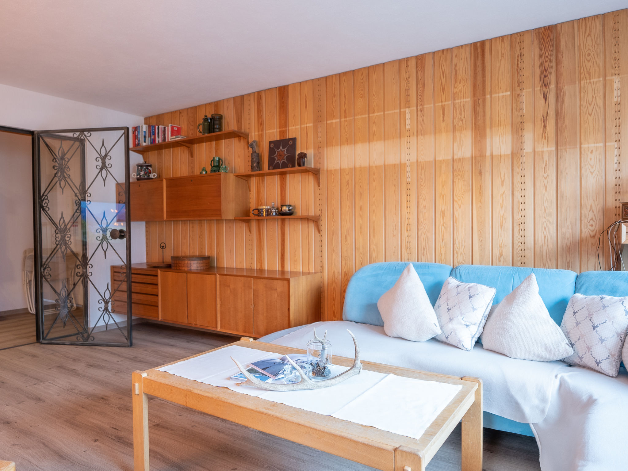 "Chesa Clüs 6", 3-Zimmer-Wohnung 85 m2 im 2. Stock. Geräumig, einfach und gemütlich eingerichtet: grosses Wohn-/Esszimmer mit TV. Ausgang zum Balkon. 1 Zimmer mit 1 x 2 Etagenbetten (90 cm, Länge 190 cm). 1 Doppelzimmer mit 2 Betten (90 cm, Länge 200 cm). Küche (Backofen, Geschirrspüler, 4 Glaskeramikplatten, Toaster, Wasserkocher, Mikrowelle, elektrische Kaffeemaschine, Kapseln für die Kaffeemaschine (Nespresso) extra, Racletteofen, Fondue Set (Chinoise, Käse)). Bad, sep. WC. Holzdielenboden. Balkon. Balkonmöbel. Sicht auf die Berge und die Landschaft. Zur Verfügung: Bügeleisen, Haartrockner. Internet (Wireless LAN, gratis). Parkplatz Nr. 6 (1 Auto) beim Haus. Bitte beachten: geeignet für Familien. Nichtraucher-Unterkunft, Nichtraucher-Haus. Kein Fahrstuhl. Flexibilität bei der Bettenaufteilung: Es stehen mehr Schlafmöglichkeiten zur Verfügung als die maximal zugelassene Personenzahl, diese darf dennoch nicht überschritten werden.