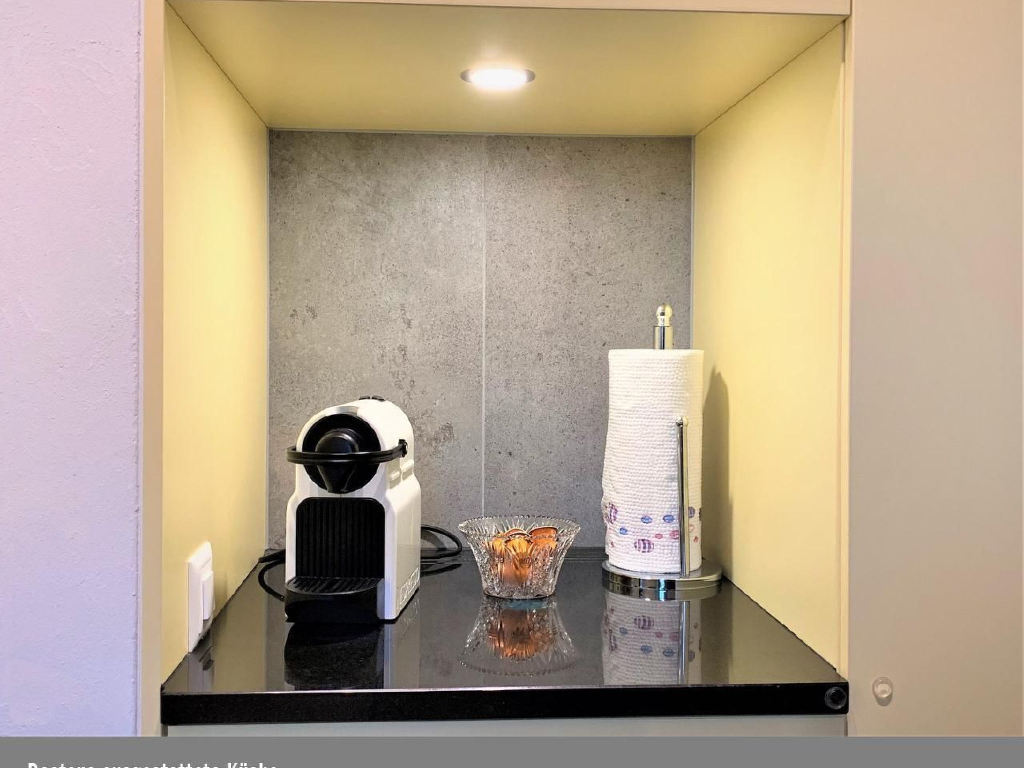 Innen erwartet Sie eine total renovierte, moderne Einzimmerwohnung auf etwa 40 Quadratmetern. Der kombinierte Wohn- und Schlafbereich ist mit einem modernen Boxspring-Bett, einem Sofa sowie einem Relax-Sessel ausgestattet und bietet alles, was man für einen erholsamen Aufenthalt benötigt – einschließlich TV/Radio mit Satellitenempfang. Die Küche lässt keine Wünsche offen und ist komplett ausgestattet mit Kühlschrank inklusive Gefrierfach, Backofen, Wasserkocher, Nespresso- und Filterkaffeemaschine sowie Toaster. Das frisch renovierte Badezimmer verfügt über eine großzügige, begehbare Dusche. Gratis Wifi ist natürlich auch vorhanden.