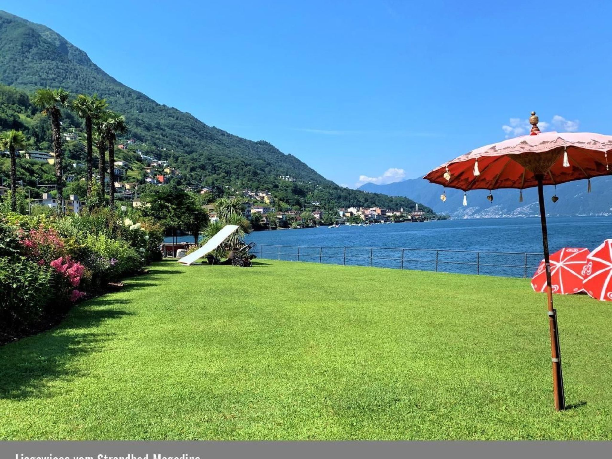 Im Außenbereich lädt die gemütliche Terrasse mit ihrem fantastischen Panorama zum Ausruhen ein. Sie bietet einen grandiosen Blick über den Lago Maggiore und die umliegenden Berge. Nur wenige Schritte von Ihrer Haustür entfernt befindet sich zudem ein großzügiger Swimming-Pool mit gemütlicher Liegewiese – ideal, um die Seele baumeln zu lassen. Ihre Unterkunft verfügt über eine Tiefgarage, in der Ihr Auto sicher und kühl parken kann.