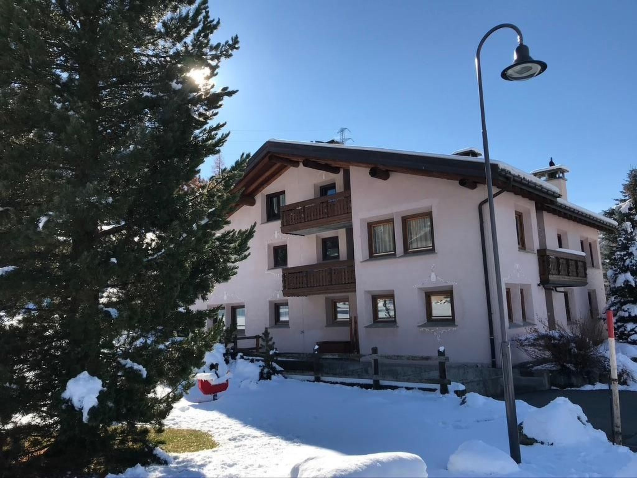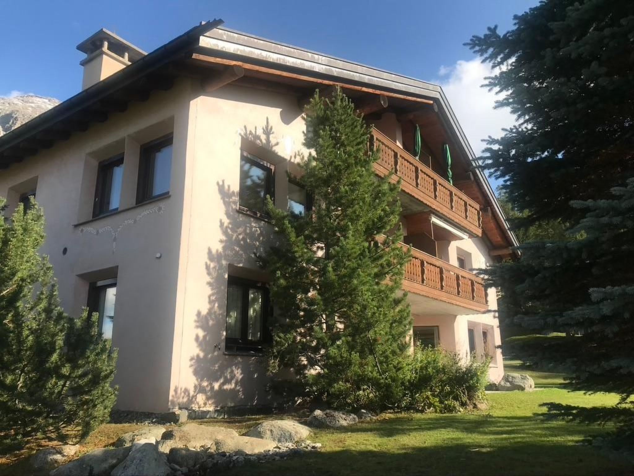 Der Außenbereich überzeugt mit seiner idyllischen Lage in der Chesa Alexandra und bietet direkten Zugang zu zahlreichen Wanderwegen und Fahrradstrecken. Familien genießen die Nähe zu drei großen Kinderspielplätzen, die mit Holz und Grillplätzen ausgestattet sind und ganzjährig zur Verfügung stehen. Die Skilift Muesella ist praktisch vor der Haustür, einschließlich eines italienischen Restaurants an der Talstation – ein wahrer Genuss für Wintersportbegeisterte und Feinschmecker gleichermaßen.