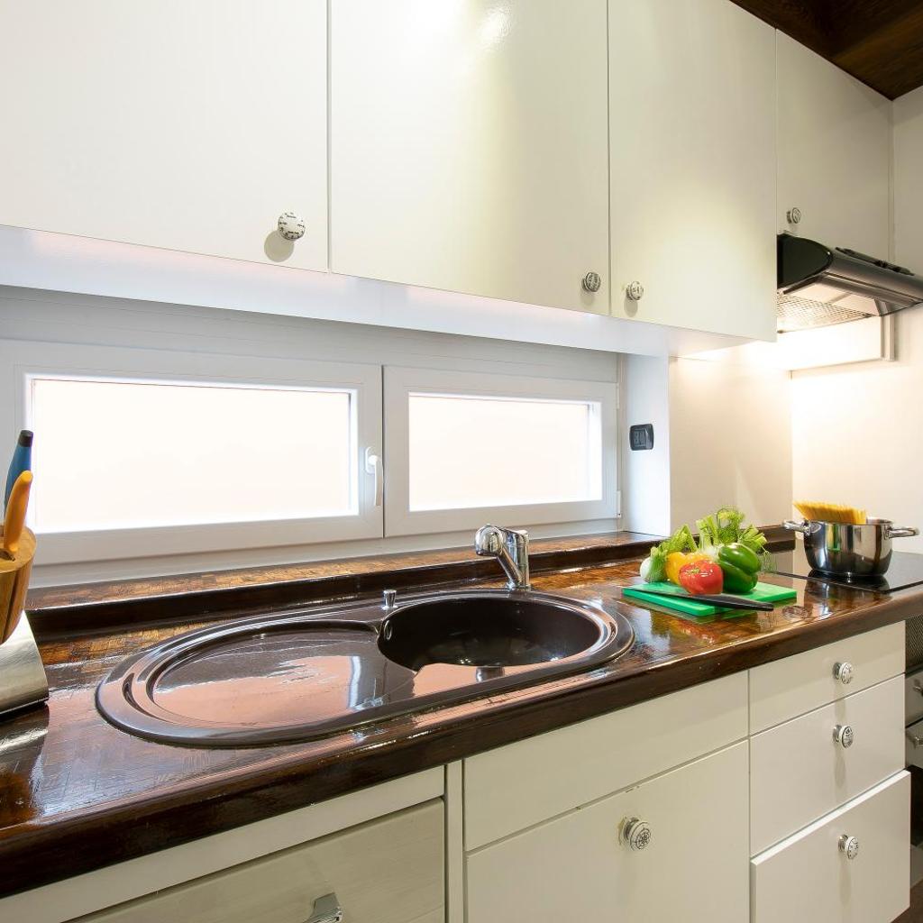 Alle Wohneinheiten verfügen über eine Terrasse mit Seeblick, eine Küche mit einem Kühlschrank und einem Geschirrspüler sowie ein eigenes Badezimmer mit einer Dusche. Es gibt einen Ofen, eine Mikrowelle und eine Herdplatte sowie eine Kaffeemaschine und einen Wasserkocher.