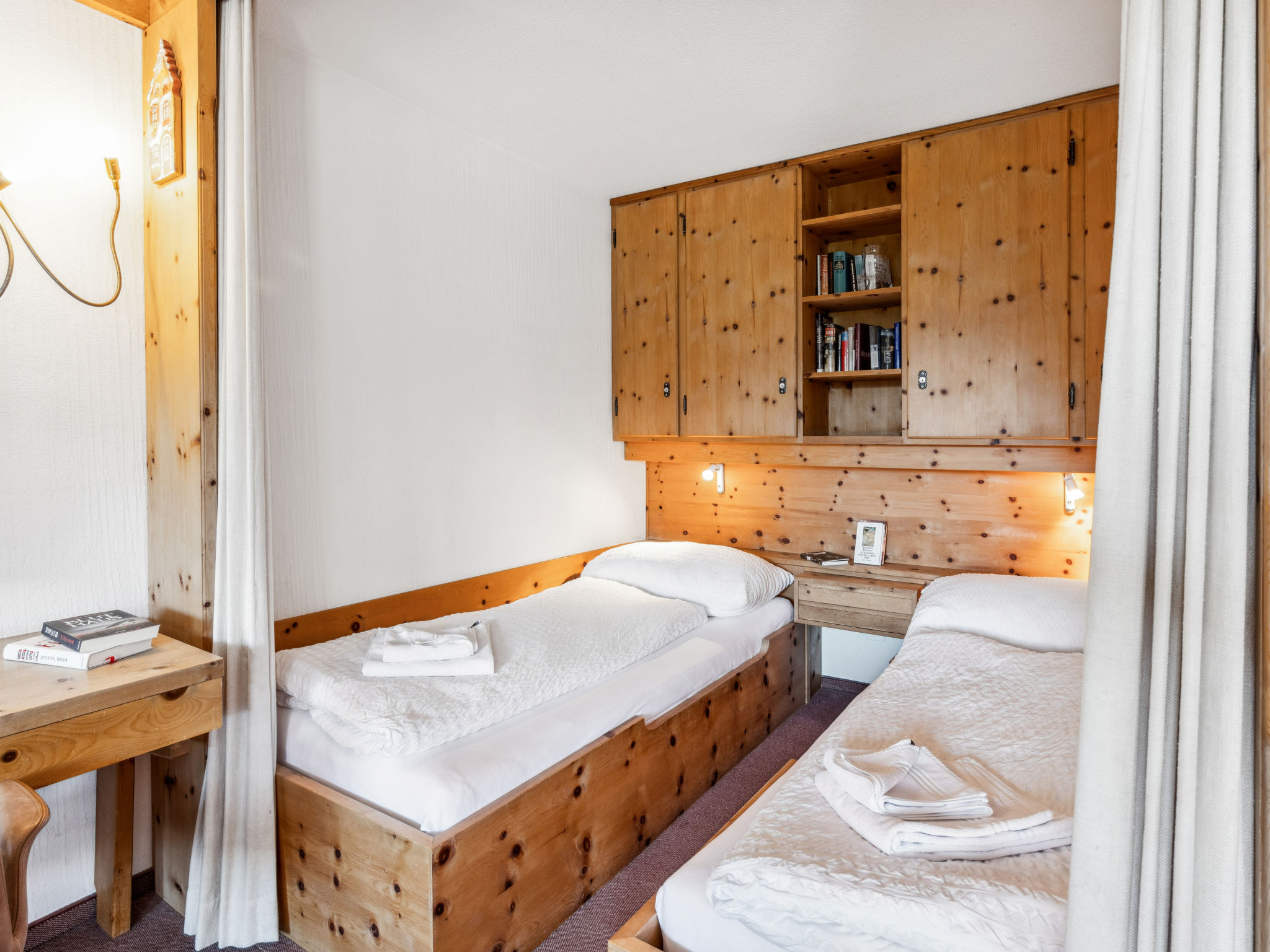 "Guardaval Apt 606", 1-Zimmer-Wohnung 50 m2 im 6. Stock. Komfortabel und rustikal eingerichtet: Wohn-/Esszimmer mit 2 Wandschrankbetten und Kabel-TV (Flachbildschirm), Radio. Ausgang zum Balkon. Schlafnische mit Vorhang mit 2 Betten. Küche (Backofen, Geschirrspüler, 4 Glaskeramikplatten). Bad/WC. Balkon 7 m2, Südlage. Schöne Sicht auf die Berge, die Landschaft und die Ortschaft. Zur Verfügung: Internet (WLAN, gratis). Parkplatz. Bitte beachten: Nichtraucher-Unterkunft. Anstelle eines abgeschlossenen Schlafzimmers befinden sich manche Schlafplätze in einem offenen Bereich (Galerie, Nische etc.). 11736