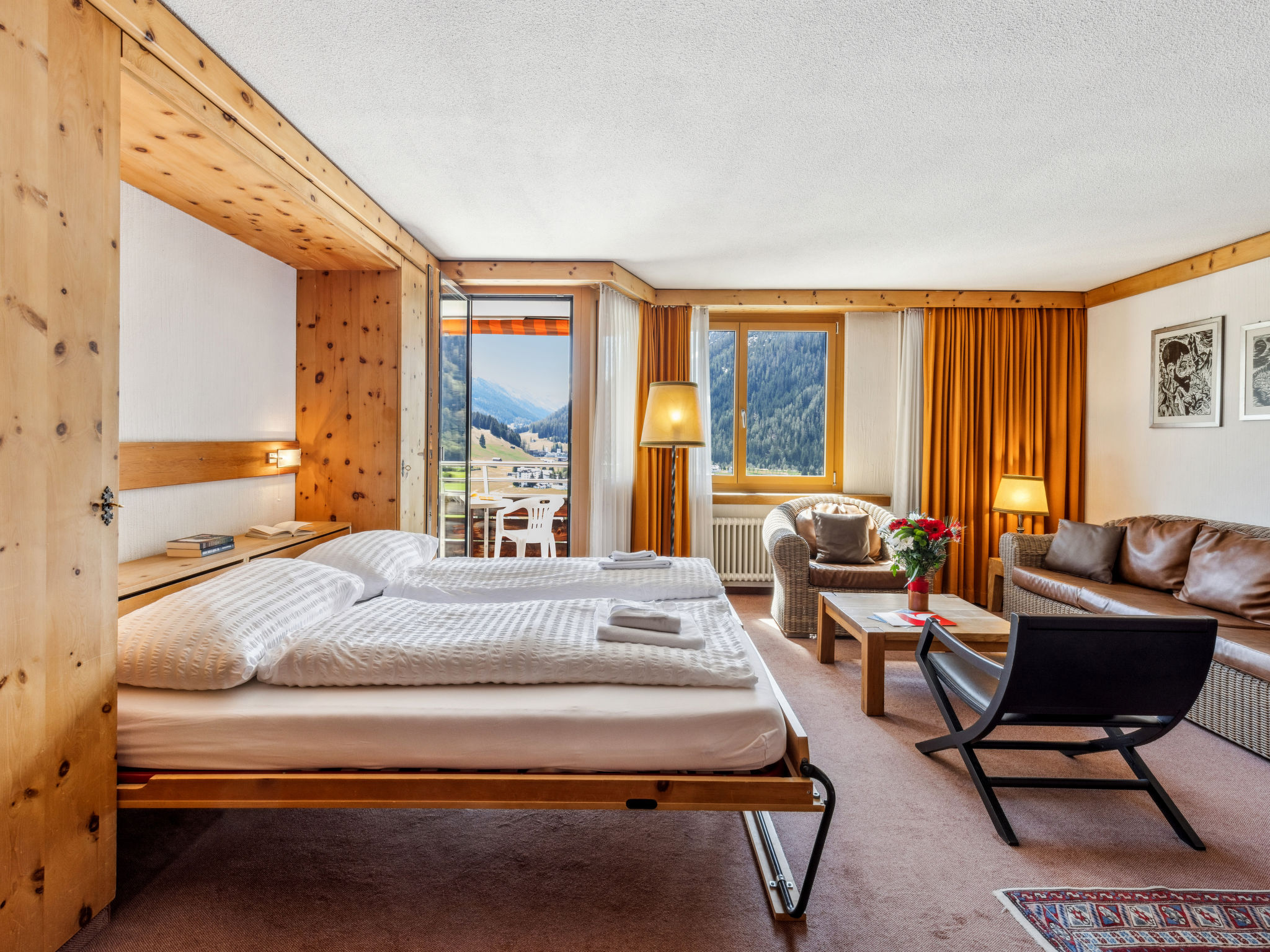 Davos: Appartementhaus "Guardaval (Utoring)". Im Ort, zentrale, ruhige, sonnige Lage am Hang, 1 km vom See, 300 m vom Skigebiet. Zur Mitbenutzung: Hallenbad. Im Hause: Empfang, Aufenthaltsraum mit TV, Wireless LAN, Sauna (extra). Spielzimmer, Fahrstuhl, Skiraum, Zentralheizung, Waschmaschine (zur Mitbenutzung). Brötchenservice und Getränkeservice. Schmale Zufahrt bis zum Haus. Parkplatz (überdacht, beschränkte Anzahl, extra), Gemeinschaftsgarage (extra). Einkaufsgeschäft 300 m, Restaurant 300 m, Bushaltestelle, Bahnstation "Davos Dorf" 400 m, Hallenbad 1 km, Badesee 1 km. Bergeisenbahn, Skisportanlagen, Skipisten, Skischule, Schlittelbahn 1.5 km, Langlaufloipe, Eisfeld 300 m. Bekannte Skigebiete sind gut erreichbar: Parsenn 300 m, Jakobshorn 1.5 km. Das Appartementhaus befindet sich oberhalb der Talstation der Parsennbahn und verfügt über eine herrliche Aussicht. Parkplatz + Garage (Reservierung bei Ankunft).