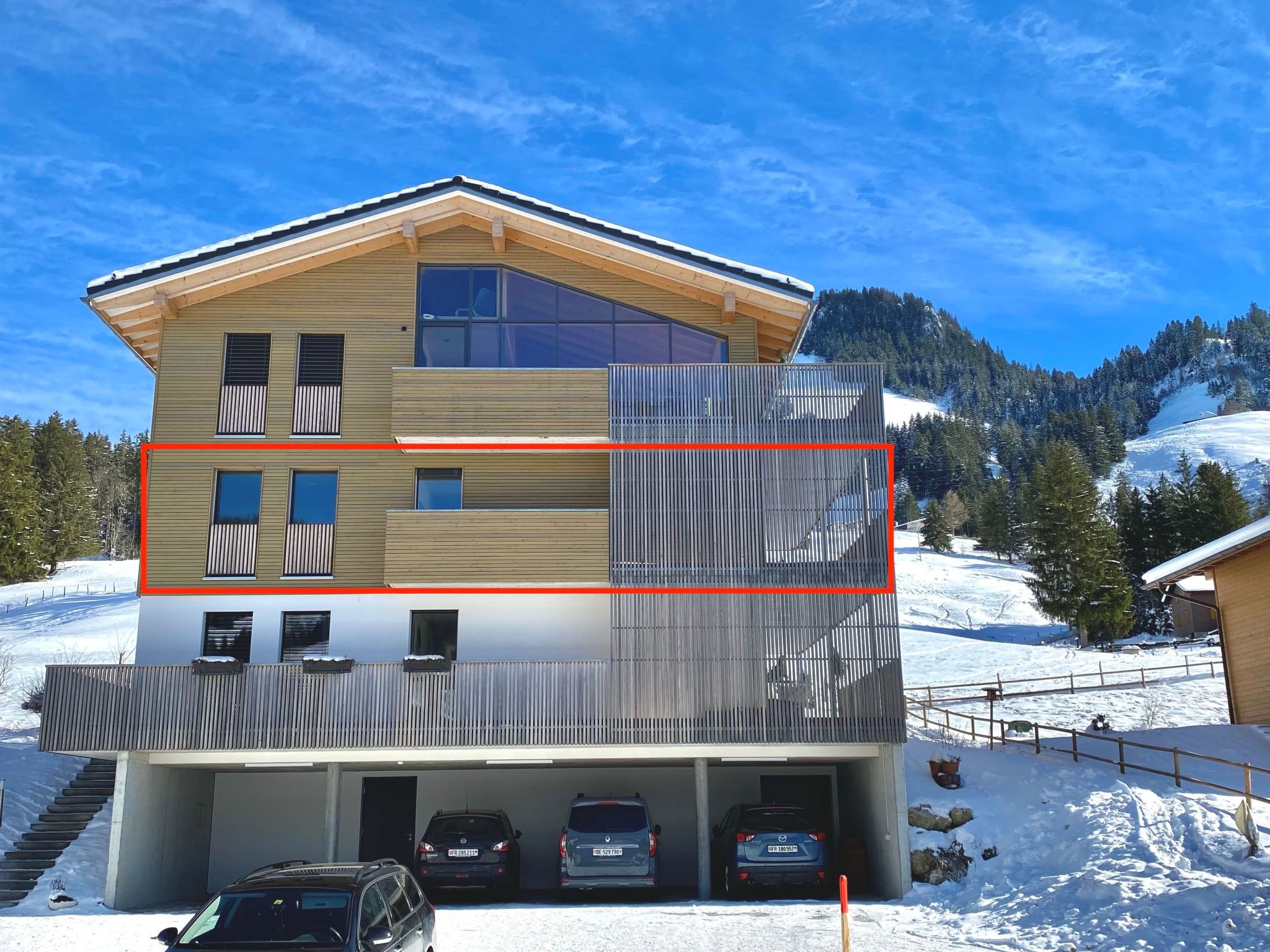 Die Horizon 5 liegt im Obergeschoss und bietet einen wunderbaren Blick auf die Berge und die Landschaft.