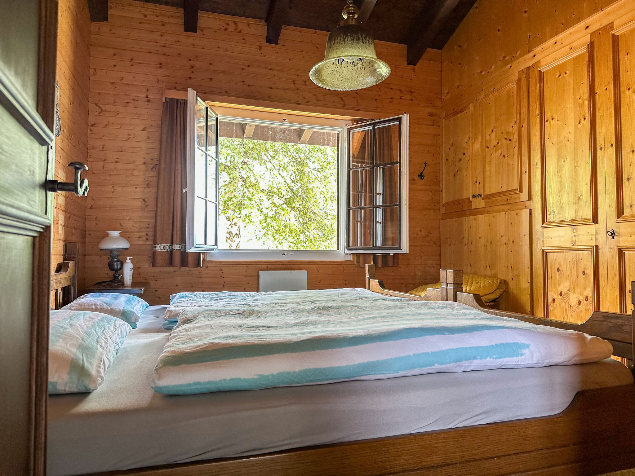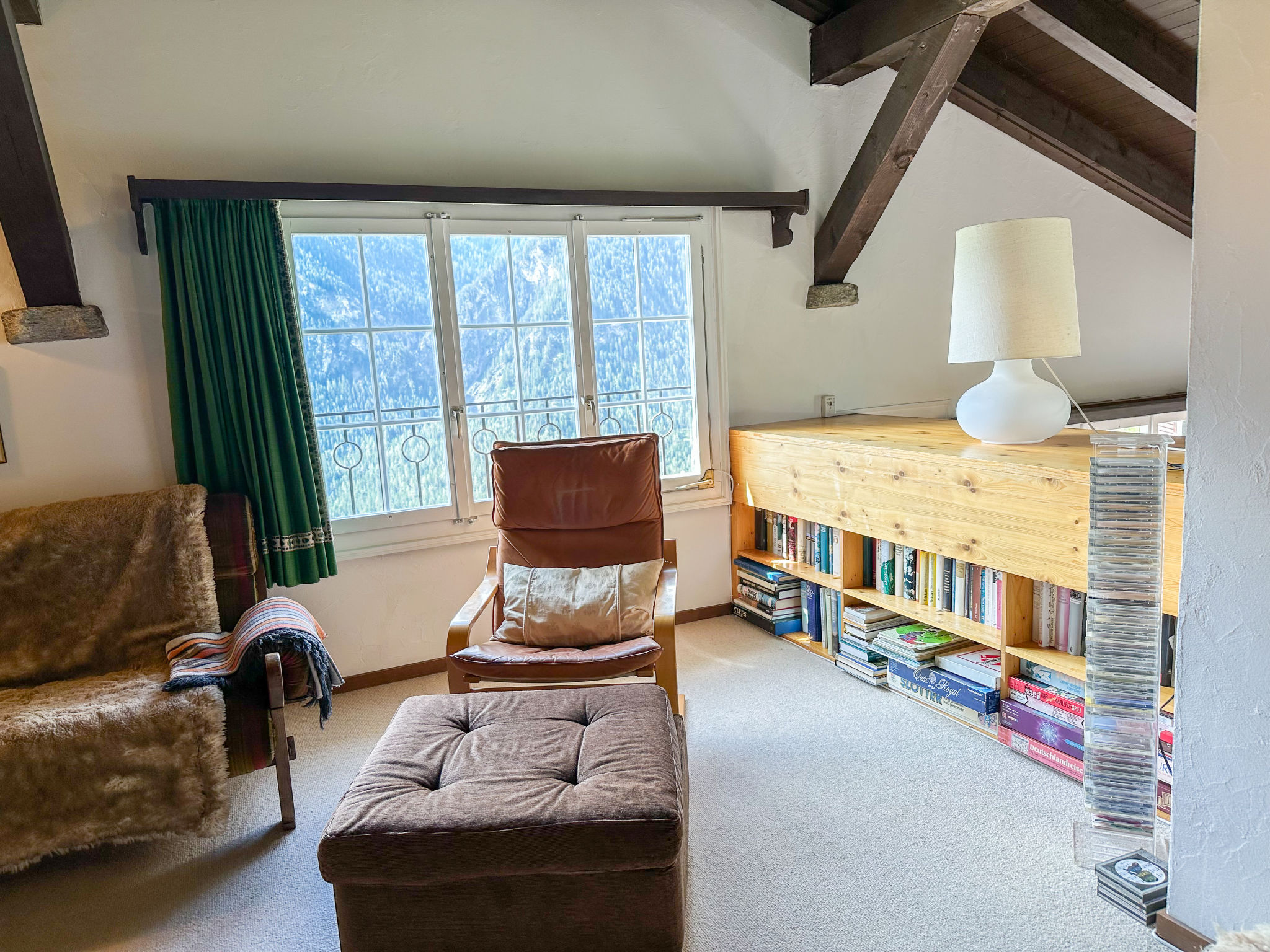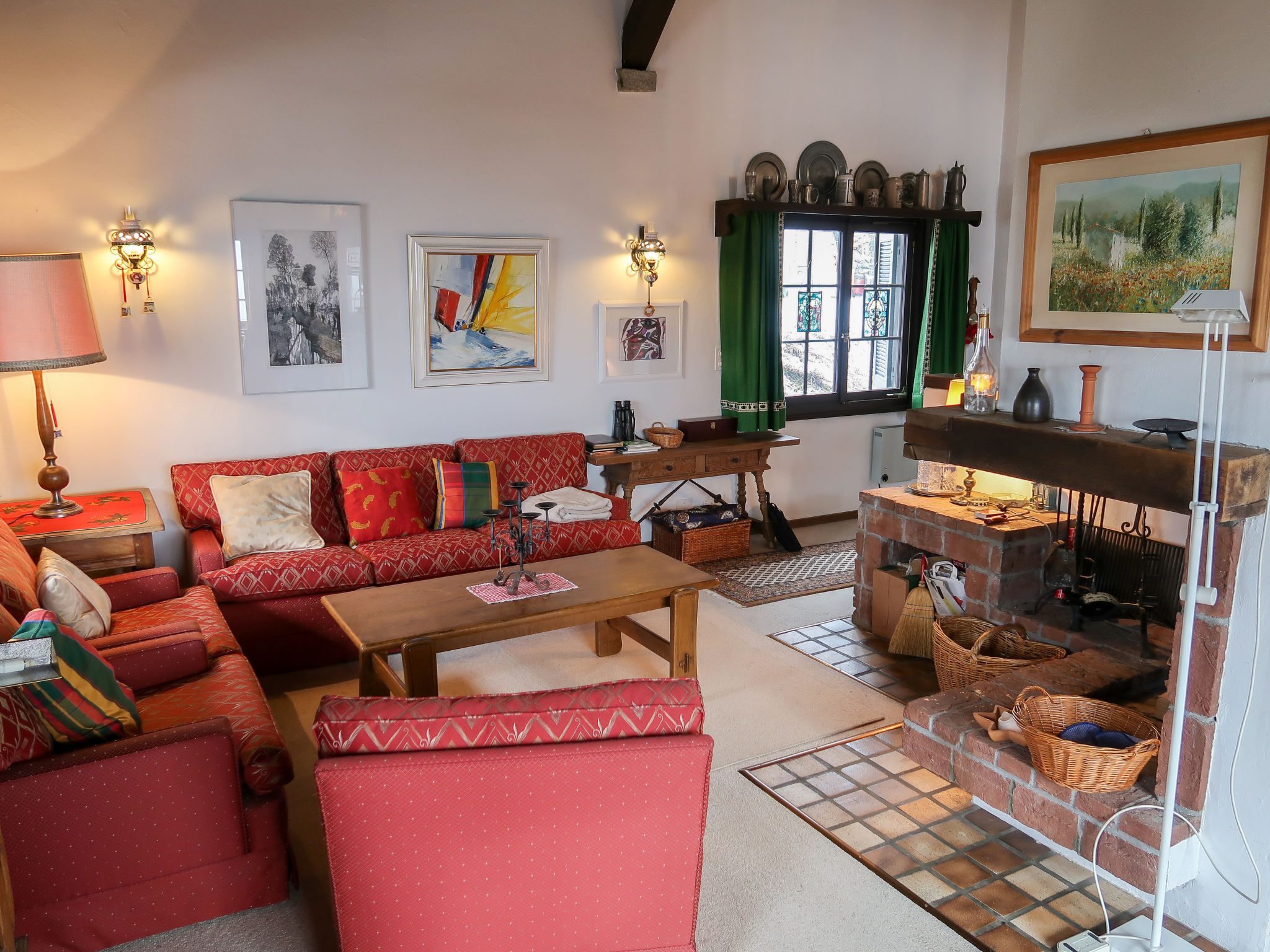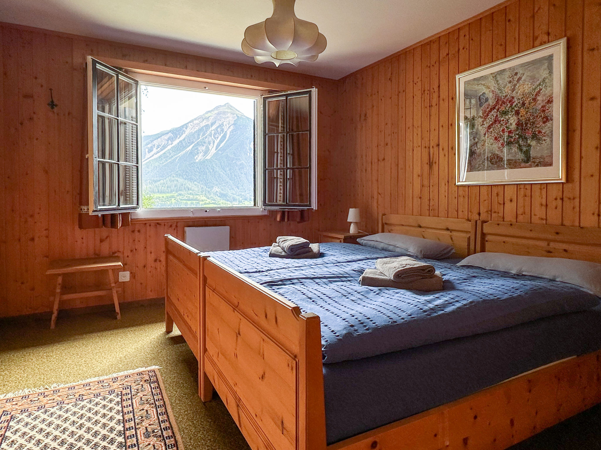 6-Zimmer-Haus 160 m2 auf 3 Stockwerken. Rustikal und gemütlich eingerichtet: Wohn-/Esszimmer mit offenem Kamin und Sat-TV (Flachbildschirm). Ausgang zum Balkon, zum Gartensitzplatz. 1 Zimmer mit 2 Betten. Offene Küche (4 Kochplatten, Backofen, Geschirrspüler). Unteres Geschoss: 1 Zimmer mit 2 Betten und Bad/WC. 1 Doppelzimmer. 1 Zimmer mit 1 Doppeldiwanbett. Bad/WC. Balkon, Gartensitzplatz. Terrassenmöbel, Liegestühle (2), Abstellkammer. Sehr schöne Sicht auf die Berge, das Tal und die Landschaft. Zur Verfügung: Waschmaschine, Wäschetrockner. Internet (WLAN, gratis). Parkplatz, Garage beim Haus. Maximal 1 Haustier/Hund erlaubt.