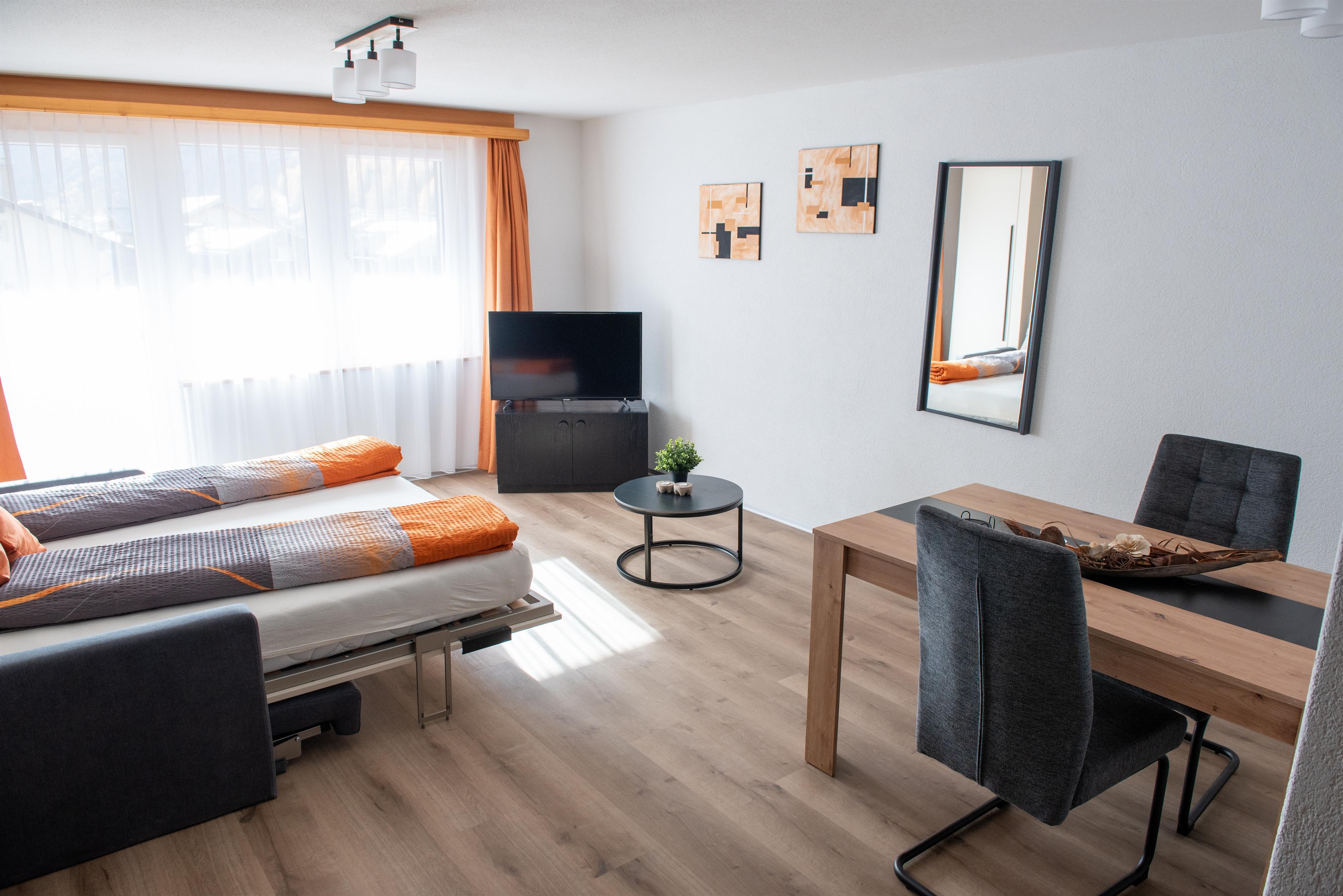 Unsere modern gestalteten Ferienwohnungen bieten ihnen höchsten Komfort und eine gemütliche Atmosphäre. Jedes Appartement ist vollständig ausgestattet und verfügt über eine Küche, ein Bad sowie einen Balkon mit atemberaubendem Blick auf die umliegenden Berge. Hier können sie sich nach einem erlebnisreichen Tag entspannen und die frische Bergluft geniessen.