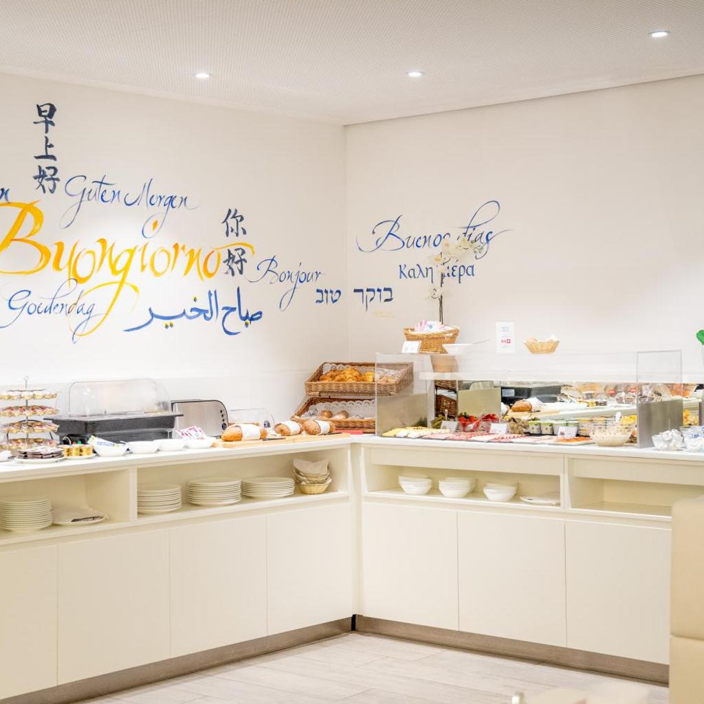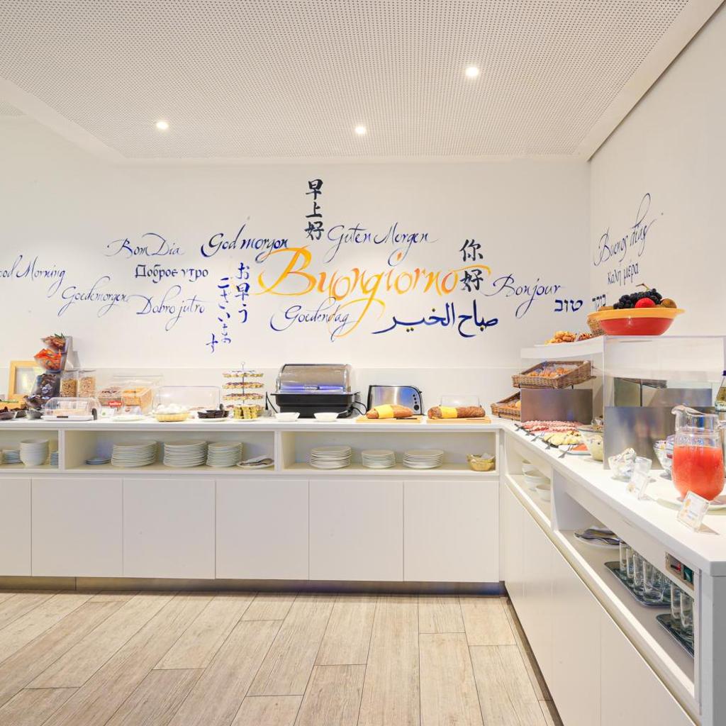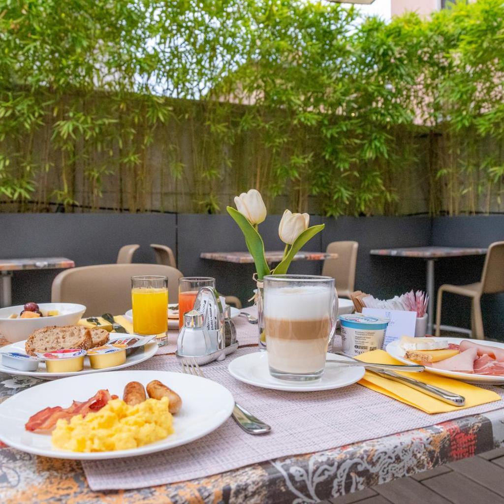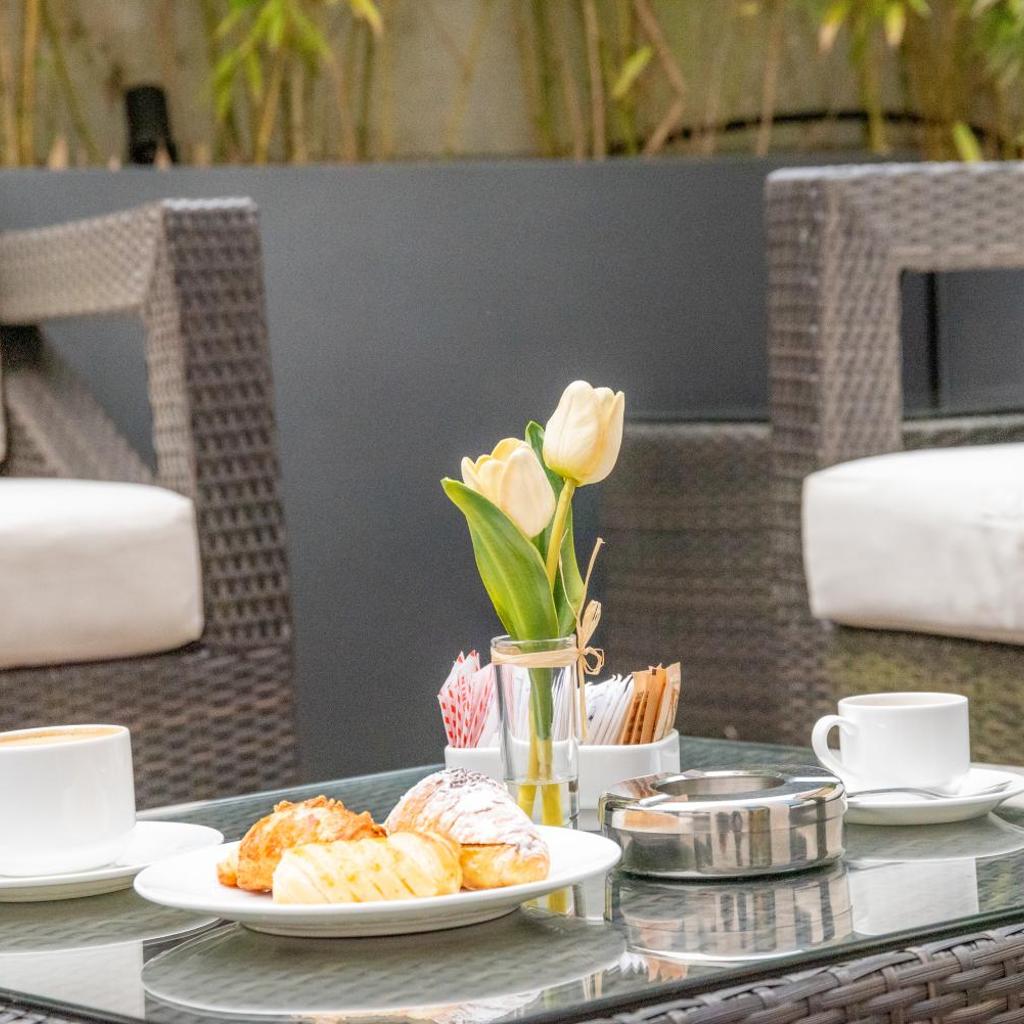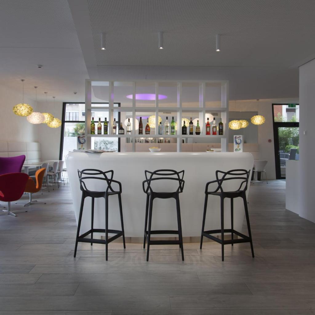 Die Lobby bietet eine Bar, einen Frühstücksbereich sowie Zugang zu einer Terrasse.