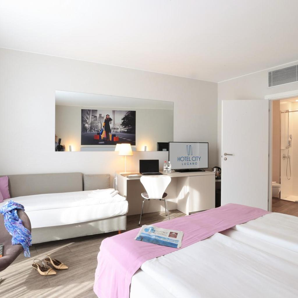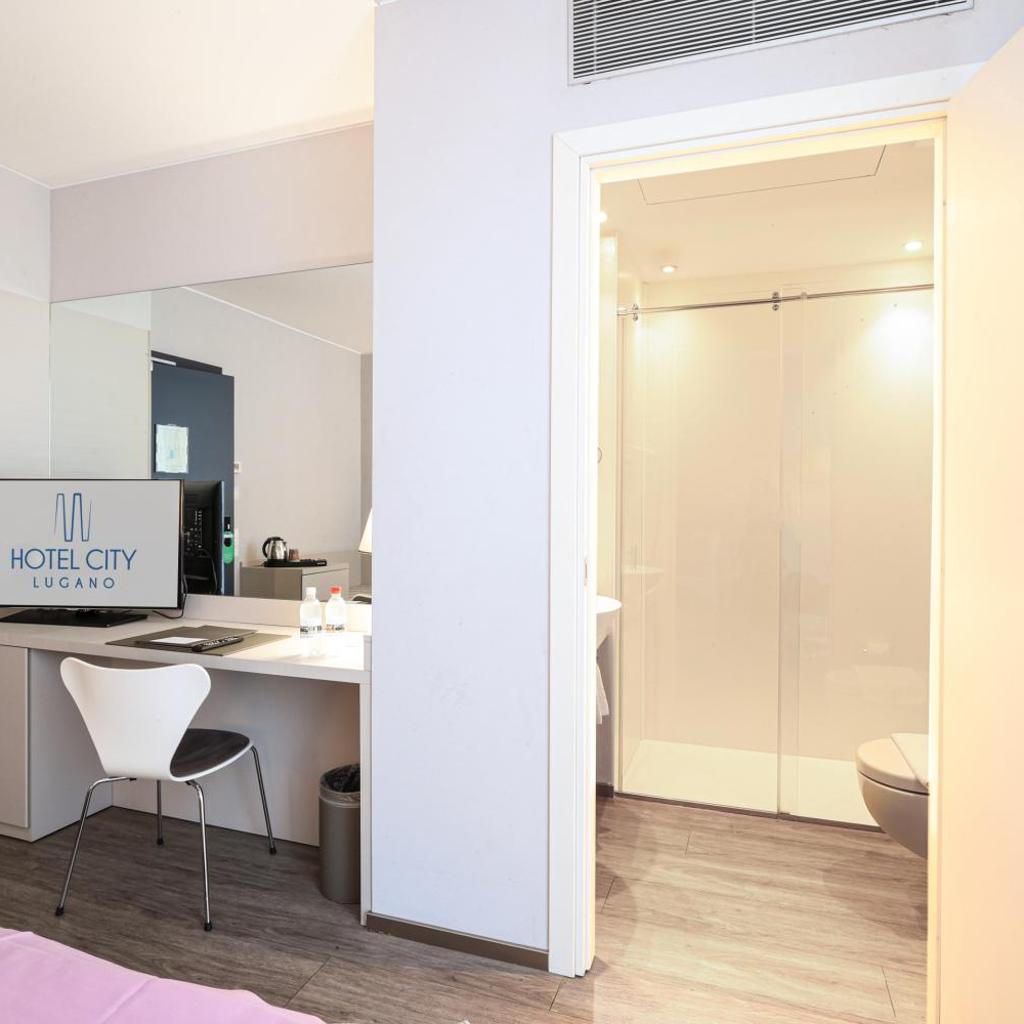 Die modernen, schallisolierten Zimmer im Lugano City Hotel sind alle mit einem LED-TV, LED-Beleuchtung, Universalsteckdosen, einer Minibar mit kostenlosen alkoholfreien Getränken, einem Safe, einem Schreibtisch und einem Wasserkocher mit Kaffee- und Teezubehör ausgestattet. Sie nutzen ein eigenes Bad mit einer Dusche, einem Haartrockner und kostenfreien Pflegeprodukten. Drucker und Kaffeemaschinen stehen auf jeder Etage zu Ihrer Verfügung.