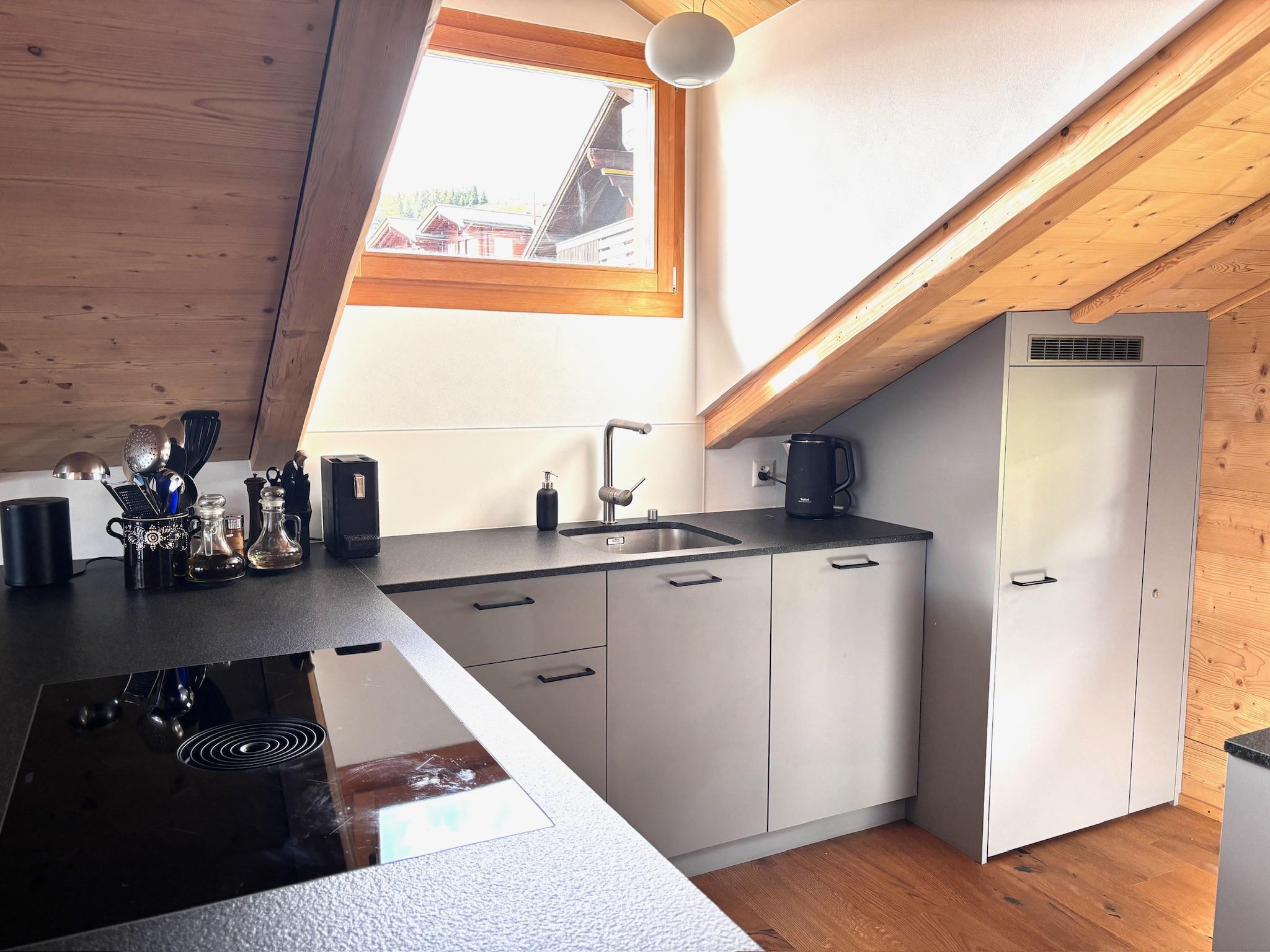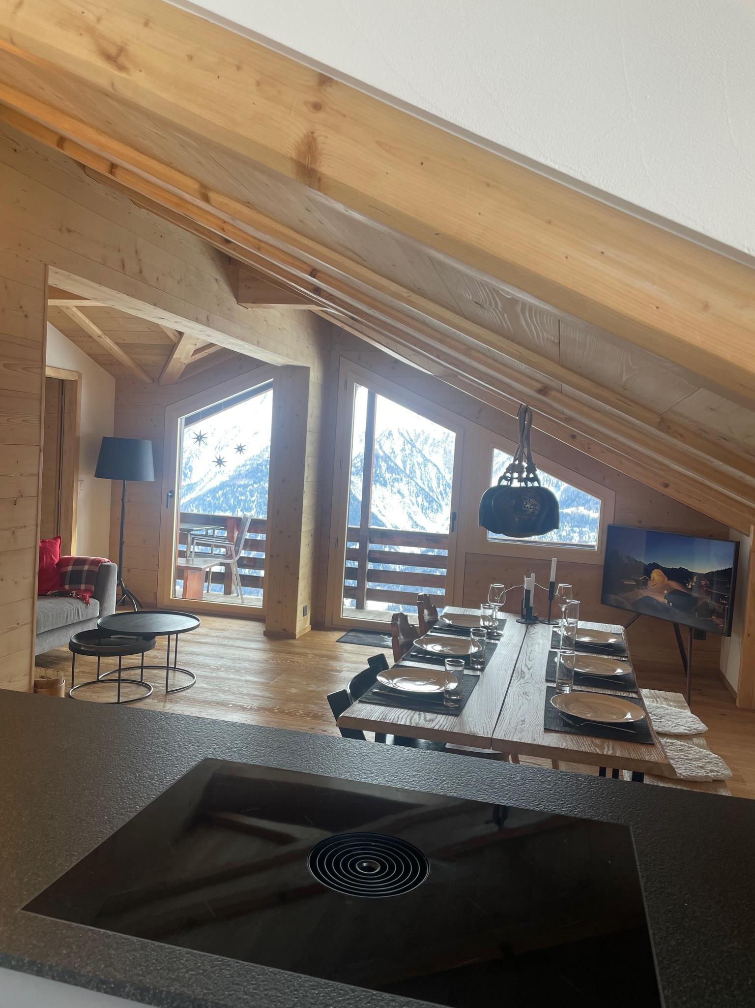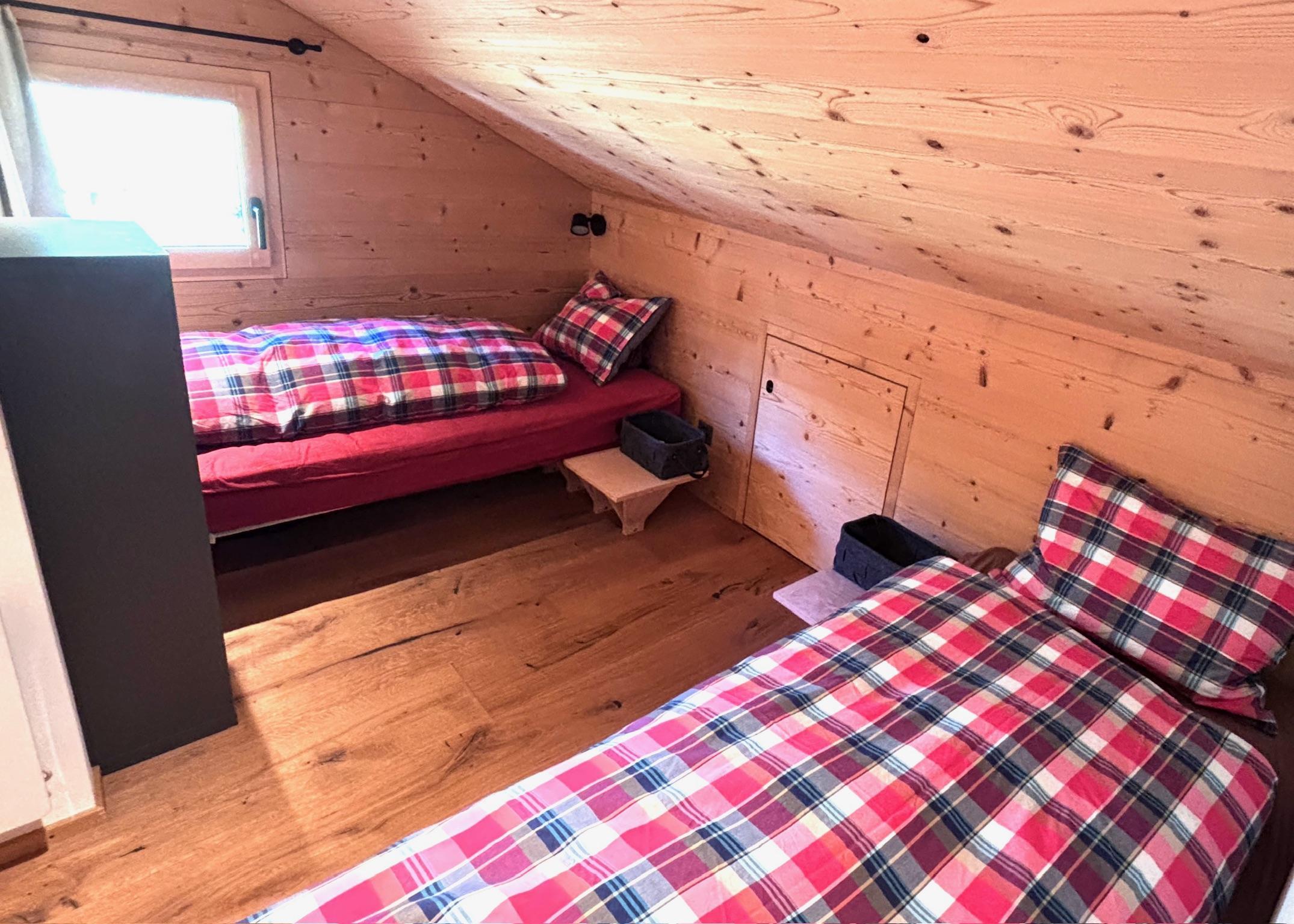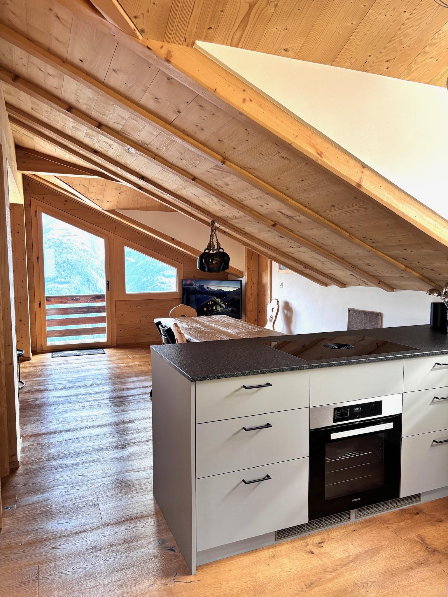 Das Haus befindet sich sehr ruhig gelegen unterhalb der bekannten Kapelle und ist nur über einen breiten Fusspfad erreichbar. Fussmarsch von 8 Minuten ab Seilbahnstation, rechts abbiegen Richtung Alpmatten und vorbei am Hotel Slalom.