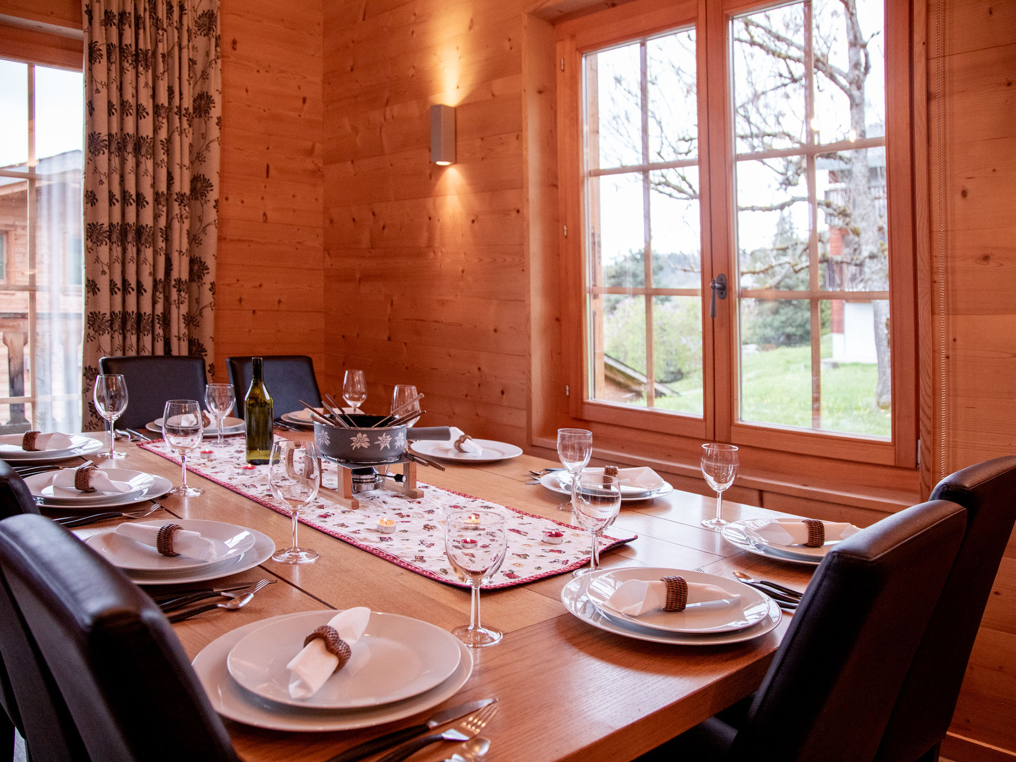 "Chalet Olivier", 6-Zimmer-Chalet 216 m2 auf 3 Stockwerken. Geräumig, komfortabel und geschmackvoll eingerichtet: grosses Wohn-/Esszimmer mit offenem Kamin und Esstisch. Ausgang zur Terrasse, Richtung Süden. Offene Küche (Backofen, Geschirrspüler, 5 Flammen, Toaster, Wasserkocher, Mikrowelle, Tiefkühler, elektrische Kaffeemaschine, Kapseln für die Kaffeemaschine (Nespresso) extra, Racletteofen, Fondue Set (Käse)) mit Bar. Sep. WC. Unteres Geschoss: 1 Zimmer mit 2 x 2 Etagenbetten (90 cm, Länge 200 cm), Dusche/WC. Salon mit TV (Flachbildschirm). Sep. WC. Obergeschoss: 1 Zimmer mit 1 franz. Bett (1 x 180 cm), Dusche/WC. Ausgang zum Balkon, Richtung Süden. 1 Zimmer mit 1 franz. Bett (1 x 180 cm). Ausgang zum Balkon, Richtung Süden. 1 Kinderzimmer mit 2 Betten (90 cm, Länge 180 cm), Bad/Dusche/WC. Balkon, Südlage, grosse Terrasse, Südlage, Garten. Terrassenmöbel, Gartengrill. Sehr schöne Panoramasicht auf die Berge. Zur Verfügung: Waschmaschine, Wäschetrockner, Haartrockner. Internet (WLAN, gratis). Parkplatz (1 Auto), Garage (1 Auto). Bitte beachten: Nichtraucher-Haus.