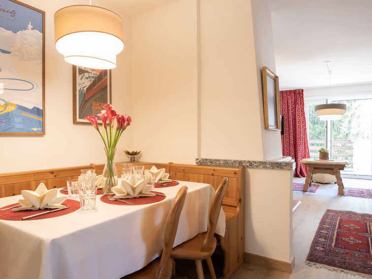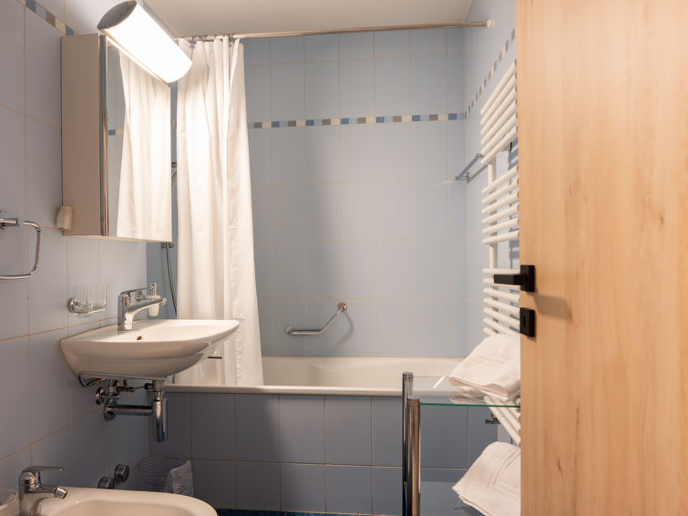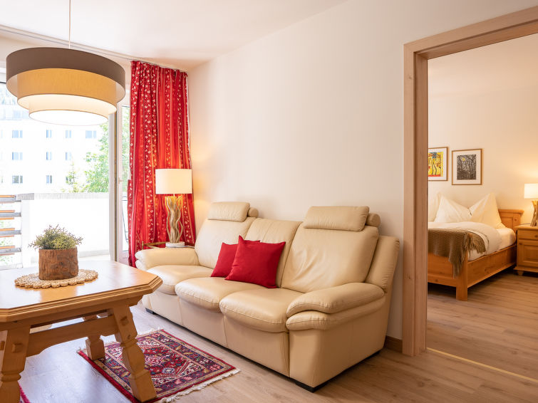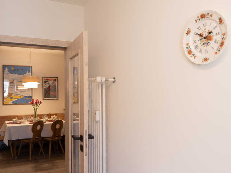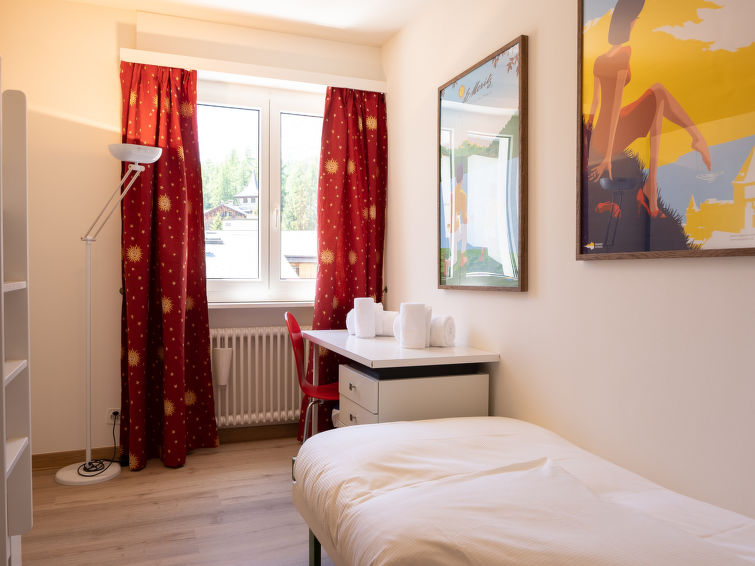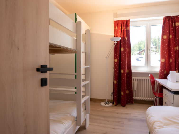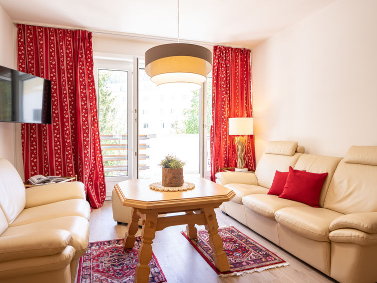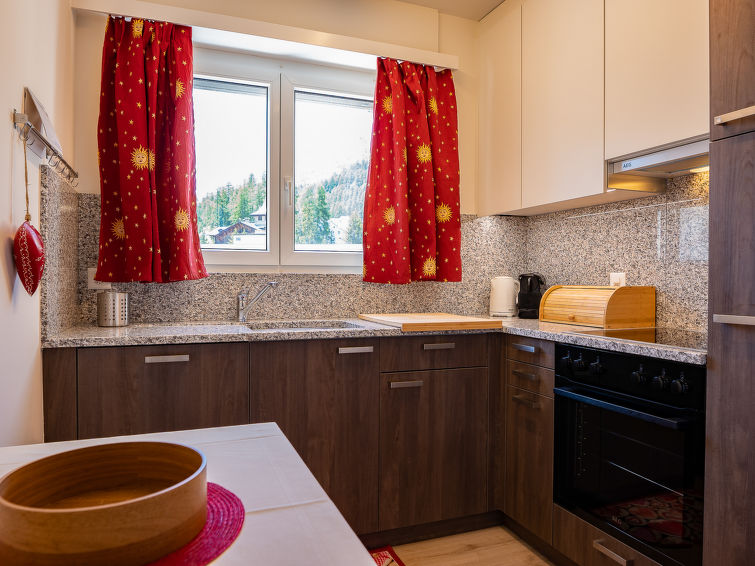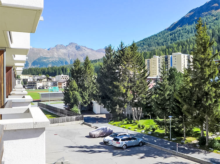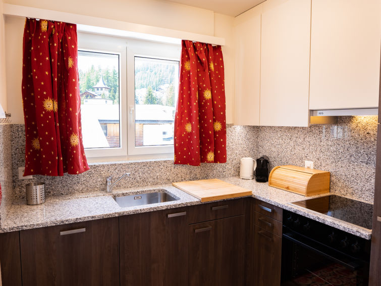 "Chesa Derby 27", 3-Zimmer-Wohnung 65 m2 im 3. Stock. Hell, teilweise renoviert im Jahre 2022, gemütlich eingerichtet: offenes Wohn-/Esszimmer mit offenem Kamin (nur Deko), Esstisch und TV (Flachbildschirm). Ausgang zum Balkon, Richtung Süden. 1 Doppelzimmer mit 1 Doppelbett (2 x 90 cm, Länge 200 cm). Ausgang zum Balkon. 1 Zimmer mit 1 Bett (90 cm, Länge 190 cm), 1 x 1 Etagenbetten (90 cm, Länge 190 cm). Kleine Küche (Backofen, Geschirrspüler, 4 Glaskeramikplatten, Toaster, Wasserkocher, elektrische Kaffeemaschine, Kapseln für die Kaffeemaschine (Nespresso) extra, Fondue Set (Käse)). Bad/Bidet/WC, sep. WC. Heizung. Balkon 10 m2. Balkonmöbel. Seitliche Sicht auf die Berge. Zur Verfügung: Haartrockner. Internet (Wireless LAN, gratis). Garage Nr. G (1 Auto), Höhe 200 cm, Breite 220 cm. Bitte beachten: geeignet für Familien Wohnung auf Parkplatzseite. Nichtraucher-Unterkunft. Bedingt durch das Coronavirus (COVID-19) ergreift diese Unterkunft Maßnahmen, um die Sicherheit der Gäste und Mitarbeiter zu gewährleisten. Die Nutzung des Pools kann daher nur eingeschränkt bzw. teilweise auch gar nicht möglich sein.