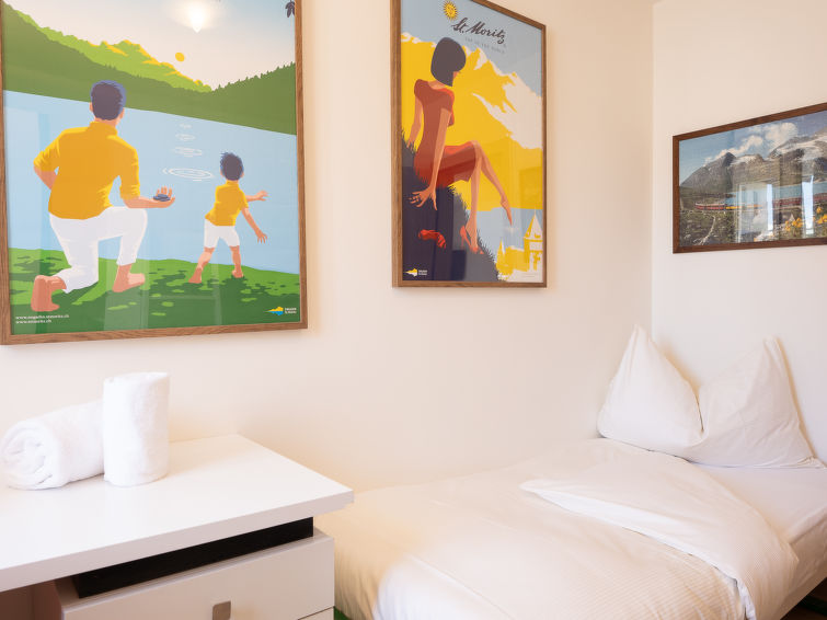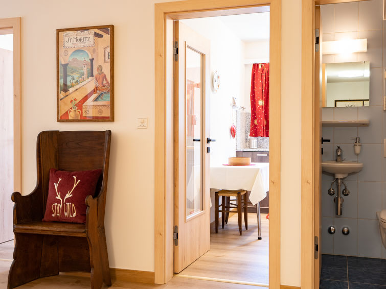 St. Moritz-Bad: Altes Mehrfamilienhaus "Chesa Derby 27", auf 5 Stockwerken. Im Ortszentrum von St.Moritz-Bad, zentrale Lage in einem Wohnquartier, 400 m vom Waldrand, vom See, 800 m vom Skigebiet. Im Hause: Fahrstuhl, Einstellraum für Fahrräder, Skiraum, Zentralheizung, Waschmaschine (extra), Wäschetrockner (zur Mitbenutzung, extra). Gemeinschaftsgarage. Einkaufsgeschäft 100 m, Supermarkt 700 m, Restaurant 30 m, Bar, Bäckerei 450 m, Fahrradverleih 100 m, Bushaltestelle "St. Moritz Bad, Hallenbad" 260 m, Bahnstation 1.9 km, Hallenbad 300 m, Thermalbad "Heilbadzentrum St.Moritz" 450 m, See St. Moritzer See 400 m. Golfplatz (18 Loch) 7.2 km, Surfschule 5.2 km, Tennis 850 m, Tennishalle, Minigolf 170 m, Reitstall 2.7 km, Wanderwege ab Haus 400 m, Radweg 400 m, Luftseilbahn 800 m, Skilift 800 m, Skipisten, Skiverleih 100 m, Skibushaltestelle 150 m, Skischule 1.9 km, Kinderskischule 1.9 km, Schlittelbahn 5.5 km, Langlaufloipe 300 m, Eisfeld 500 m, Kinderspielplatz 400 m. Nahe gelegene Sehenswürdigkeiten: Segantini Museum 2.1 km, Engadiner Museum 1.1 km, Mili Weber-Haus 2.8 km, Olympia Bob Run mit Museum 2.5 km, Nietzsche Museum in Sils-Maria 9.4 km. Bekannte Skigebiete sind gut erreichbar: Corviglia Piz Nair 800 m, Corvatsch - Furtschellas 6.4 km, Diavolezza - Lagalb 19.6 km. Bekannte Seen in der Umgebung sind gut erreichbar: St.Moritzer See 400 m, Silvaplaner See 5.1 km, Silser See 9.4 km. Wandergebiete: Stazerwald & Stazersee, Corviglia Piz Nair, Muottas Muragl. Die Schlüsselübergabe findet bei der Agentur Interhome in St Moritz Bad statt.