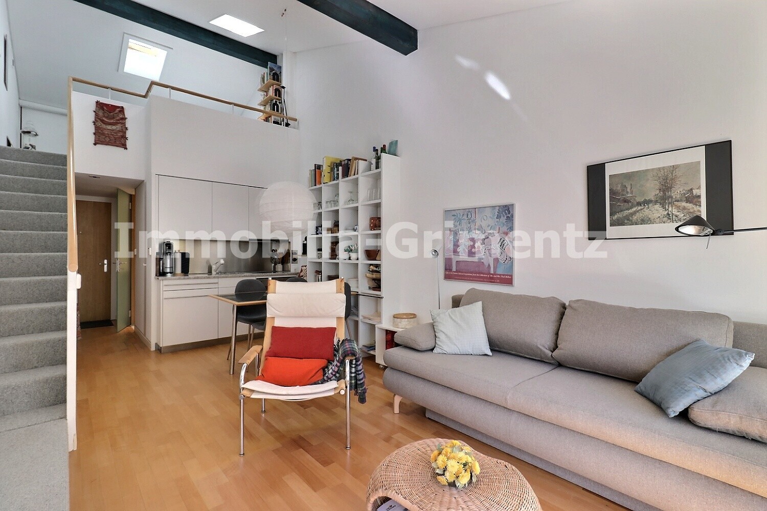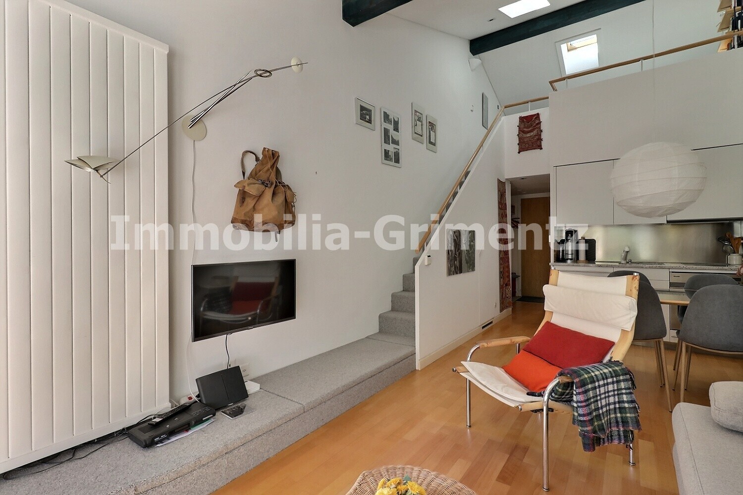 Komfortables 2-stöckiges Studio für 2 bis 4 Personen, Wohnzimmer mit 1 Schlafsofa, Kochnische, Mezzanin mit 1 Doppelbett, Dusche-WC, Terrasse, 2. Stock, 1 Parkplatz, TV, Wifi, Süd-Lage.