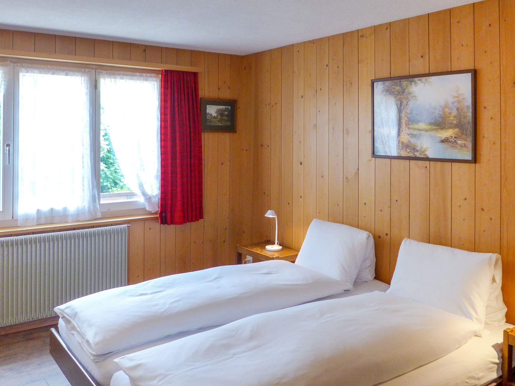 3-Zimmer-Wohnung 65 m2 im 1. Stock, Südlage. Einfach und gemütlich eingerichtet: Wohn-/Esszimmer mit Sat-TV. 2 Zimmer, jedes Zimmer mit 2 Betten (90 cm, Länge 200 cm). Küche (3 Kochplatten, Backofen, Geschirrspüler, elektrische Kaffeemaschine, Racletteofen, Fondue Set (Käse)). Bad/WC. Sitzplatz. Schöne Sicht auf die Berge und Eigernordwand. Zur Verfügung: Internet (WLAN, gratis). Parkplatz beim Haus. Bitte beachten: Wohnung auf Strassenseite. Nichtraucher-Unterkunft. Eigener Eingang, Feuerlöscher.
