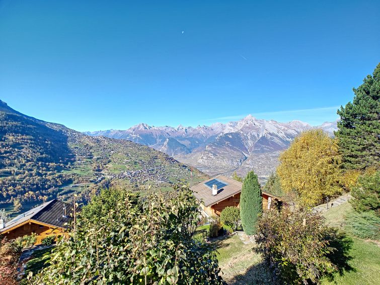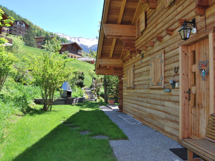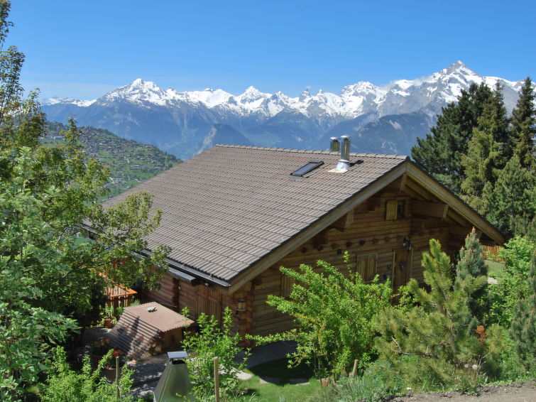 Veysonnaz: Gemütliches Chalet "Les 4 Saisons", auf 3 Stockwerken. Am Ortsrand, 500 m vom Zentrum, ruhige, sonnige Lage, 1 km vom Skigebiet, Richtung Südosten. Zur Alleinbenutzung: grosser terrassierter Garten Rasen. Terrasse, Gartenmöbel. Zufahrt (Bergstrasse). Im Winter bitte Schneeketten mitbringen. Treppenweg (10 Stufen) bis zum Haus. Einzelgarage in 150 m. Supermarkt 1 km, Bushaltestelle "skibus" 100 m. Skisportanlagen 1 km, Skipisten 1 km. Bekannte Skigebiete sind gut erreichbar: Veysonnaz 4 Vallées 1 km. Der Besitzer akzeptiert keine Jugendgruppen.