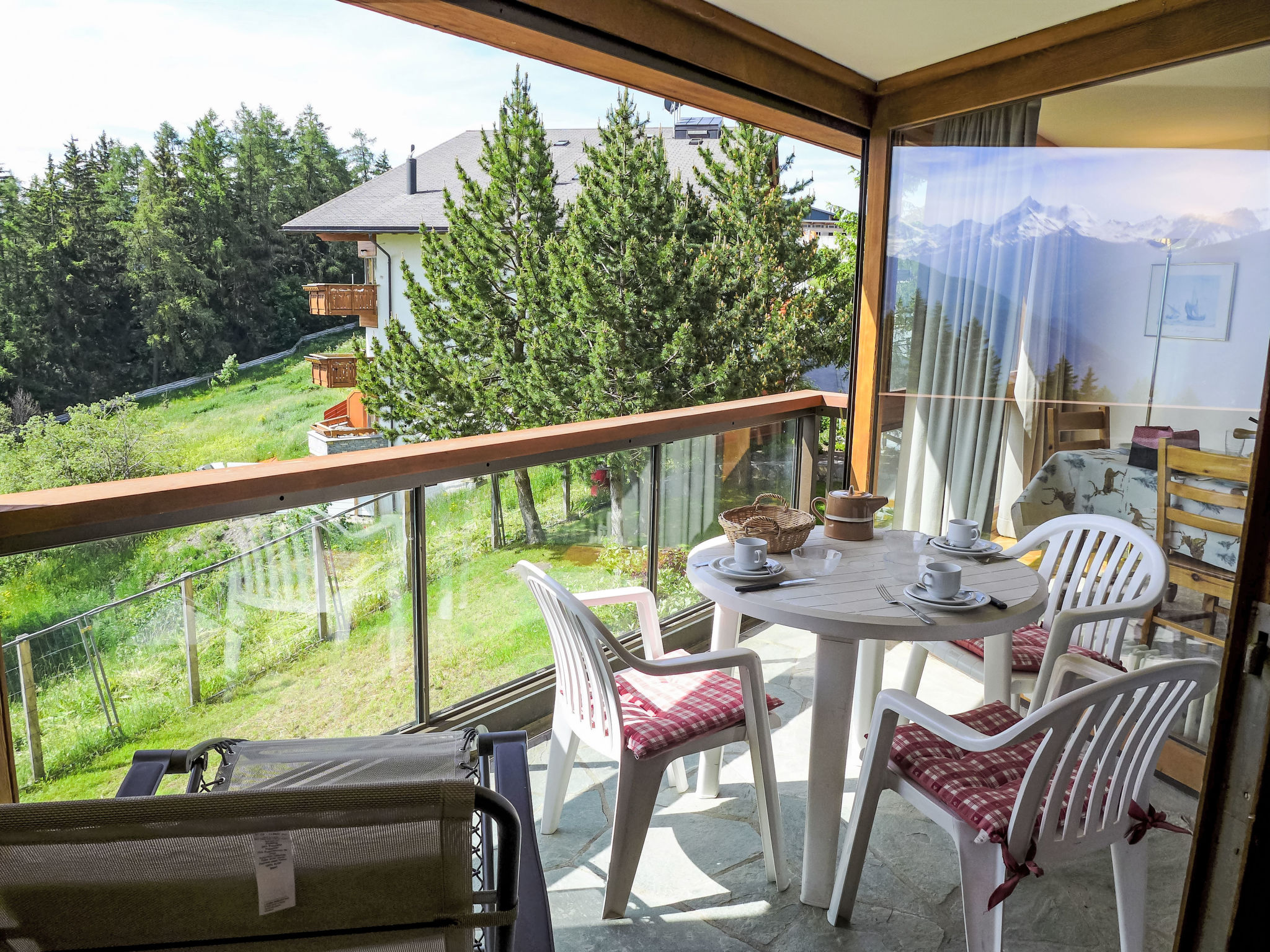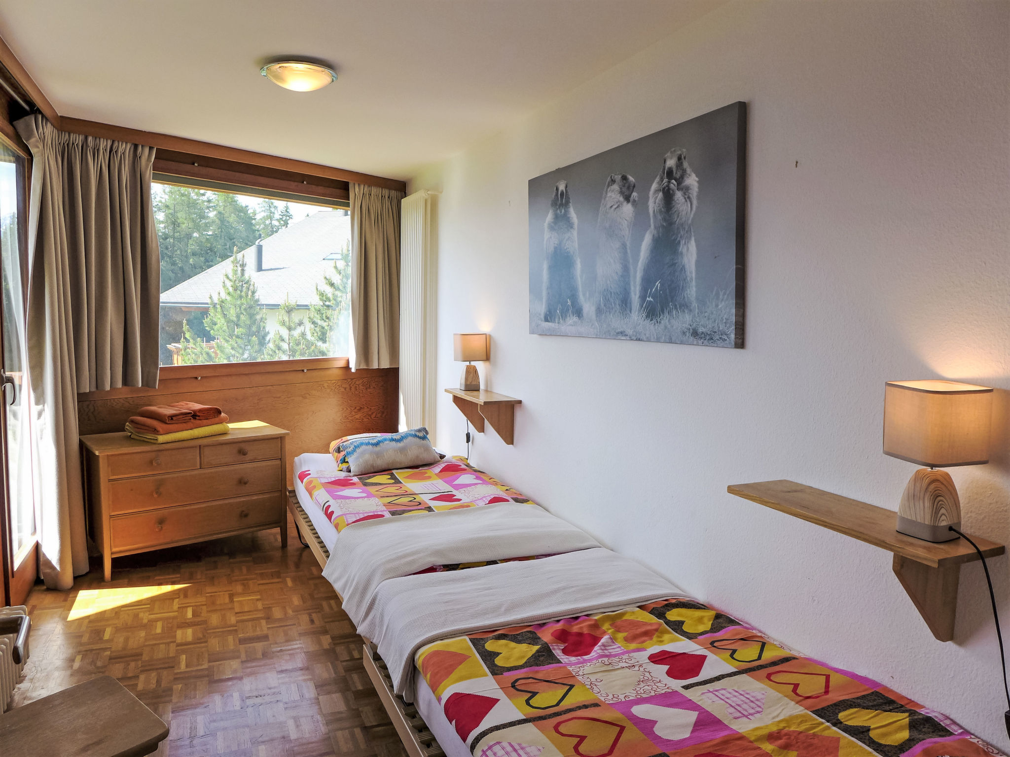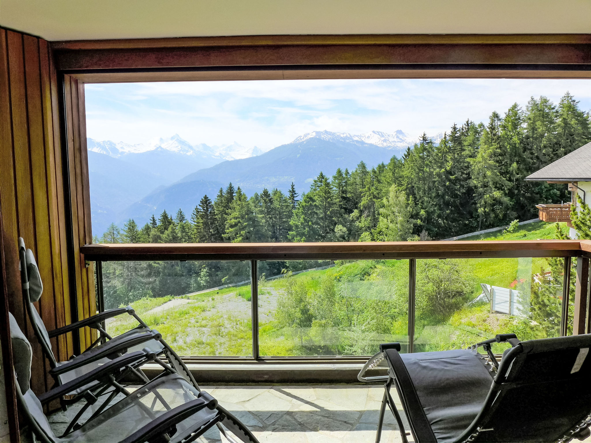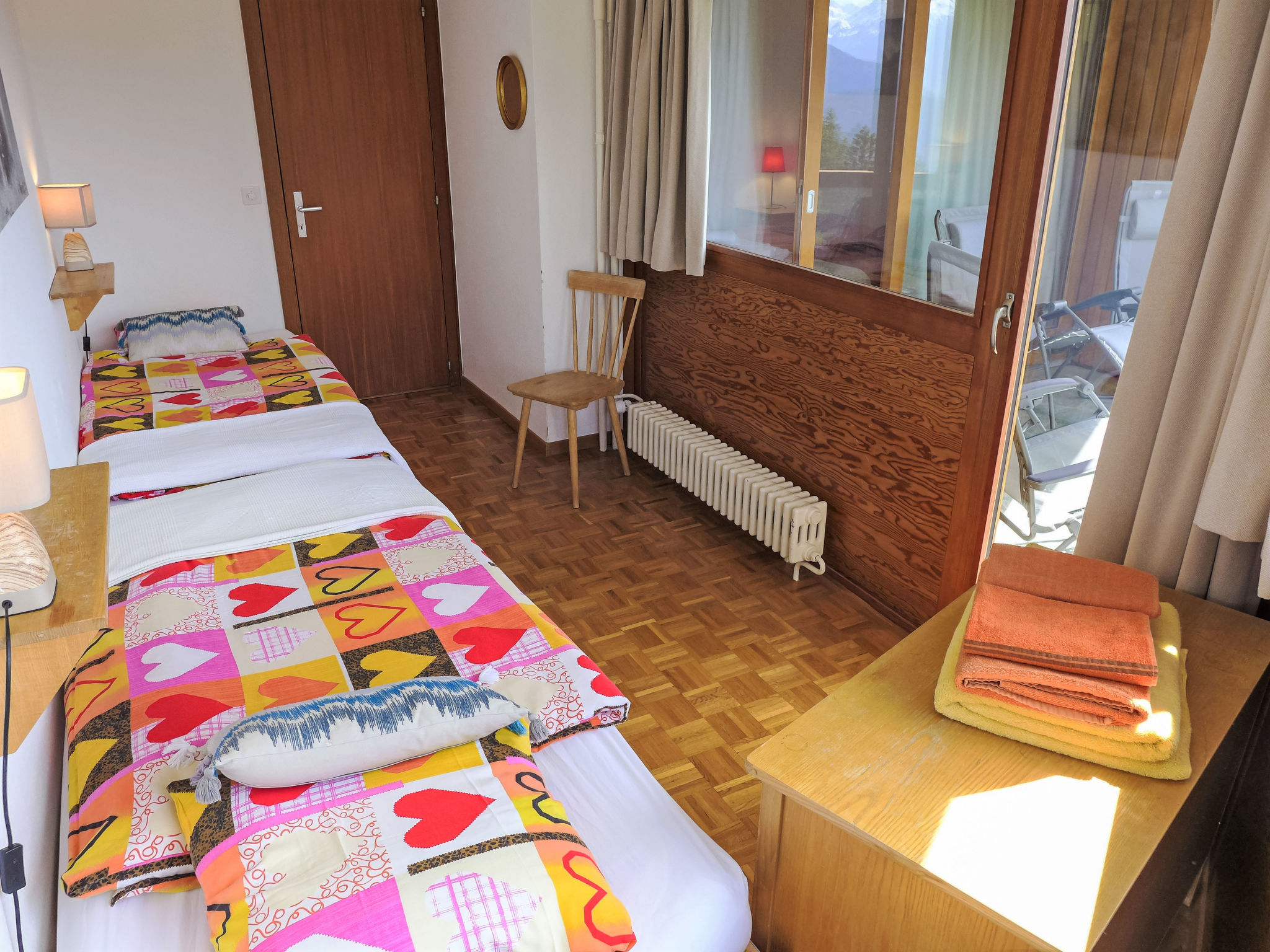 Mehrfamilienhaus "Les Mischabels". Unterhalb von Montana, 1.8 km vom Zentrum, ruhige, sonnige Lage, 100 m vom Waldrand, 900 m vom See, Richtung Südwesten. Im Hause: Fahrstuhl, Skiraum, Zentralheizung. Parkplatz (beschränkte Anzahl) beim Haus. Einkaufsgeschäft 1.8 km, Supermarkt 2 km, Restaurant 1.8 km, Bäckerei 2 km, Bushaltestelle "Crans-Montana, Montagnette" 50 m, Bahnstation "Funiculaire Montana Gare" 950 m, Grasstrand "Moubra" 900 m, Badesee "Moubra" 900 m. Golfplatz (18 Loch) 3 km, Tennis 1 km, Tennishalle 1 km, Reitstall 240 m, Skisportanlagen 1.6 km, Langlaufloipe 900 m. Bekannte Seen in der Umgebung sind gut erreichbar: Etang Long 2.5 km, Lac Grenon 2.3 km. Bitte beachten: Gratis Skibus. Weitere Unterkünfte sind buchbar. Das Gebäude wurde auf einem geneigten Grundstück erbaut. Die Stockwerke werden als Ebenen gehandhabt, die vom Residenzboden aus gezählt werden.