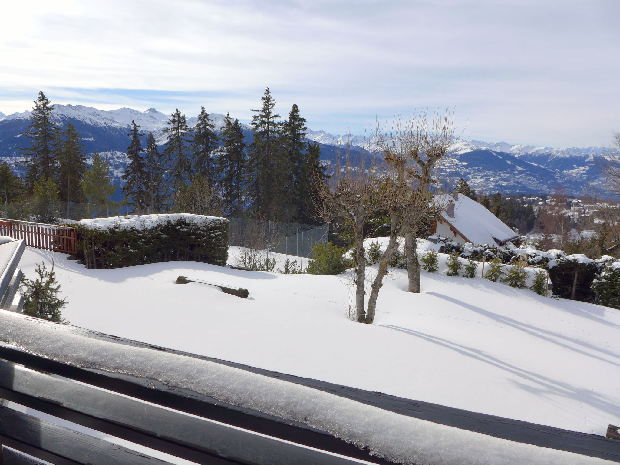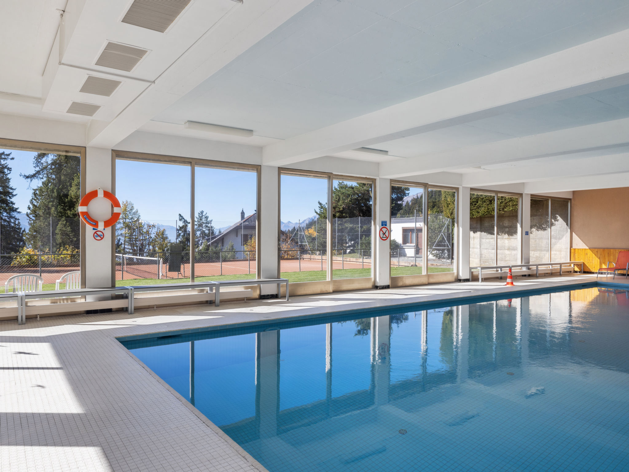 Die Sauna (16:00-20:00) ist in der Nebensaison nicht verfügbar. Schwimmbad im November geschlossen. Grosse Residenz "Cransalpin". Oberhalb von Montana, 1.2 km vom Zentrum von Montana, sonnige, erhöhte Lage, 1.1 km vom See, 800 m vom Skigebiet, Richtung Südwesten. Zur Mitbenutzung: Garten mit Rasen, Hallenbad beheizt (13 x 8 m, 50 - 200 cm tief, saisonale Verfügbarkeit: 01.Dez. - 31.Okt. Öffnungszeiten Schwimmbad: 08:00-20:00). Tennis. Im Hause: Sauna, Fahrstuhl, Skiraum, Zentralheizung, Waschmaschine, Wäschetrockner (zur Mitbenutzung, extra). Parkplatz (beschränkte Anzahl). Einkaufsgeschäft 1.2 km, Supermarkt 1.3 km, Restaurant 1 km, Bäckerei 1.4 km, Bushaltestelle "Vermala Soleil" 200 m, Bahnstation "Funiculaire Montana Gare" 1.5 km, Badesee "Moubra" 2.2 km, See Grenon 1.1 km. Golfplatz (18 Loch) 2.3 km, Skisportanlagen 800 m, Eisfeld 1.4 km. Bitte beachten: Gratis Skibus. Weitere Unterkünfte sind buchbar.