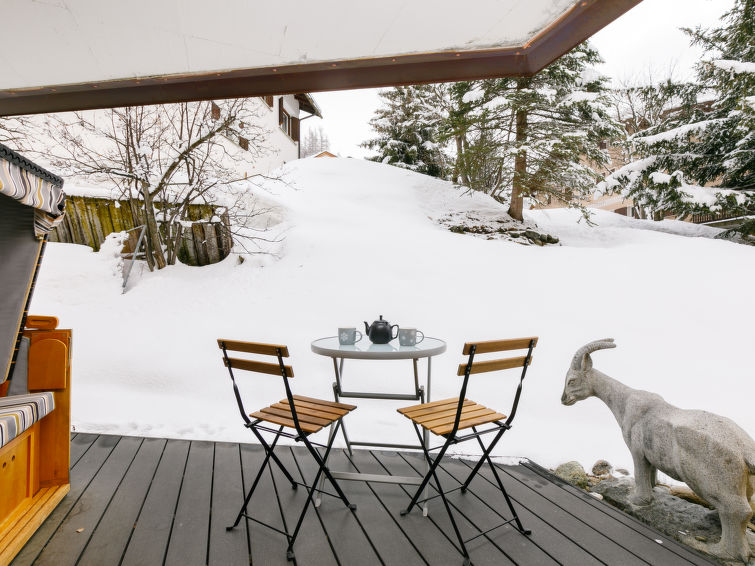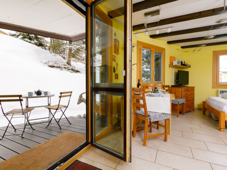 "Residenza Chesa Margun 34-6", 1-Zimmer-Wohnung 30 m2. Geschmackvoll und gemütlich eingerichtet: Wohn-/Esszimmer mit 1 Diwanbett und 1 Doppelbett (140 cm, Länge 220 cm), Flachbildschirm und Radio. Ausgang zur Terrasse. (Backofen, Geschirrspüler, 4 Glaskeramikplatten, elektrische Kaffeemaschine) mit Esstisch. Bad/WC. Heizung. Terrasse 12 m2, Gartensitzplatz. Seitliche Sicht auf die Berge und die Ortschaft. Zur Verfügung: Telefon. Internet (Wireless LAN, gratis). Bitte beachten: Nichtraucher-Unterkunft, Nichtraucher-Haus. Maximal 1 Haustier/Hund erlaubt.