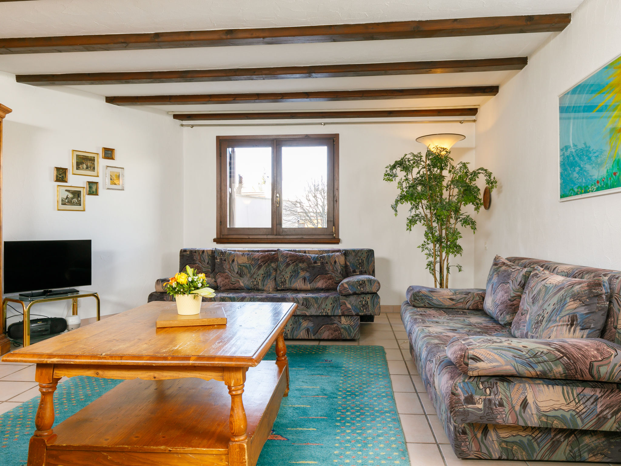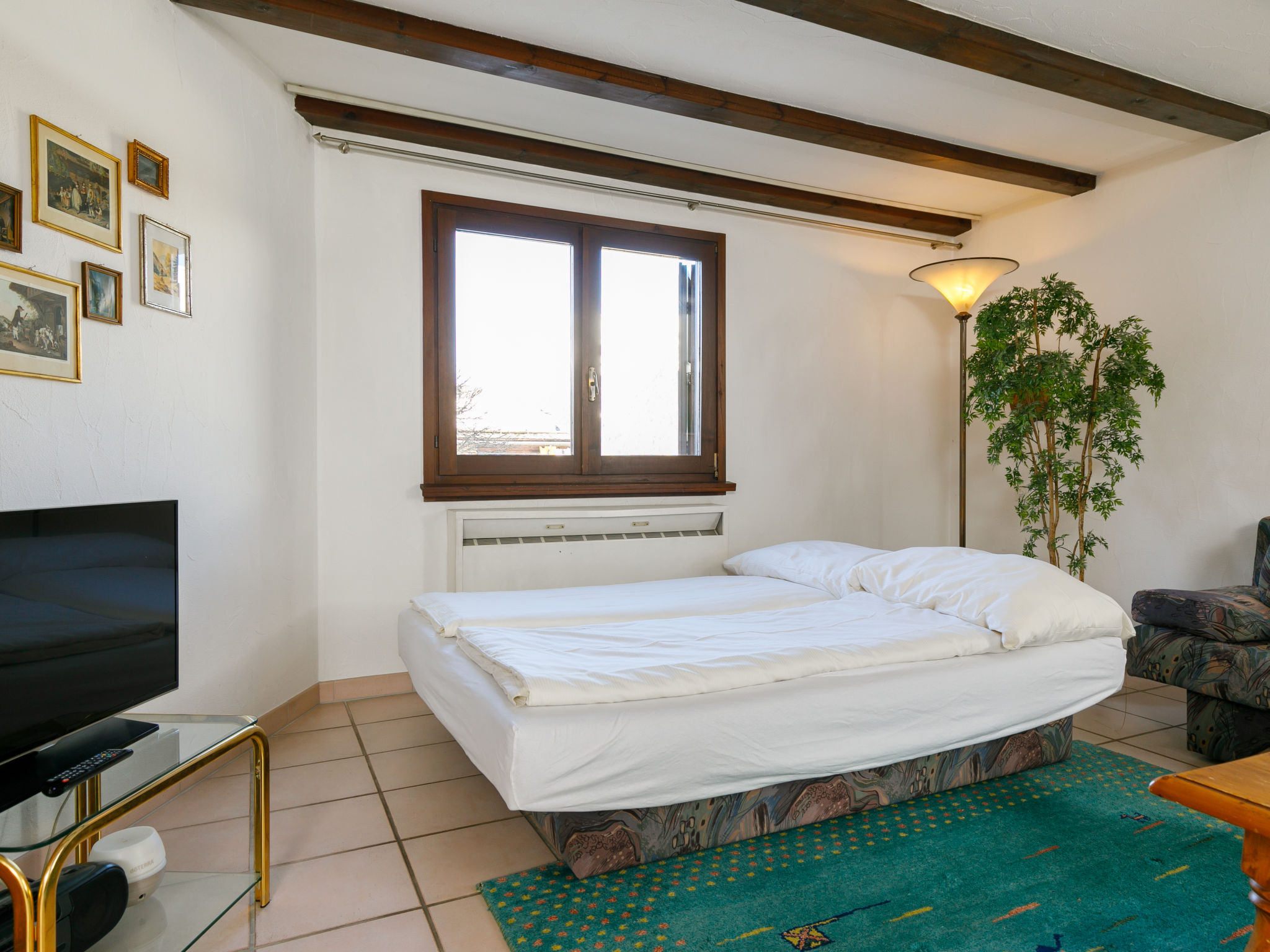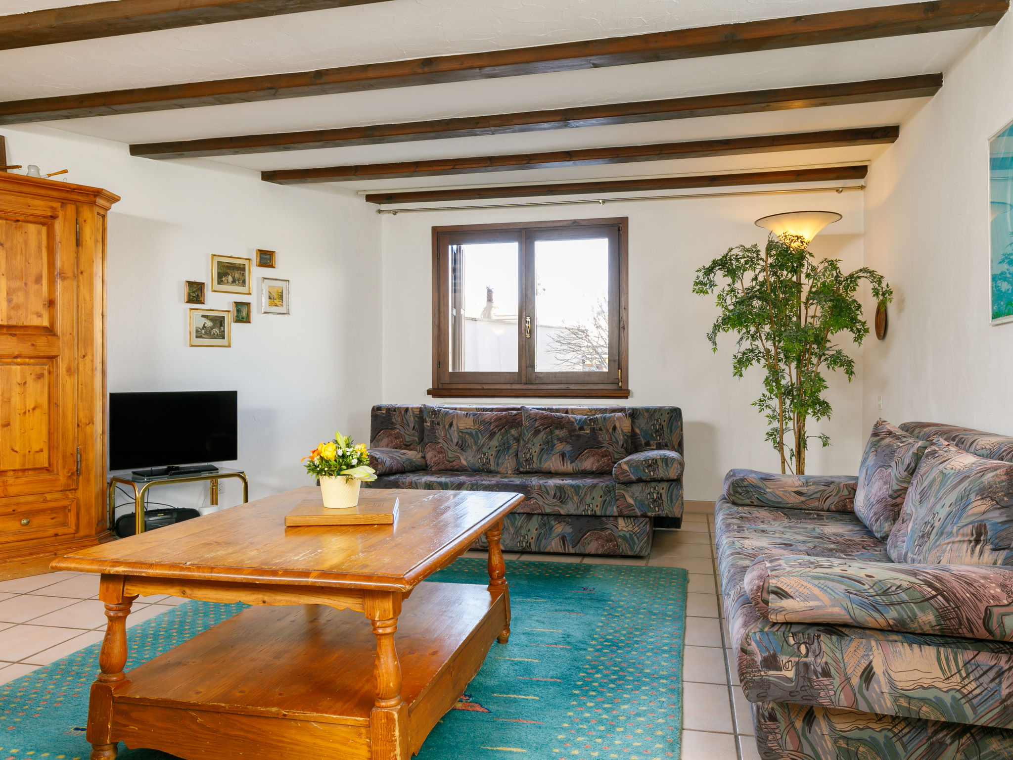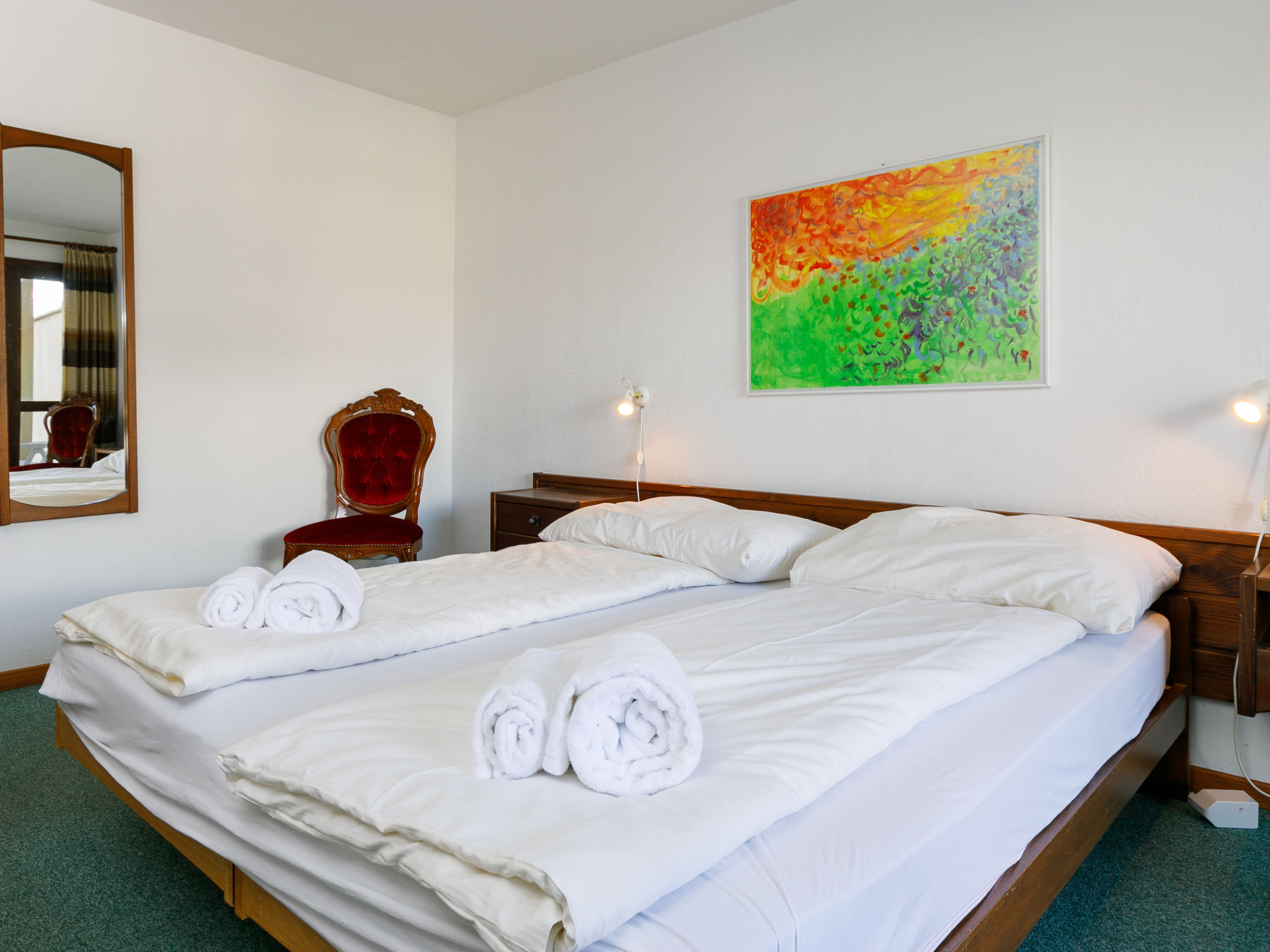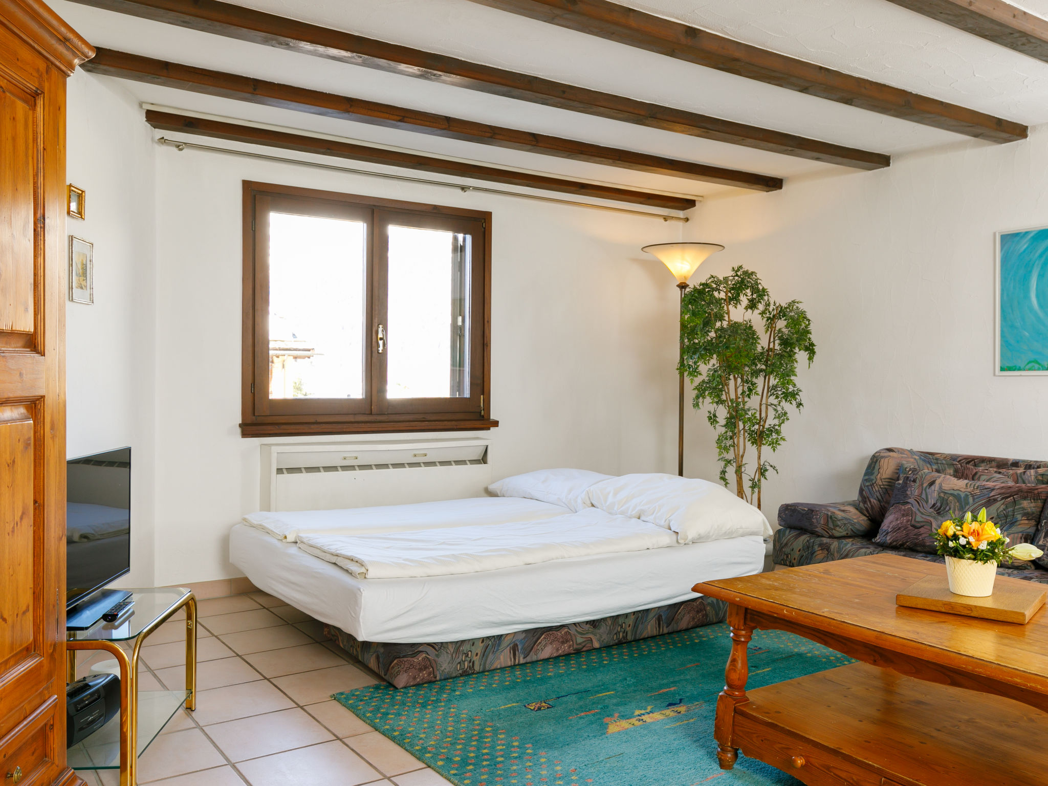 "Residenza Chesa Margun 66-1", 2-Zimmer-Wohnung 77 m2, im Erdgeschoss. Hell, gemütlich eingerichtet: Wohn-/Esszimmer mit 1 Doppeldiwanbett, Digital-TV, Flachbildschirm und Radio. 1 Zimmer mit 2 Betten und E-Heizung. Ausgang zum Balkon. Küche (Backofen, Geschirrspüler). Bad/WC. E-Heizung. Terrasse, Südlage. Sicht auf die Berge und den Garten. Zur Verfügung: Internet (Wireless LAN, gratis). Geeignet für Familien.