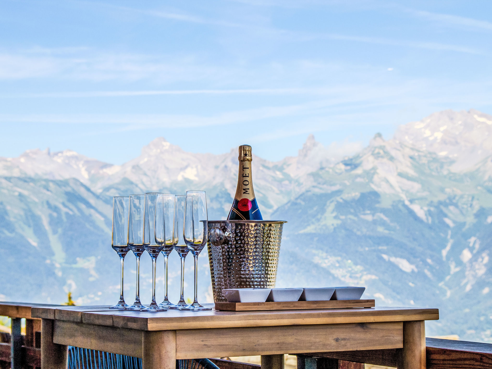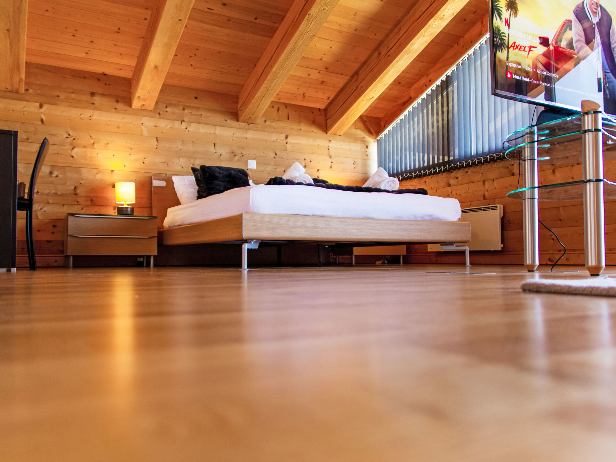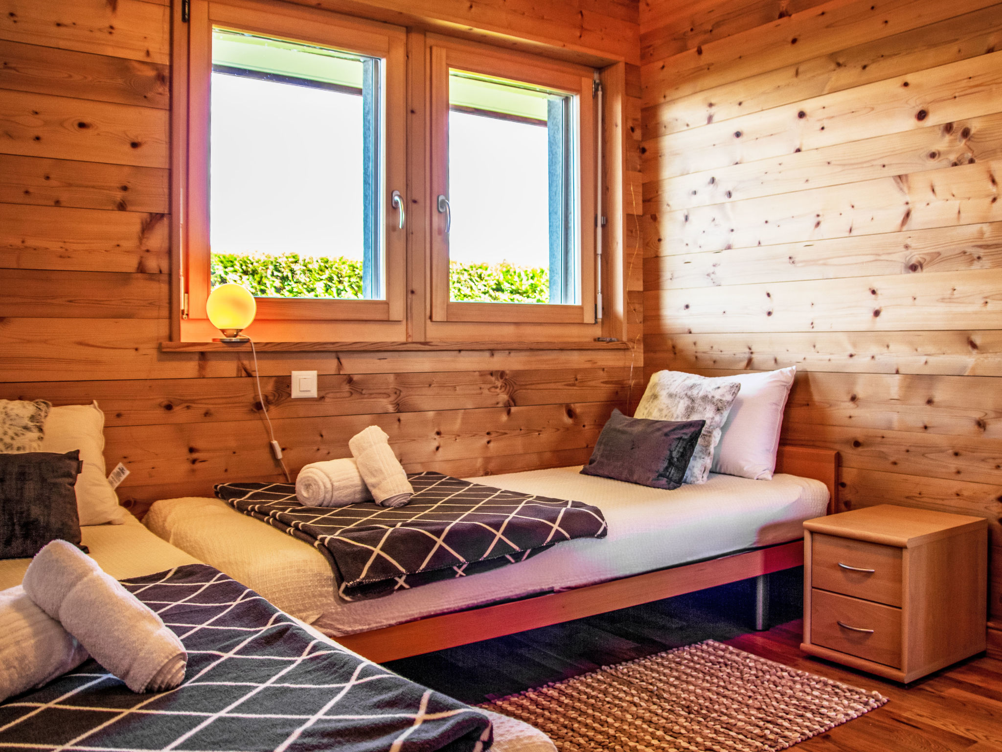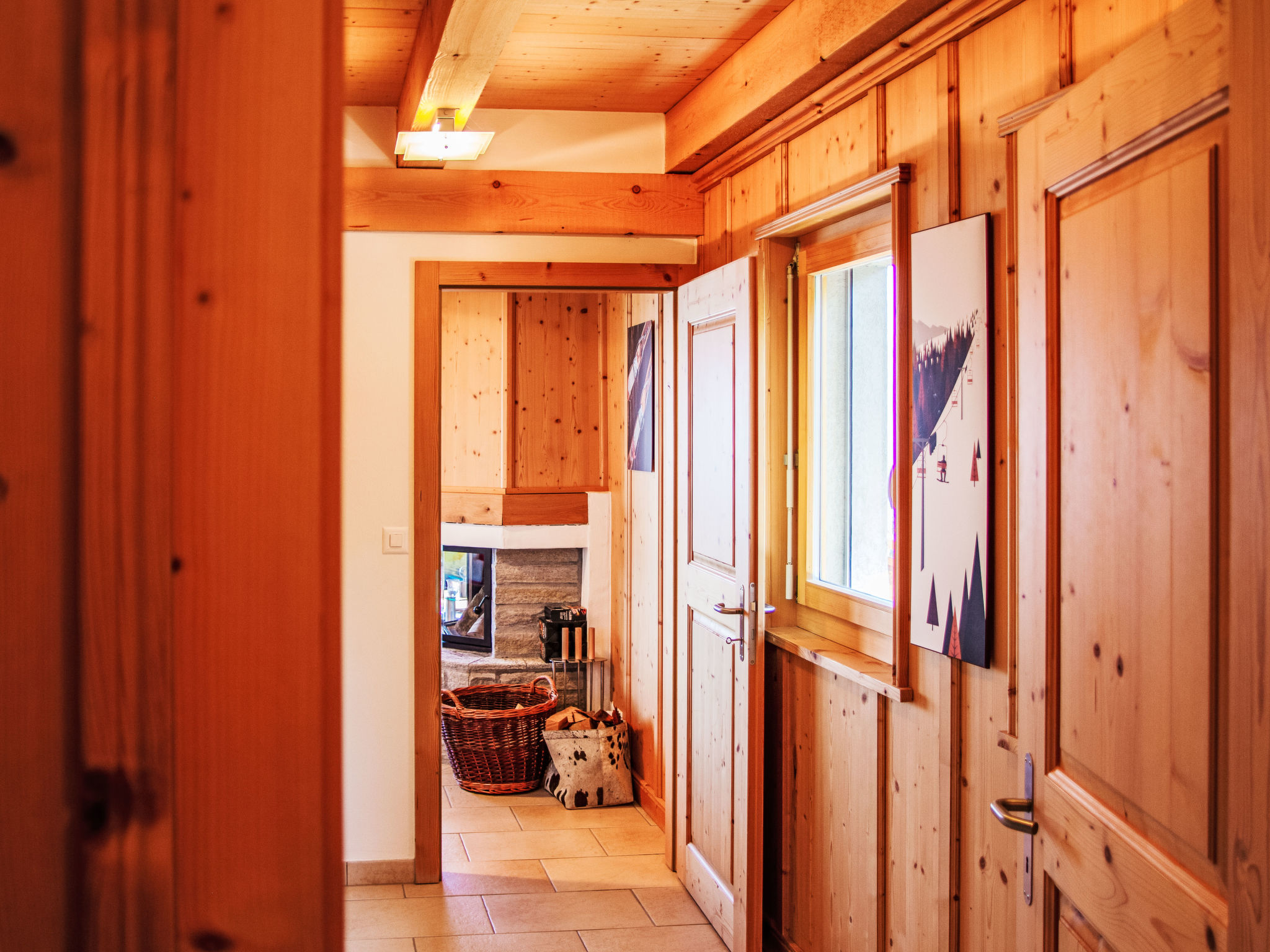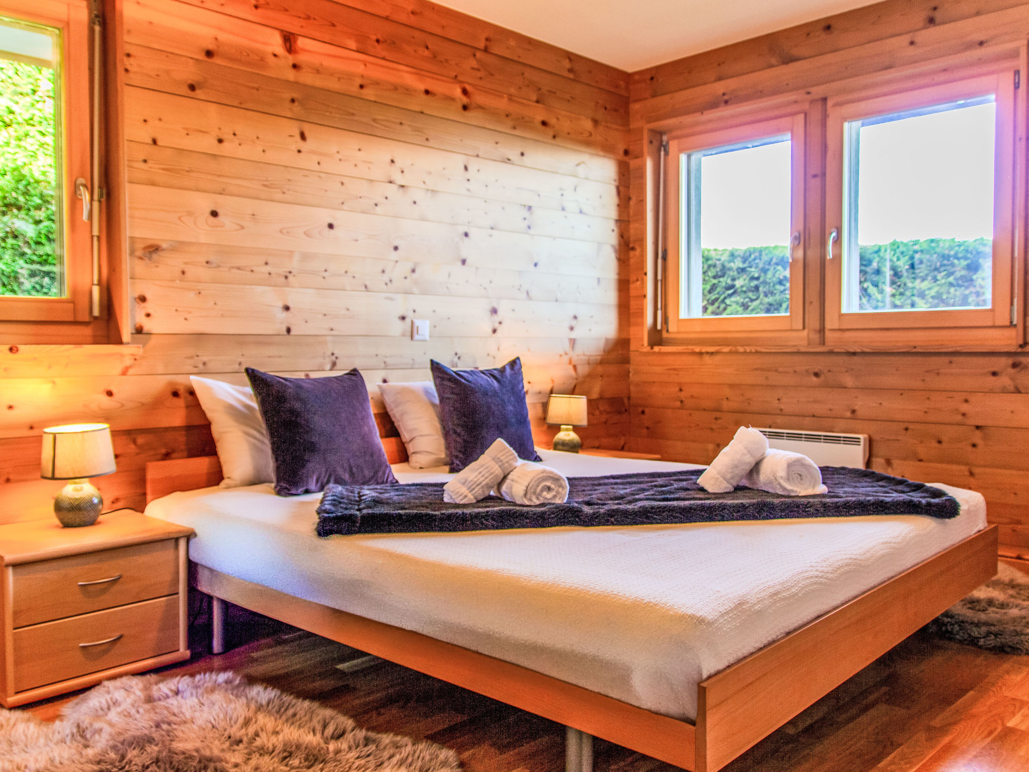"Chalet Aurore", 5-Zimmer-Chalet 190 m2 auf 3 Stockwerken, Nordwestlage. Geräumig, komfortabel und geschmackvoll eingerichtet: Eingang. Grosses Wohn-/Esszimmer mit offenem Kamin und TV. Ausgang zum Balkon, Richtung Norden. Offene Küche (Backofen, Geschirrspüler, 4 Glaskeramikplatten, Toaster, Wasserkocher, Mikrowelle, Tiefkühler, elektrische Kaffeemaschine, Kapseln für die Kaffeemaschine (Nespresso) extra, Racletteofen, Fondue Set (Käse)). Ausgang zur Terrasse. Sep. WC. E-Heizung. Unteres Geschoss: 2 kleine Zimmer, jedes Zimmer mit 2 Betten (90 cm, Länge 200 cm). 1 Zimmer mit 1 franz. Bett (180 cm, Länge 200 cm), Dusche/WC und Doppelwaschbecken. Bad/WC, Dusche. Obergeschoss: 1 grosses Zimmer mit 1 franz. Bett (180 cm, Länge 200 cm), Bad/Dusche/WC, Doppelwaschbecken, mit Eckbadewanne und TV. Ausgang zum Balkon, Richtung Norden. Balkon, Nordlage, Terrasse, Ostlage. Terrassenmöbel, Balkonmöbel, Gartengrill, Liegestühle (4). Herrliche Sicht auf die Berge. Zur Verfügung: Waschmaschine, Wäschetrockner, Kinderhochstuhl, Babybett. Internet (WLAN, gratis). Garage (2 Autos). Bitte beachten: Nichtraucher-Unterkunft.