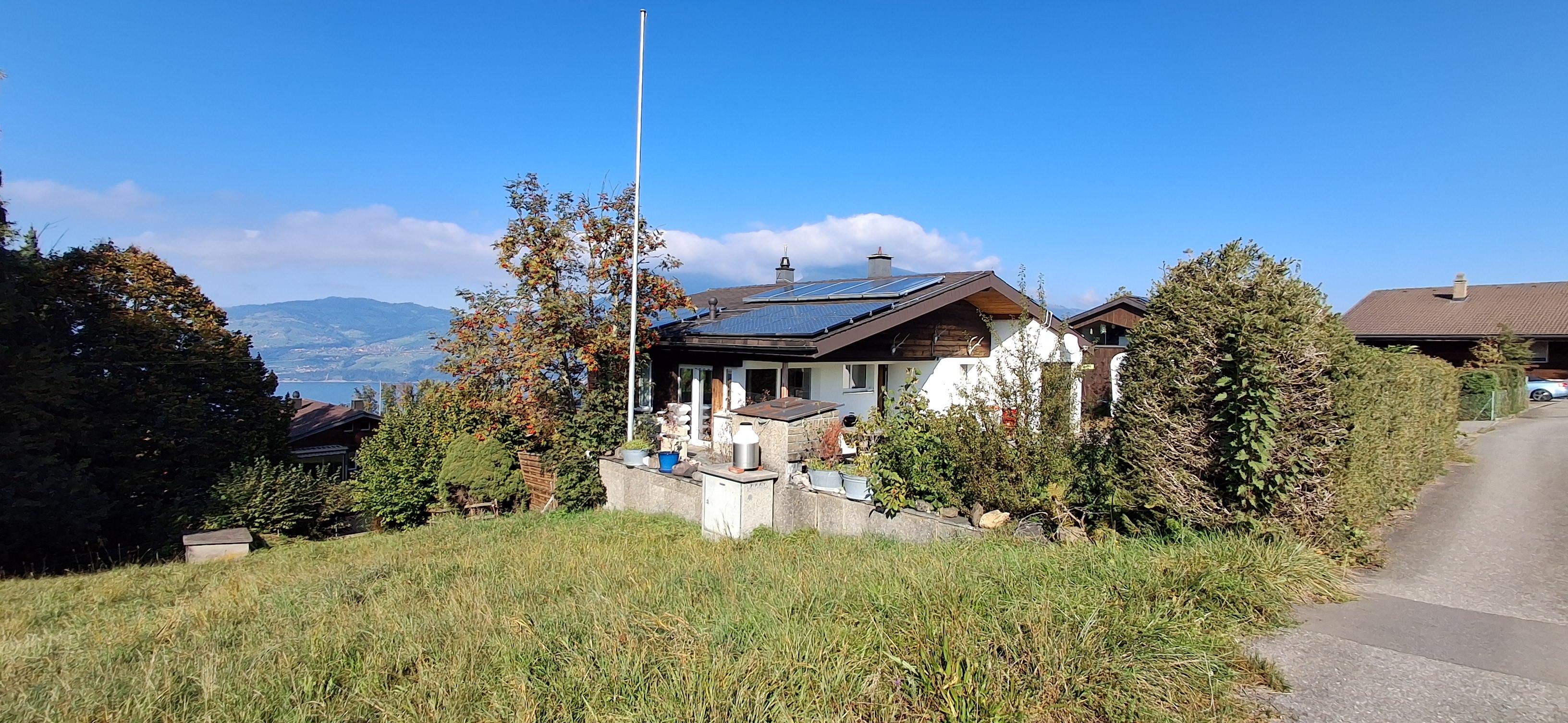 Schönes Ferienstudio mit Gartensitzplatz und Sicht auf den Thunersee und bis in den Jura. Idealer Ausgangspunkt für Wanderungen und Ausflüge im gesamten Berner Oberland.