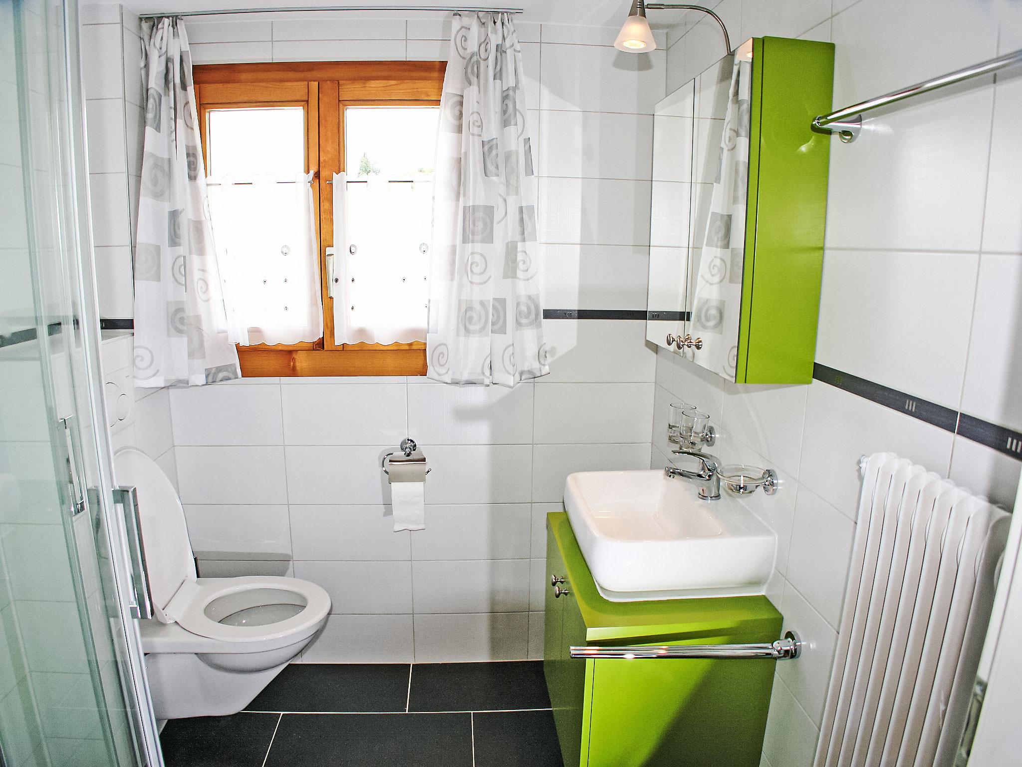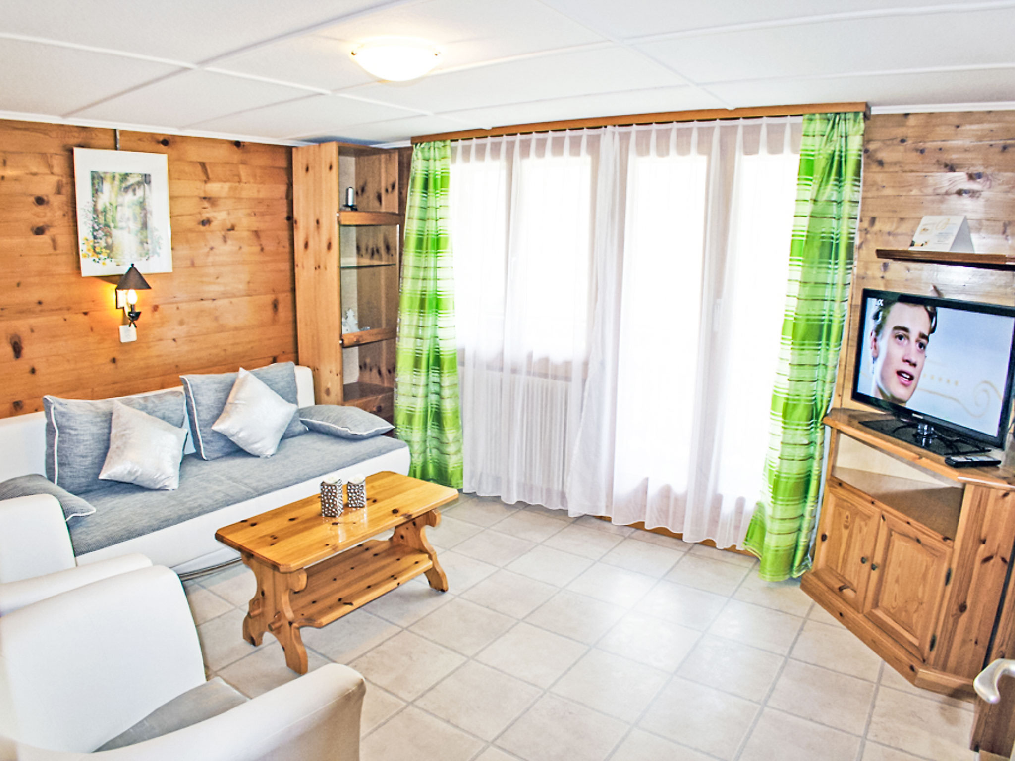 "Bergfink Dachgeschoss", 4-Zimmer-Wohnung 84 m2 im 3. Stock. Teilweise abgeschrägt, renoviert im Jahre 2013, schön und gemütlich eingerichtet: Wohn-/Esszimmer mit Sat-TV (Flachbildschirm), Stereoanlage. Ausgang zum Balkon, Richtung Westen. 1 abgeschrägtes Doppelzimmer mit 2 Betten. Ausgang zum Balkon, Richtung Süden. 1 kleines Zimmer mit 2 Betten. 1 Zimmer mit 2 Wandschrankbetten und Sat-TV (Flachbildschirm). Ausgang zum Balkon, Richtung Süden. Abgeschrägte Küche (Backofen, Geschirrspüler, 4 Glaskeramikplatten, elektrische Kaffeemaschine) mit Esstisch. Bad/WC, Dusche/WC. Balkon. Balkonmöbel, Liegestühle (2). Schöne Sicht auf die Berge, die Landschaft und die Ortschaft. Zur Verfügung: Babybett. Internet (WLAN, gratis). Parkplatz beim Haus. Bitte beachten: Nichtraucher-Unterkunft. Maximal 1 Haustier/Hund erlaubt. Das Zimmer mit den 2 Wandschrankbetten verfügt auch über eine kleine Küche mit 4 Kochplatten und Backofen (Studio).