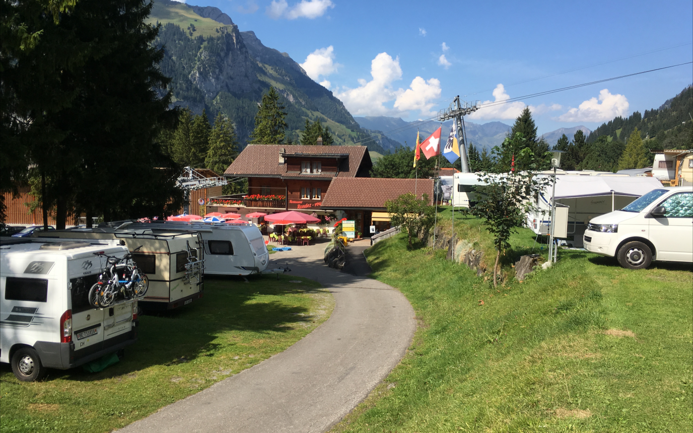 Gut eingerichteter, in Terassen angelegter Campingplatz inmitten der herrlichen Bergwelt von Kandersteg. Ganzjährig geöffnet.