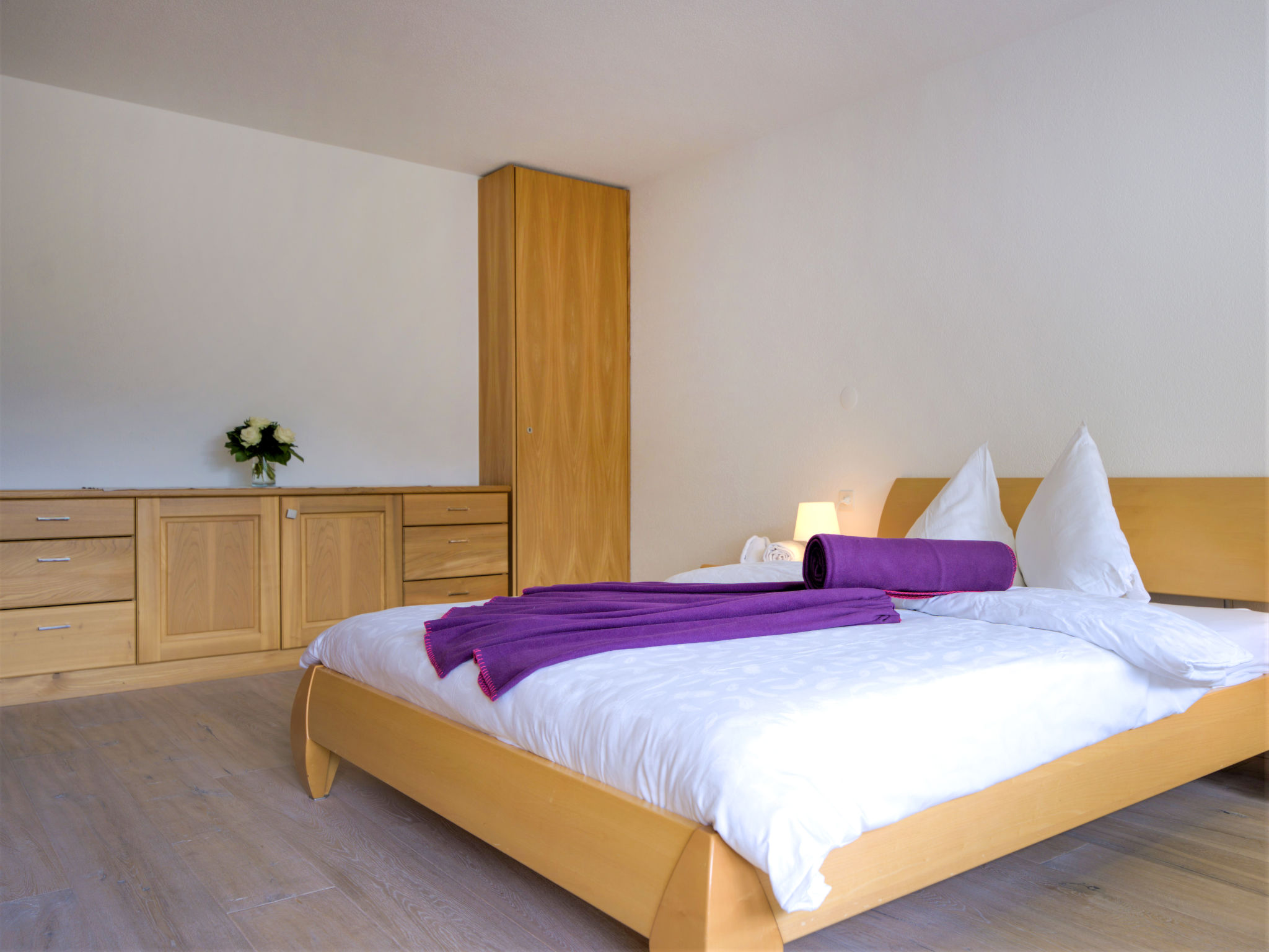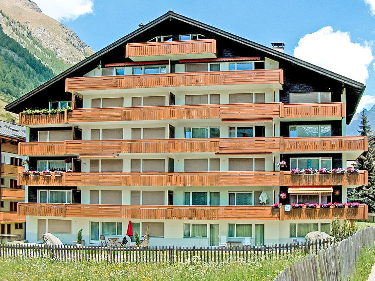3-Zimmer-Wohnung 65 m2 im 5. Stock. Objekt geeignet für 2 Erwachsene + 2 Kinder. Komfortabel und gemütlich eingerichtet: Wohnzimmer mit TV, Radio und CD. Ausgang zum Balkon. 1 Zimmer mit 1 Doppelbett (2 x 90 cm, Länge 200 cm). 1 Kinderzimmer mit 1 x 2 Etagenbetten (90 cm, Länge 200 cm). Kleine Küche (3 Kochplatten, Backofen, Geschirrspüler, Toaster, Wasserkocher, Tiefkühler, elektrische Kaffeemaschine, Racletteofen, Fondue Set (Chinoise, Käse)) mit Esstisch. Bad/WC. Balkon, Südlage. Balkonmöbel. Schöne Sicht auf das Matterhorn. Zur Verfügung: Haartrockner. Internet (Wireless LAN, gratis). Bitte beachten: Nichtraucher-Unterkunft.