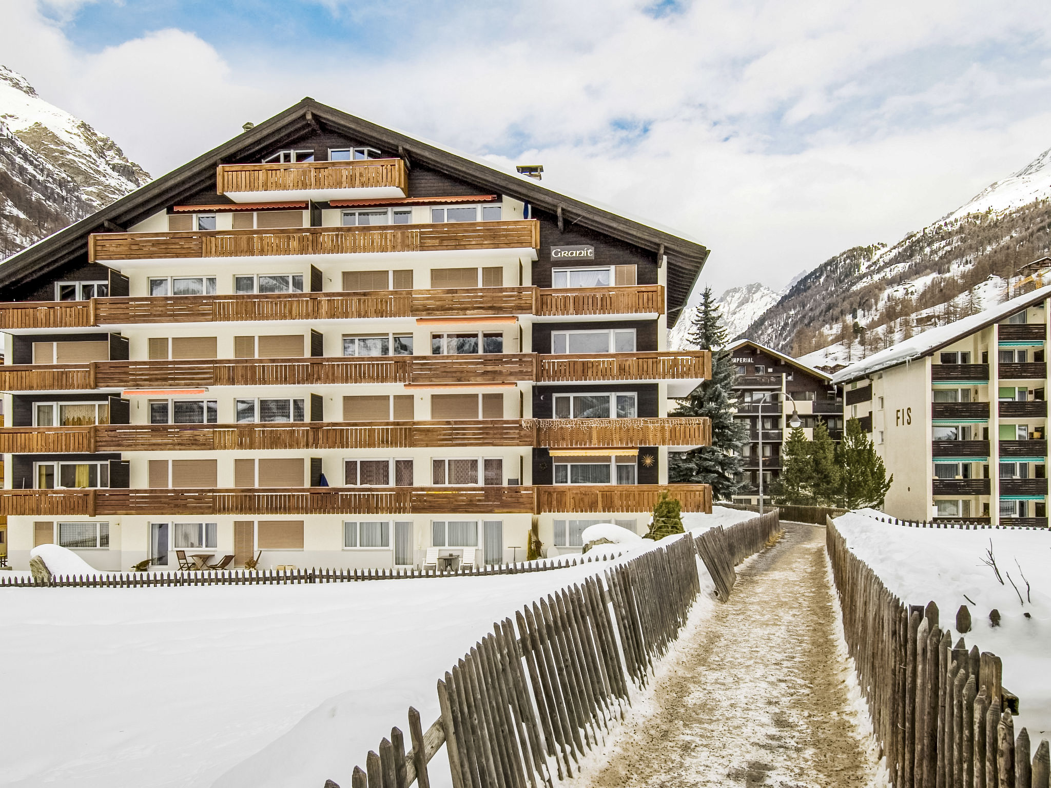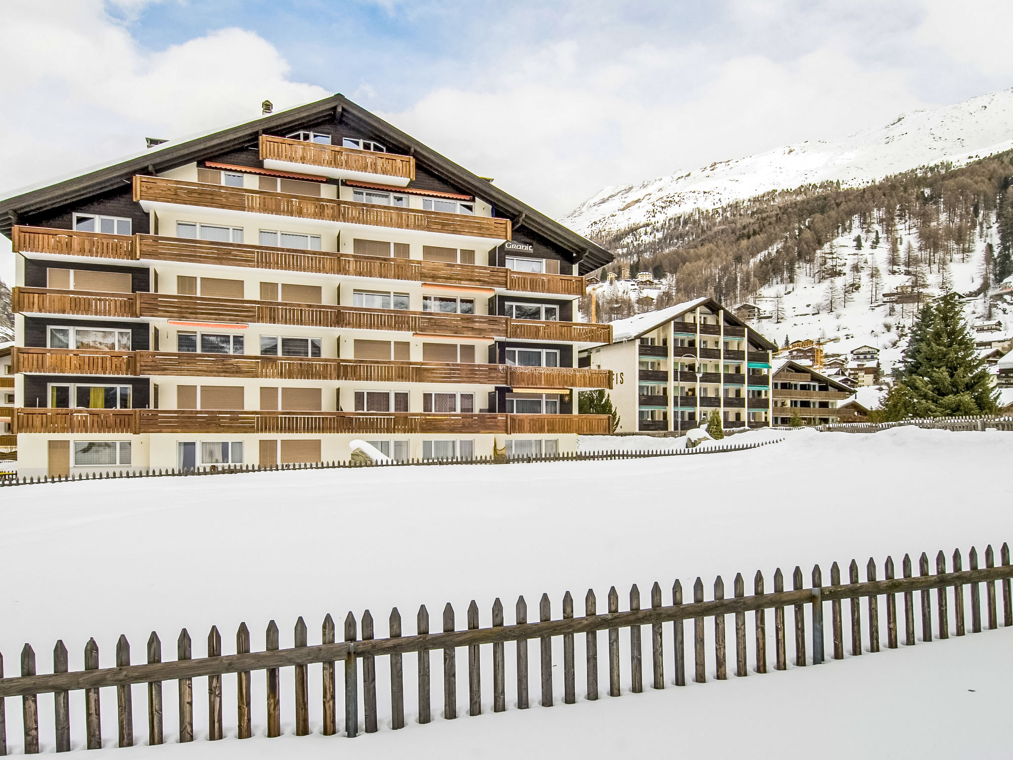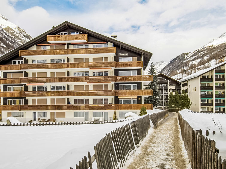 Grosses, schönes Mehrfamilienhaus "Granit", auf 5 Stockwerken. Im Ortsteil Untere Matten, 240 m vom Zentrum von Zermatt, zentrale, ruhige, sonnige Lage. Im Hause: Fahrstuhl, Skiraum, Zentralheizung. Supermarkt, Restaurant, Bar 150 m, Bäckerei 240 m, Café 150 m, Zentrum zu Fuss in 5 Minuten erreichbar, Bushaltestelle "Wiestibrücke" 170 m, Bahnstation "Bahnhof Zermatt" 240 m. Bergeisenbahn, Skiverleih 240 m, Skibushaltestelle 170 m, Skischule 450 m, Eisfeld 240 m. Taxi kann nicht bis zum Haus fahren. Die Schlüsselübergabe findet bei der Agentur Interhome in Zermatt statt.