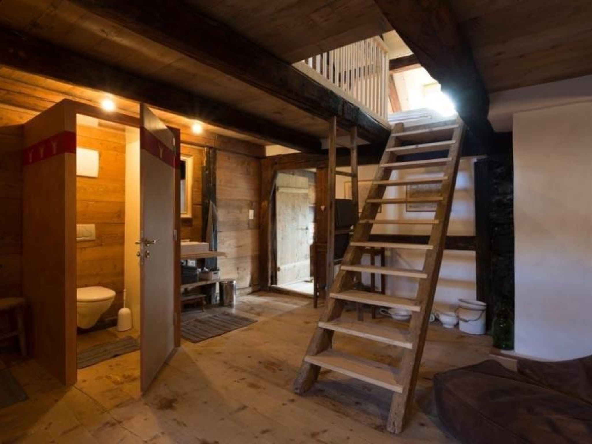 Sonstige Kücheneinrichtung: Behutsamer Umgang mit Bestehendem: Die neue Küche fügt sich harmonisch in die alte Bausubstanz ein. Der Sandsteinofen ist noch funktionstüchtig, das Haus wird jedoch über ein Boden- und Wandheizsystem geheizt. Die Kaffeemaschine funktioniert mit Kapseln. Kaffeemaschine Delizio mit ca. 10 Kapseln, die in Migros und Coop erhältlich sind. Ein Kaffeekocher Bialetti, eine Waage, ein Stabmixer und ein Wasserkocher, genügend Küchentücher und Reinigungsmittel. Etwas Gewürze, Essig und ÖL. Ein Sandsteinofen kann eingefeuert werden und gibt Wärme in der Stube. Holz ist draussen vor der Küche vorhanden.