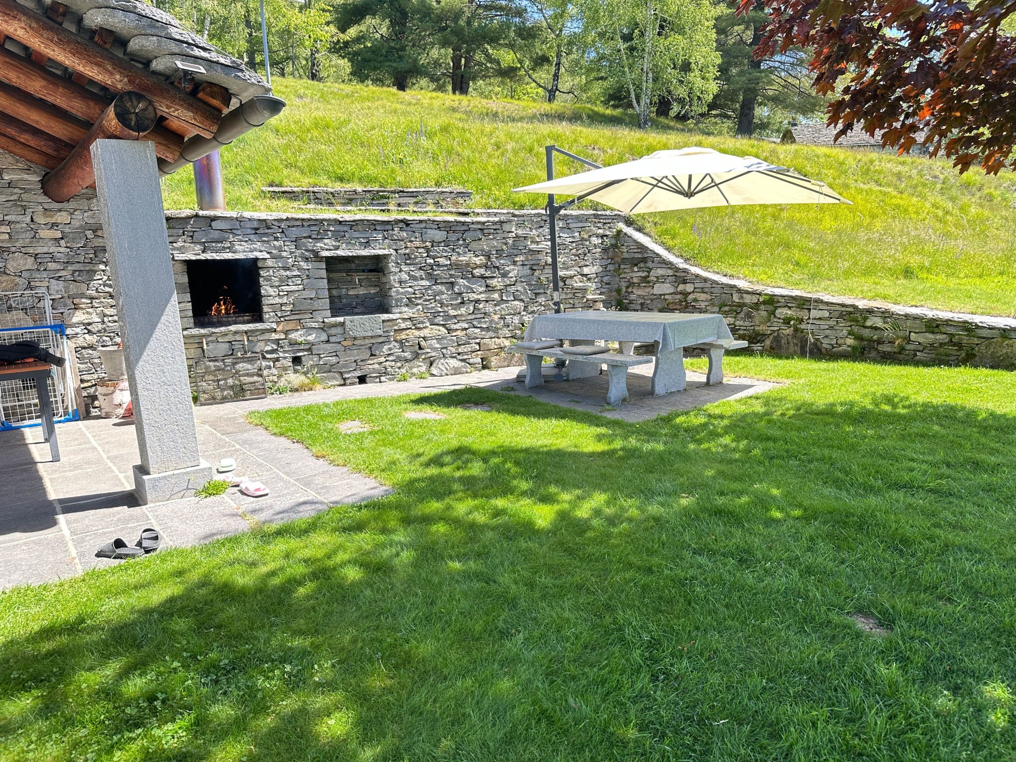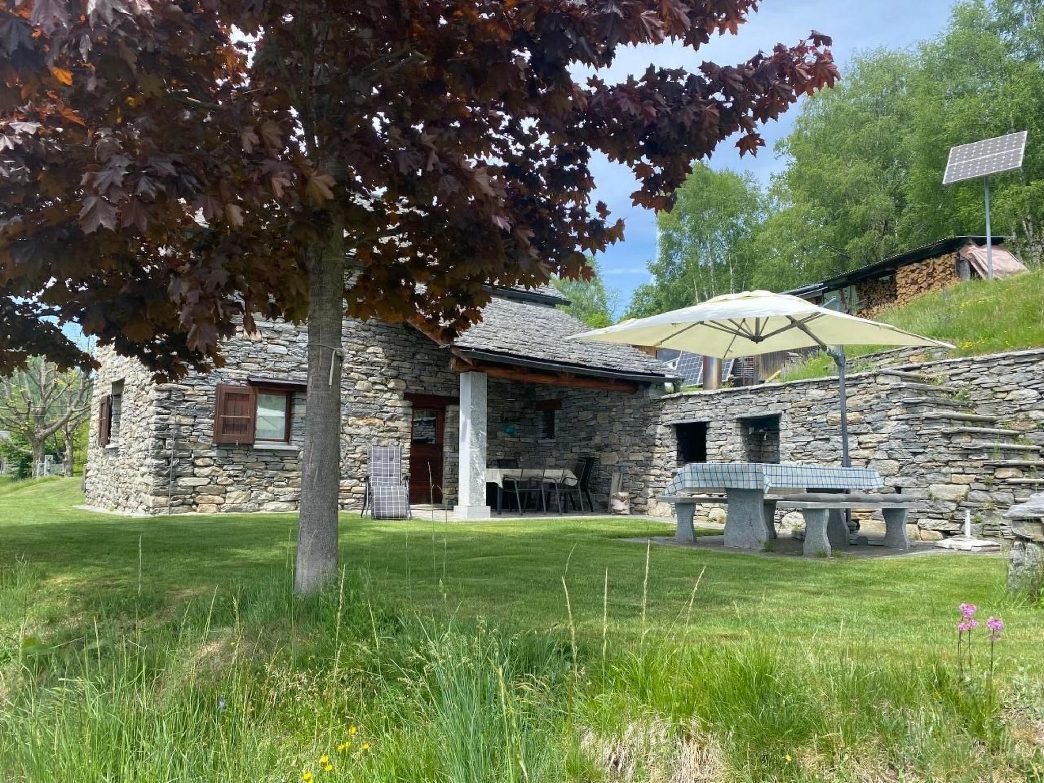 Vollständig renoviertes Rustico mit unverbaubarem Blick über das Centovalli zum Monte Rosa. Grosse terrassierte Rasenfläche. 3 Minuten von der Luftseilbahn Verdasio-Comino entfernt. Restaurant und Grotte 3 Minuten entfernt. Die Berge von Comino liegen auf 1200 m ü.d.M. und sind mit der Seilbahn in 6 Minuten oder zu Fuß in 1 Stunde zu erreichen. Auf dem Berg kreuzen sich auch viele Wanderwege. 90 m2 komplett renoviertes, rustikales Haus. Erdgeschoss: große Wohnküche mit Kühlschrank und Gaskocher, Kamin, Sat-TV, Radio; Dusche/WC. 1. Stock: 2 Schlafzimmer (je 2-3 Betten). Draußen: großer Garten mit Granittisch und Grill. Strom aus Sonnenenergie.