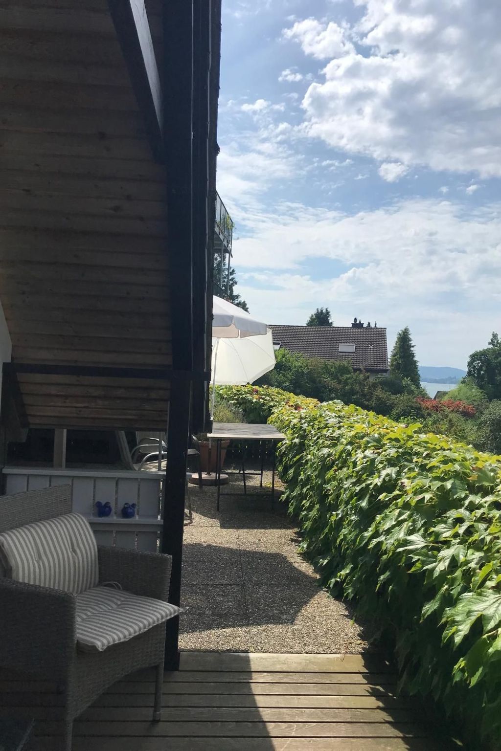 In Steckborn, an Hanglage 4 1/2 Zimmer-Maisonnette-Wohnung (Holzbau) mit separatem Eingang von aussen, Cheminéeofen innen und aussen, offener Küche ins Ess- Wohnzimmer, ein Badezimmer mit Badewanne und Duschmöglichkeit sowie einer grossen Sonnenterrasse mit fantastischer Aussicht auf den Bodensee (Untersee TG).