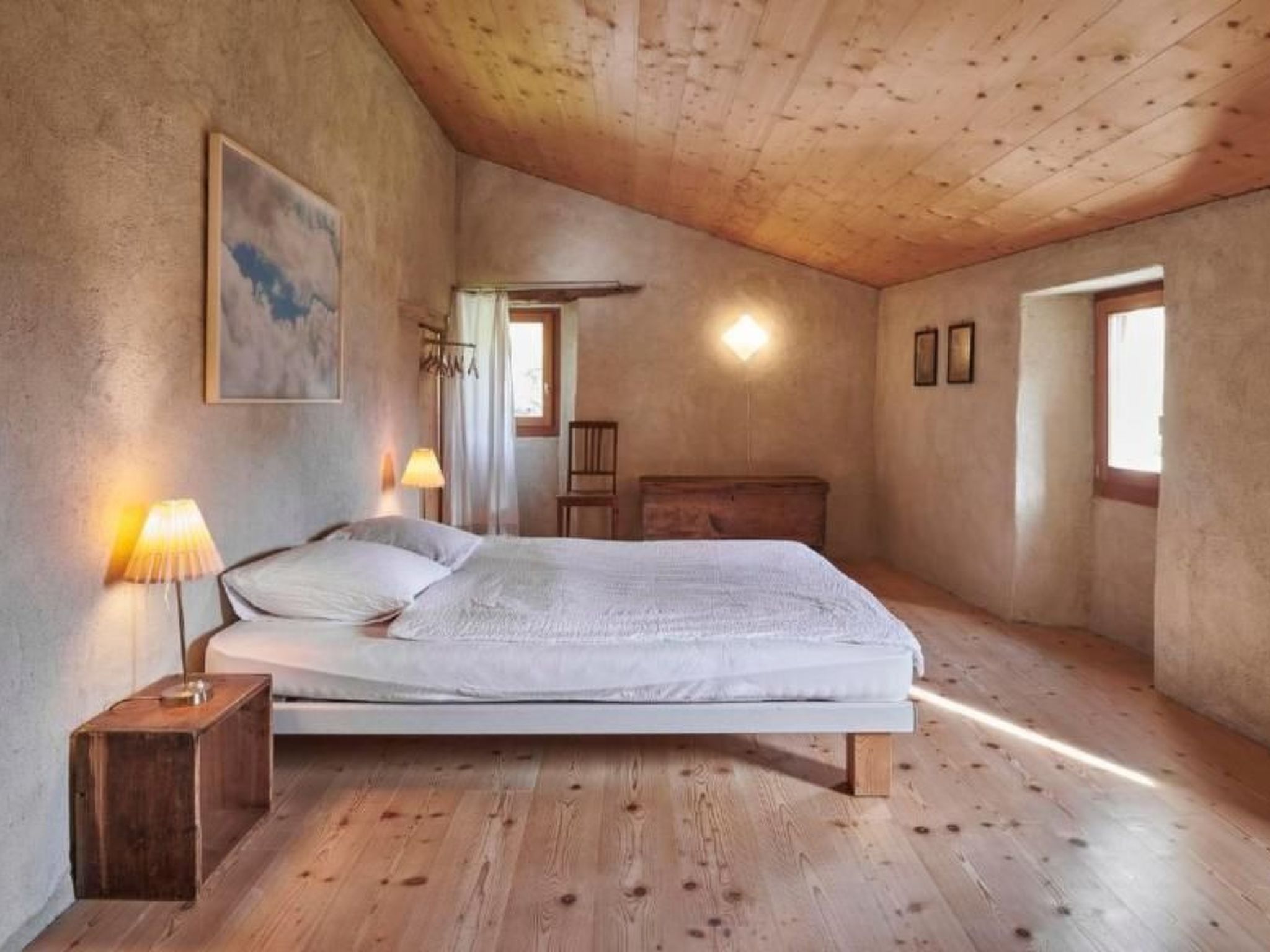 Sonstige Schlafzimmereinrichtung: Das Haus bietet Platz für 6 Personen. Neben den beiden Schlafzimmern im Dachgeschoss mit Doppelbett und zwei Einzelbetten verfügt die sog. «Stüva» im Hof über ein zusätzliches, kleines Doppelbett. Dieser Raum ist nur von aussen über die Terrasse zu erreichen. Angrenzend an das Schlafzimmer 1 befindet sich das Badezimmer.