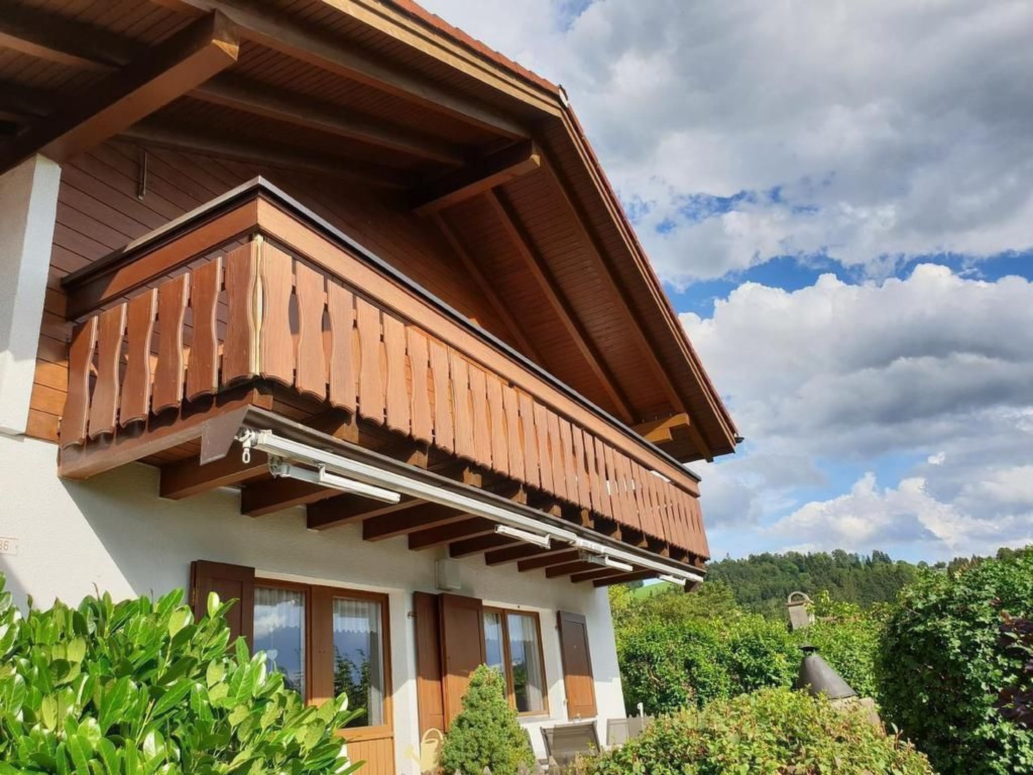Die Außengestaltung unseres Chalets ist ebenso überzeugend. Eine große, möblierte Terrasse mit Cheminée/Grill und ein ebenso möblierter Balkon, dessen Boden neu verlegt wurde, bieten ausreichend Platz für entspannte Stunden im Freien. Der sorgsame Zugang zum Haus und zur Terrasse sowie die liebevoll gestaltete Umgebung unterstreichen das harmonische Gesamtbild.