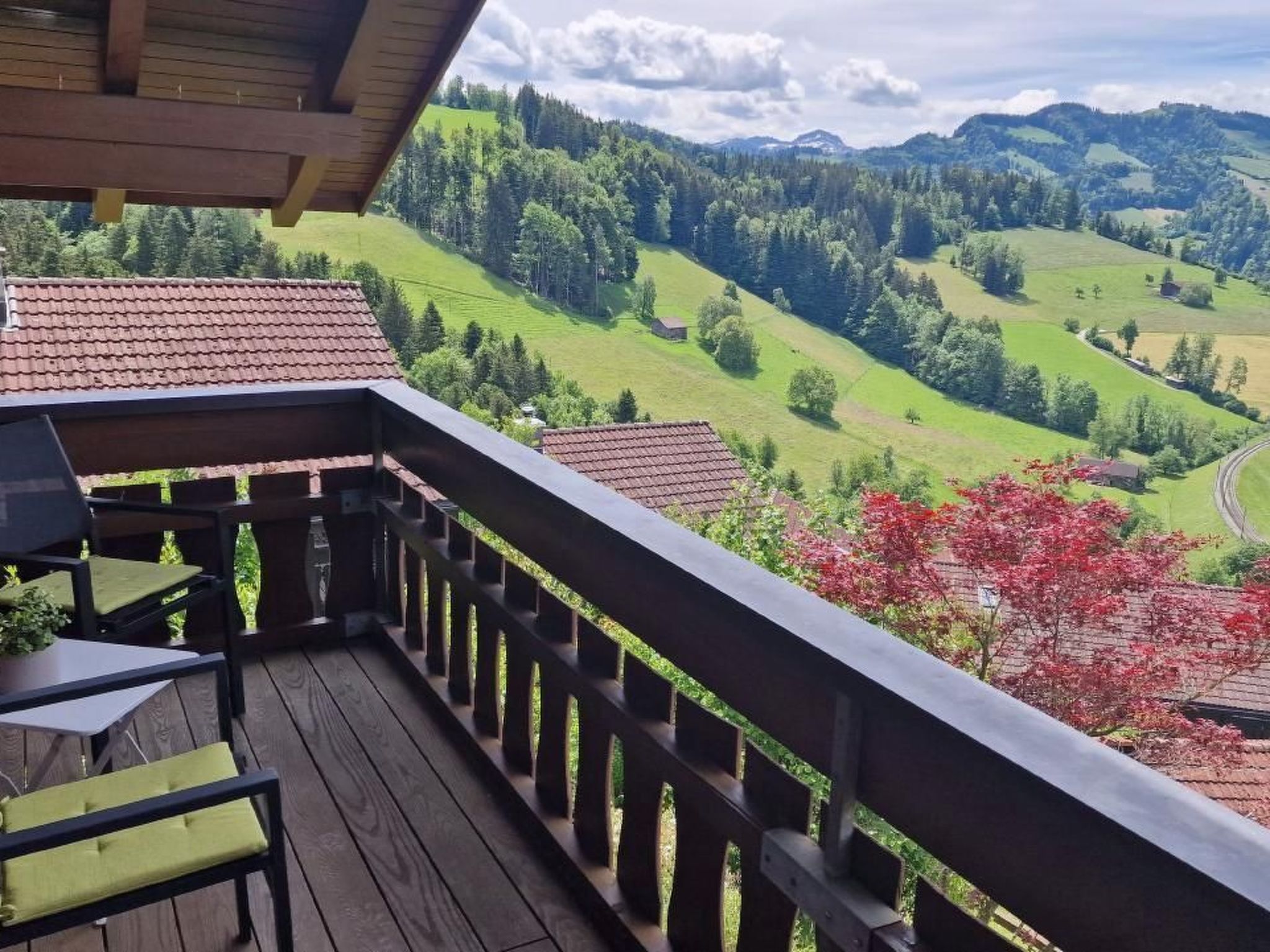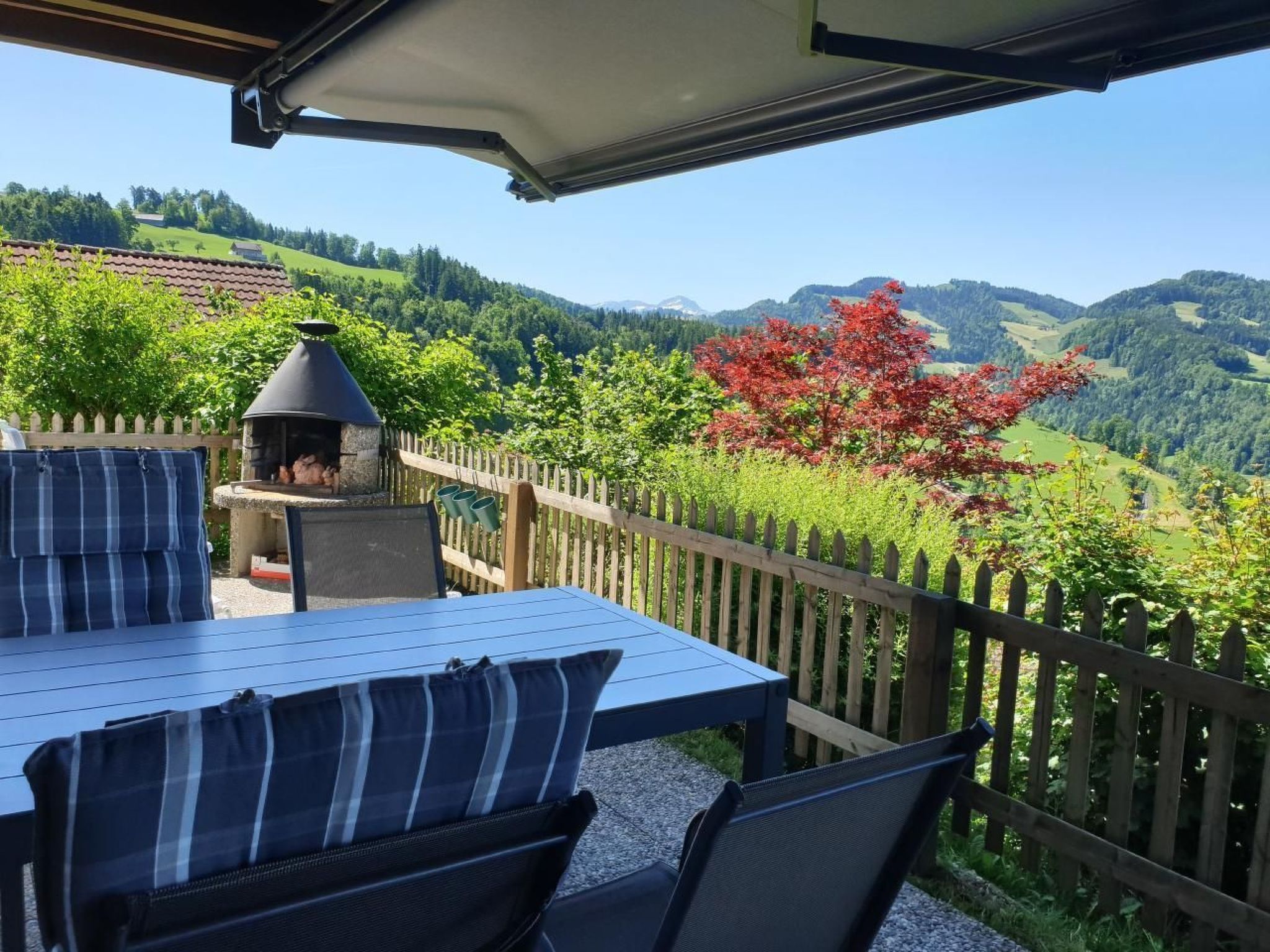 Entdecken Sie unser charmantes Ferienchalet, das seit Frühling 2024 nach umfassenden Renovationsarbeiten innen wie außen in neuem Glanz erstrahlt. Es befindet sich an einem sonnigen Südhang am oberen Rand der Chalet-Siedlung "Sonnmatt" in Mogelsberg SG, nur einen Steinwurf entfernt vom atemberaubenden "BAUMWIPFELPFAD Neckertal". Genießen Sie die ruhige Lage und die prächtige Aussicht auf die malerische Hügellandschaft des Neckertals. Diese Unterkunft ist der ideale Rückzugsort, um in der Natur zu entspannen und die Seele baumeln zu lassen.