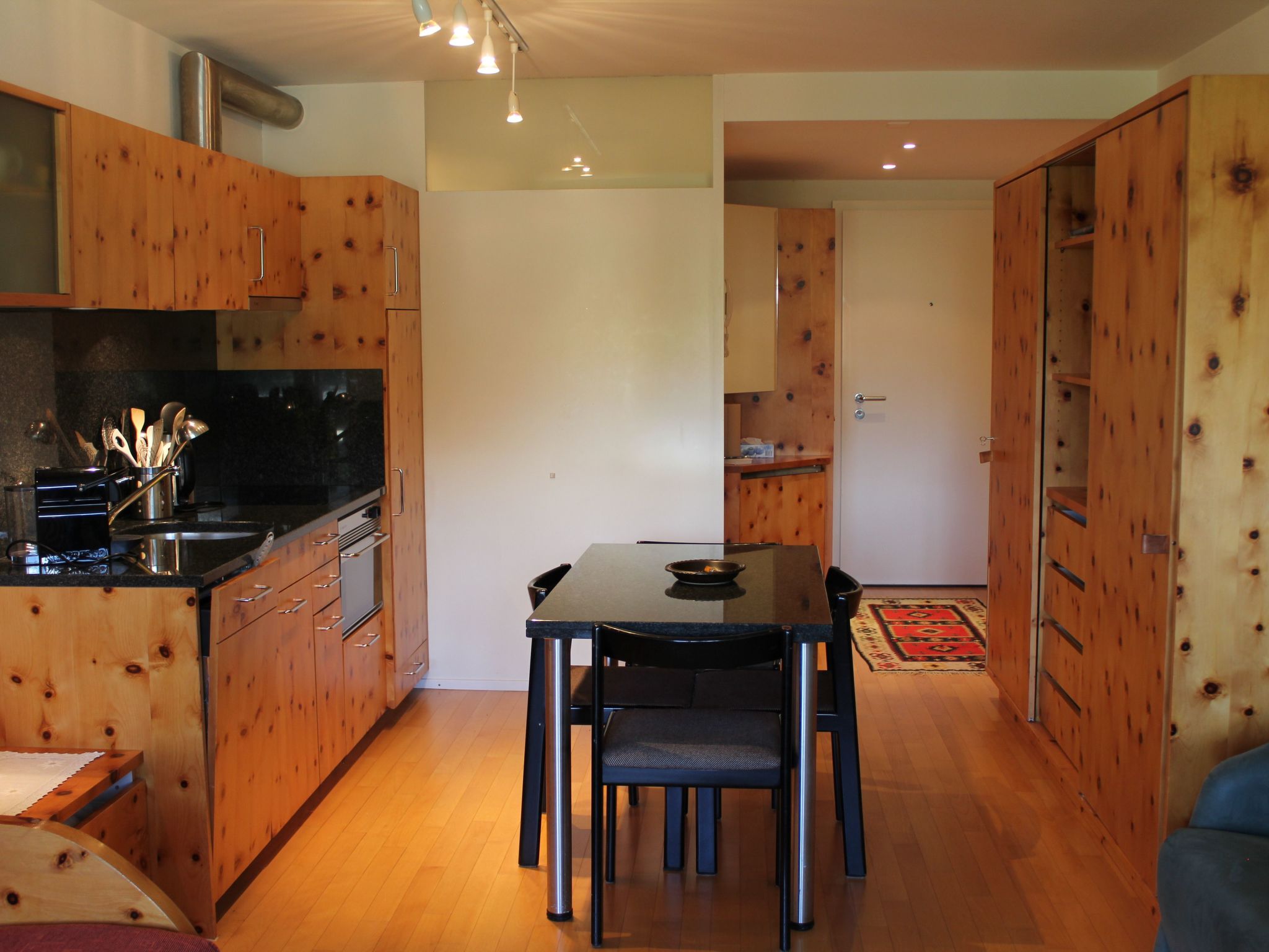 In der Wohnung finden Sie ein gemütliches Wohnschlafzimmer, das mit einem Bettsofa, einem Sessel, einem Tisch, Stühlen, einem Fernseher, Radio und Wireless-LAN ausgestattet ist. Die Küche lässt keine Wünsche offen und bietet einen Kühlschrank mit kleinem Gefrierfach, einen Backofen, einen Geschirrspüler sowie ausreichend Geschirr, Gläser, Besteck und Pfannen. Für die kalten Winterabende stehen Ihnen ein Fondueset und ein Raclette-Ofen zur Verfügung. Das Badezimmer ist mit einer Dusche, einer Toilette und einem Waschbecken ausgestattet, alles gestaltet für Ihren Komfort.