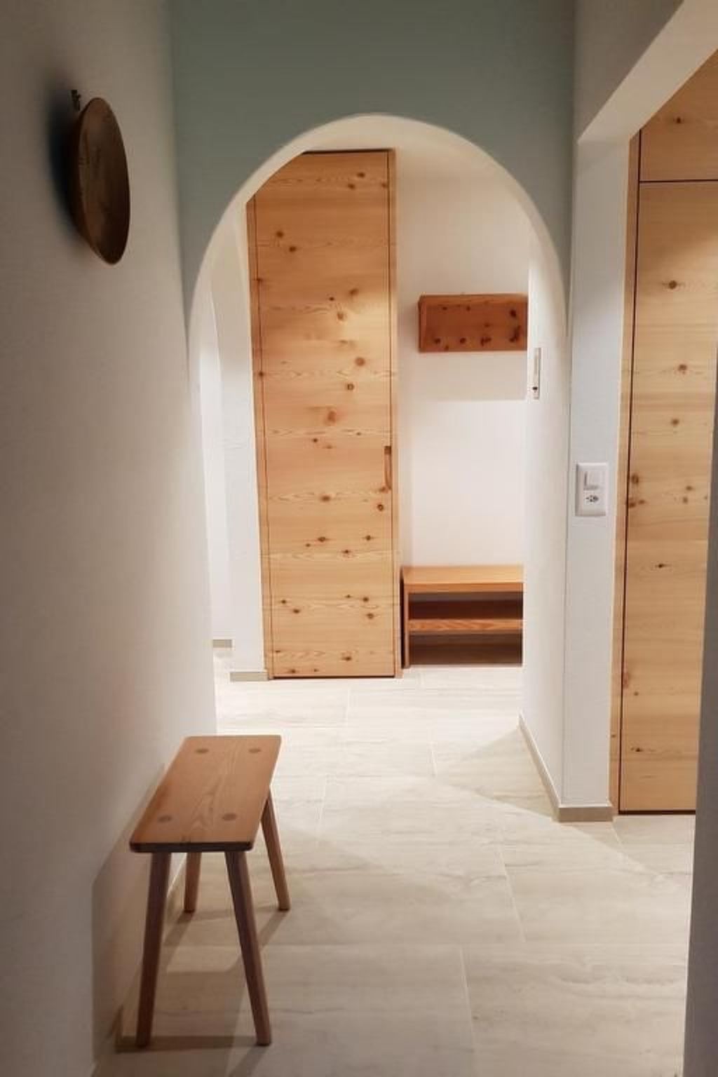 Das gemütliche Wohnzimmer ist mit Holztäfer, Polstergruppe und Kamin ausgestattet. Die Wohnung bietet kostenlosen WLAN (Glasfaser) und Kabel-TV. Das Esszimmer hat einen Arvenholztisch mit Eckbank und Stühlen. Das Schlafzimmer verfügt über zwei Betten mit zwei einzelnen Matratzen und einen Arvenholzschrank. Die offene Galerie oberhalb des Wohnzimmers ist mittels interner Treppe erreichbar und ist mit zwei Betten mit zwei einzelnen Matratzen und einem Arvenholzschrank ausgestattet.