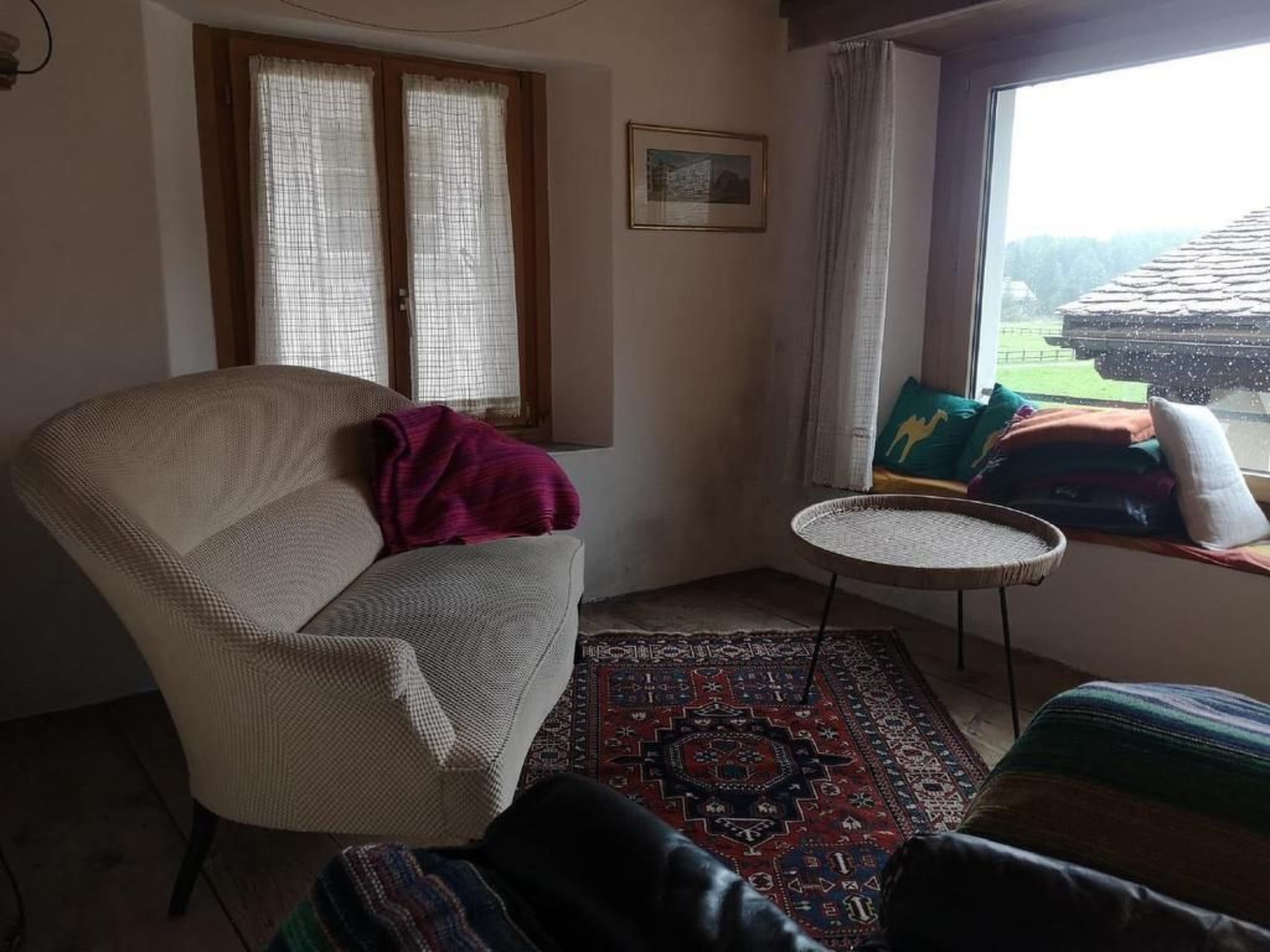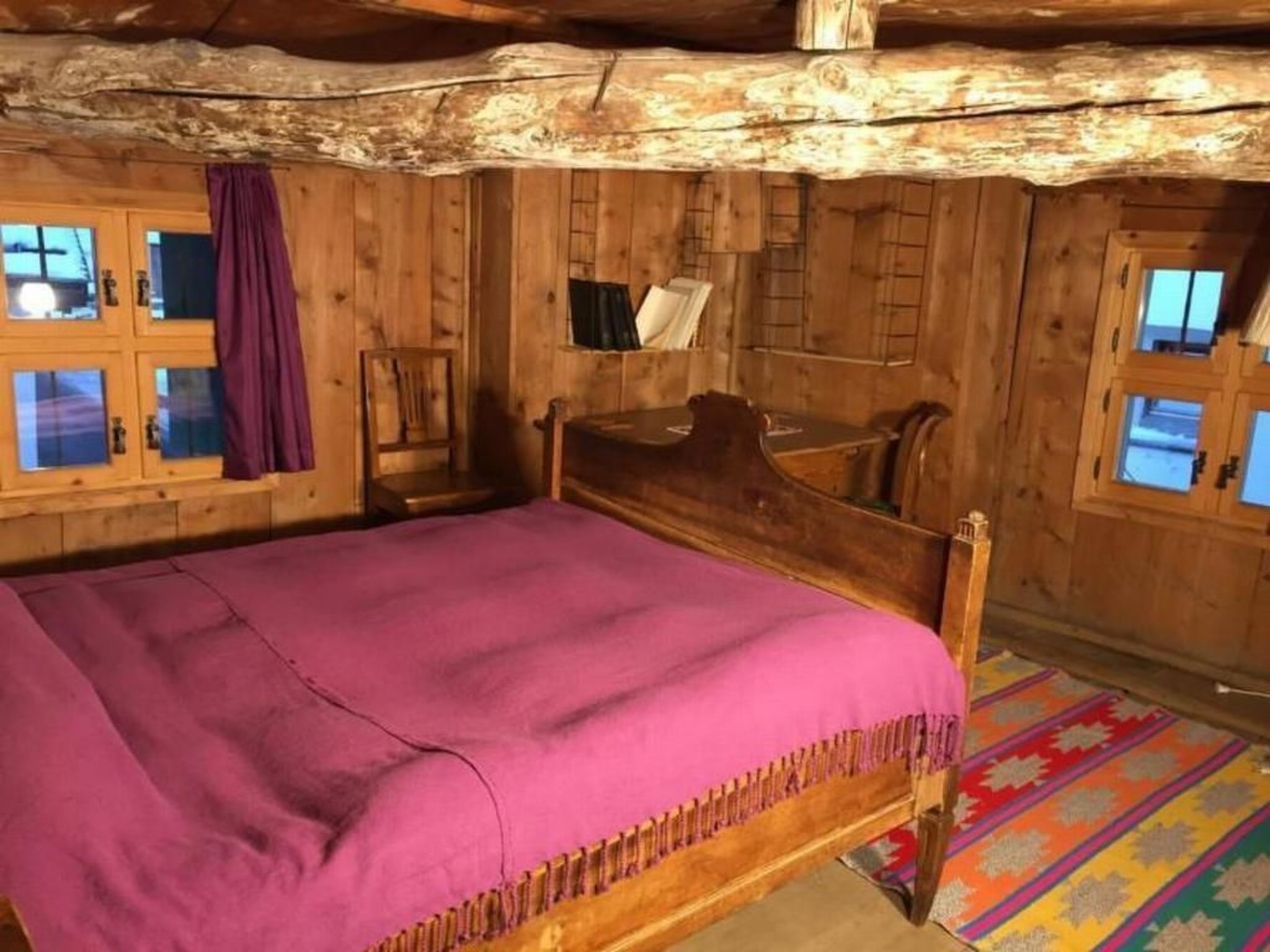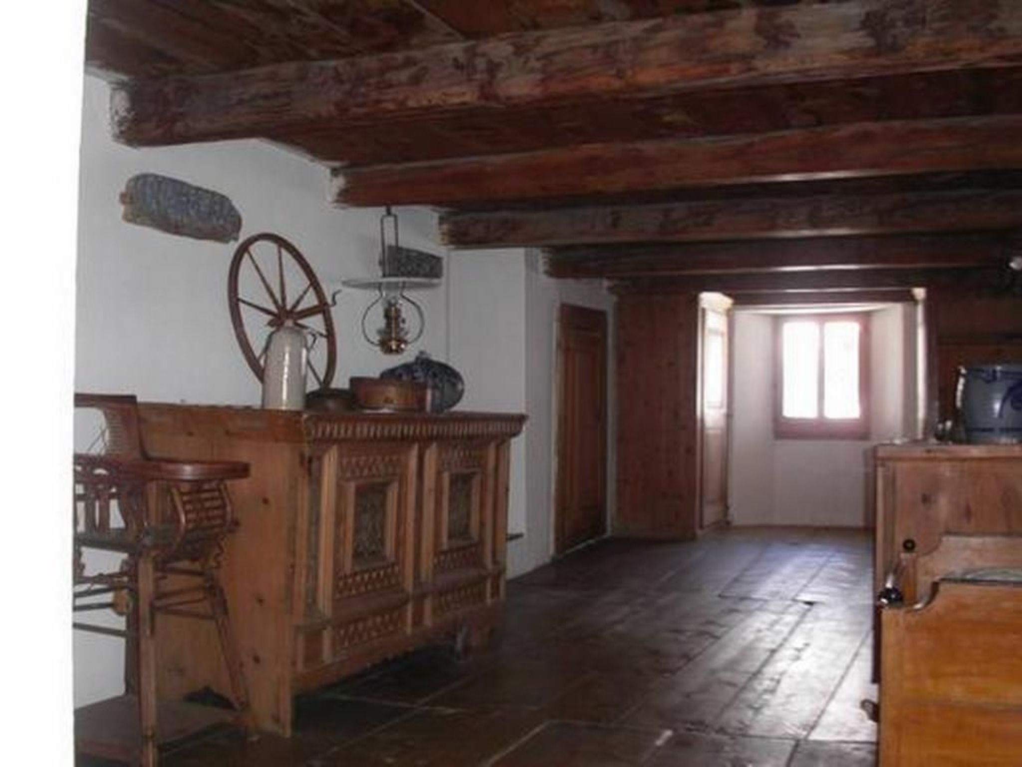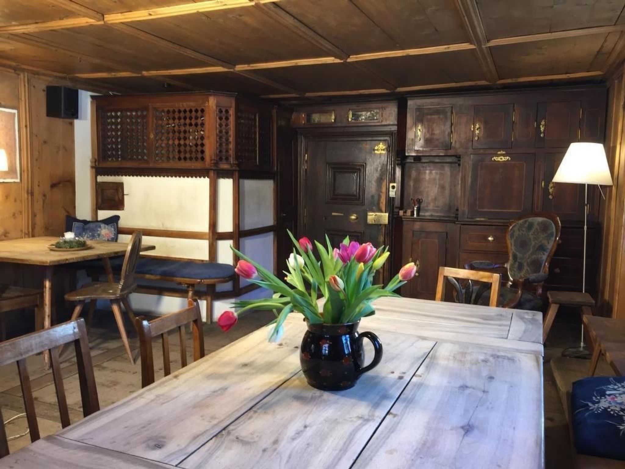 Das Haus (Baujahr 1792) steht unter Denkmalschutz; wir haben es nur vorsichtig und mit Respekt gegenüber der alten Bausubstanz modernisiert. Die mit Arvenholz getäferte Wohnstube wird von der Küche her mit einem alten Engadiner Ofen geheizt. Eine kleine Holztreppe führt zu den darüber liegenden Schlafzimmern.