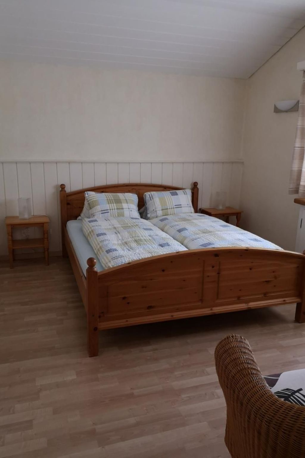 Sonstige Schlafzimmereinrichtung (Schlafzimmer1): Französchisches Doppelbett mit Nachttischen und Lampen. Einbauschränke.