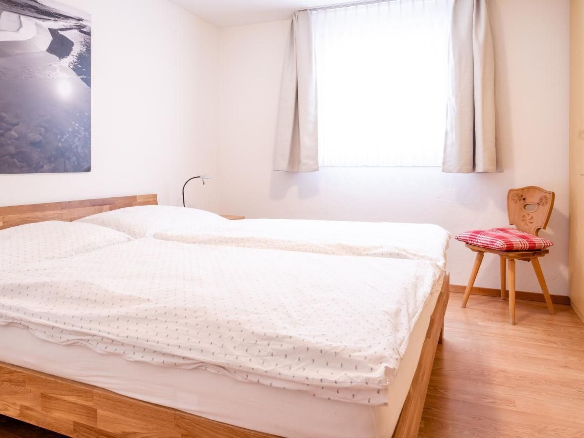 Das Schlafzimmer verfügt 2 Einzel-Betten mit grossem Einbauschrank mit viel Stauraum.