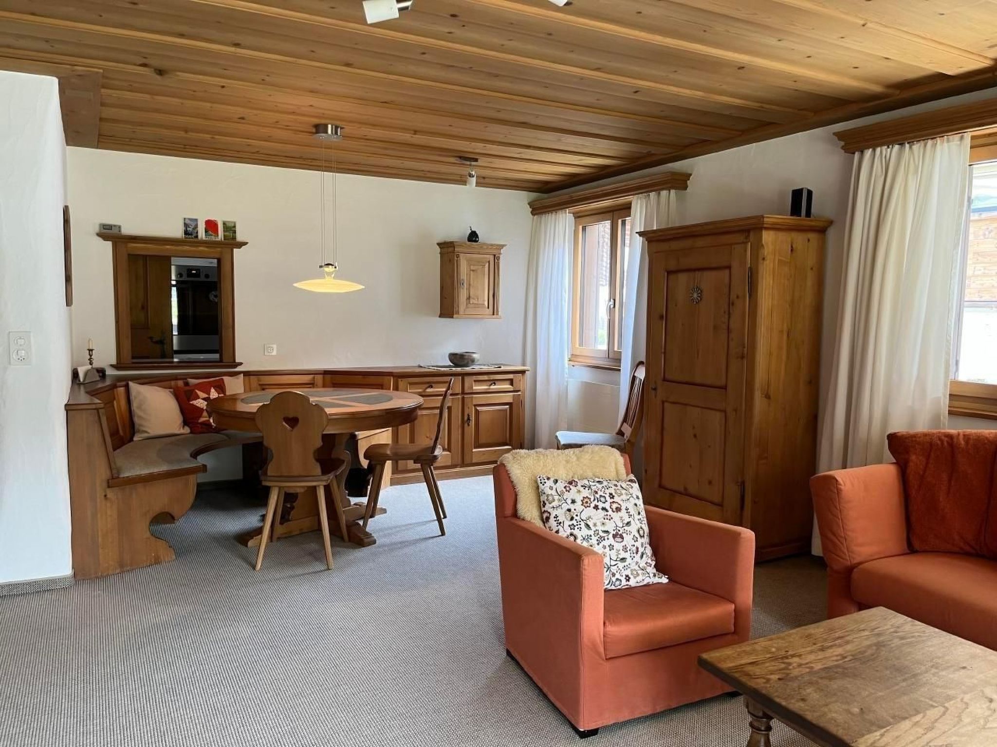 Im Innern erwartet Sie eine äußerst geschmackvoll und komfortabel eingerichtete 3 1/2-Zimmerwohnung auf 86 m2 im ersten Obergeschoss, erreichbar mit einem Lift für Ihren Komfort. Das Juwel der Wohnung ist das 36 m2 große, lichtdurchflutete Wohnzimmer mit offenem Kamin und einem gemütlichen Essbereich, der zum Verweilen einlädt. Weiterhin stehen Ihnen modernste Annehmlichkeiten wie TV, Radio, CD & DVD Player mit Surround System und WLAN zur Verfügung. Die angrenzende Küche lässt keine Wünsche offen und ist mit Geschirr für 12 Personen, Glaskeramikherd, Backofen, großem Kühlschrank, Geschirrspüler sowie einer Nespresso- und Filterkaffeemaschine, Raclette- und Fondueset umfassend ausgestattet. Auch für Unterhaltung ist mit einer Auswahl an Büchern, DVDs, sowie Bike- und Wanderkarten bestens gesorgt.