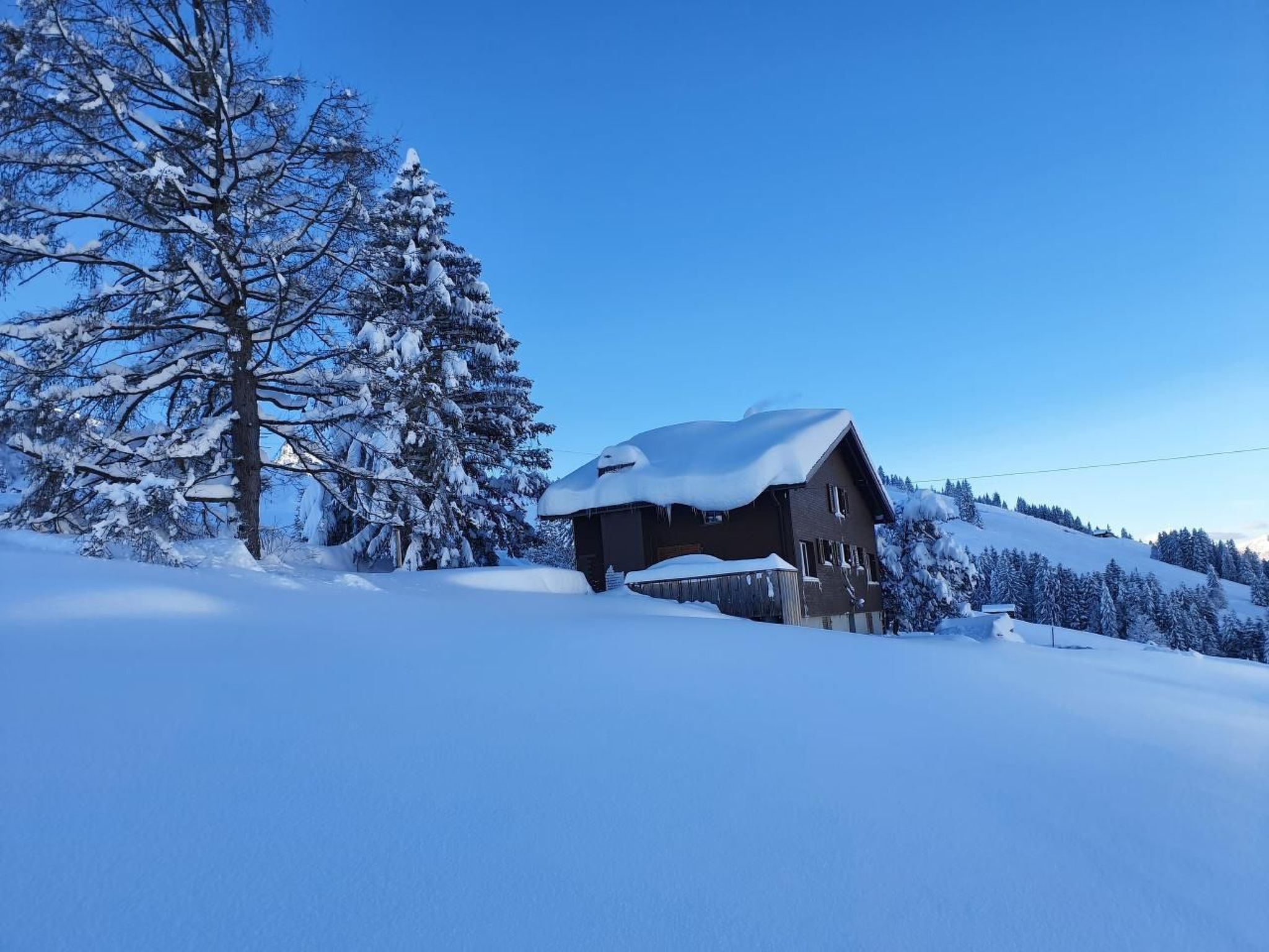Im Jahre 2021 wurde auf dem Dach eine neue PV-Anlage installiert, welche das Haus weitmöglichst mit Sonnenenerige versorgt. Das Haus wird Quellwasser eingespeist gemeinsam mit den beiden weiter entfernten Nachbarschaften. Im Winter wird der Winterdienst der Zufahrtsstrasse bis zum Haus gewährleistet, führt aber über die Skipiste und benötigt dementsprechende Winterausrüstung.