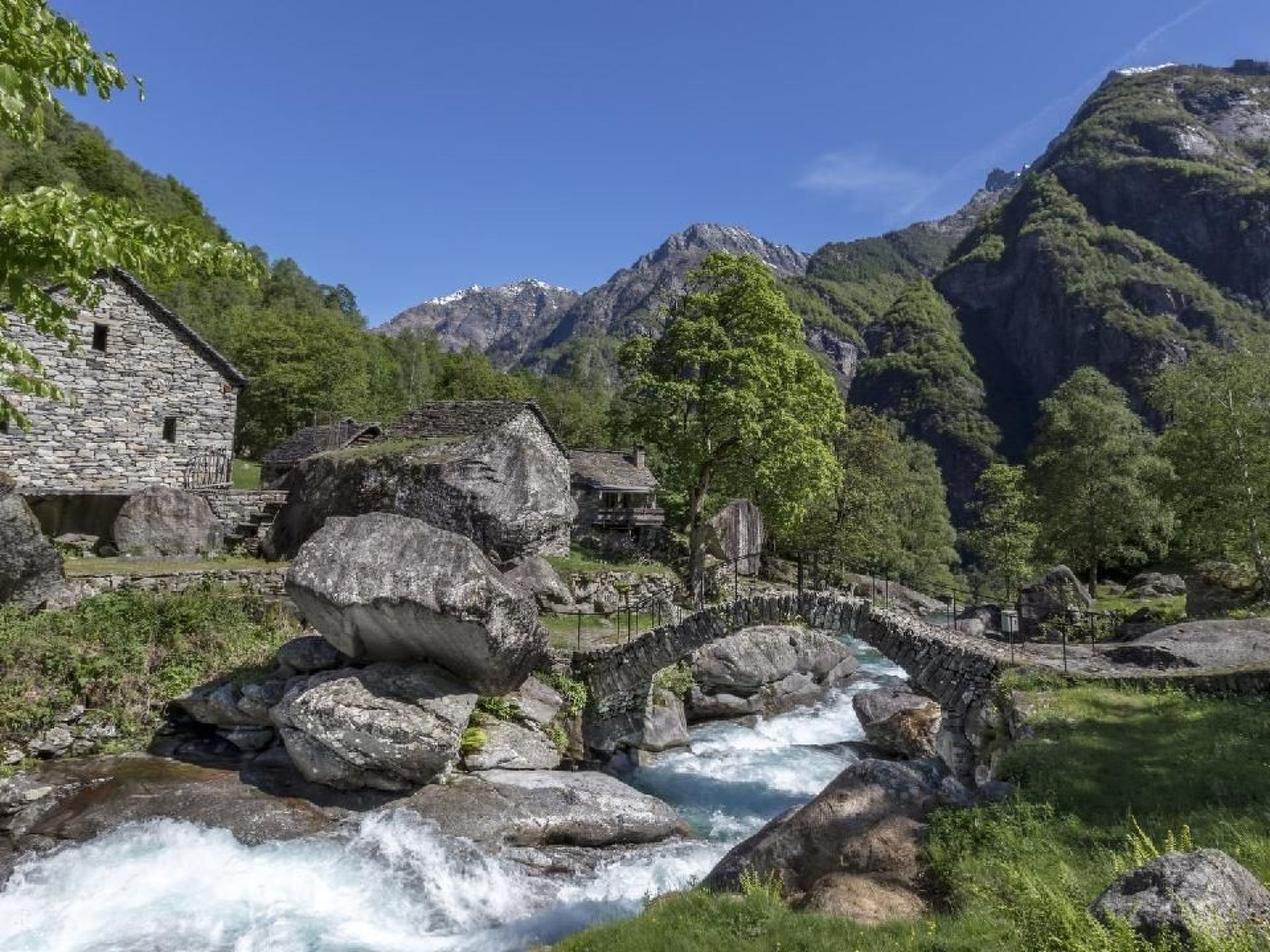 Das Ferienhaus "Atelier" befindet sich in einem Teil unseres Anwesens, das einst einem vielseitigen Künstler gehörte. Es liegt im Zentrum von Maggia und hat einen gemeinsamen Eingang durch einen Rosengarten mit dem Ferienhaus 'Atelier', einen kleinen Privatgarten und einen Blick auf die Berge. Vom Haus aus sind es nur wenige Gehminuten bis zum Hauptplatz des Dorfes, zu Bars und Restaurants, Bäckerei, Supermarkt, Post, Bank, Arzt, Apotheke, dem Fluss Maggia und den Stränden. Der Stil ist rustikal: Holz, Stein, lokaler Granit. Bei der kürzlich durchgeführten konservativen Restaurierung wurde bewusst auf die Verwendung von umwelt- und gesundheitsfreundlichen Materialien geachtet. Die Zimmer sind gemütlich und komfortabel, mit viel Liebe zum Detail. Die Eckküche ist mit Backofen, Geschirrspüler, Kühlschrank und Cerankochfeld ausgestattet. Verschiedene Kleingeräte sind vorhanden, wie z.B.: Kapsel- und Filterkaffeemaschine, Wasserkocher, Toaster... Die Küche ist auch mit einem 'Starter-Kit' ausgestattet, d.h. Gewürze, Salz, Kaffee, Tee, Zucker, Mehl, Öl, etc. Der Buffetschrank ist reichlich mit Küchen- und Tischzubehör ausgestattet. Das separate Schlafzimmer mit Doppelbett verfügt über Nachttische, einen großen viertürigen Kleiderschrank, einen Schreibtisch und einen Blick in den Innengarten. Die bequeme Schlafcouch im Wohnzimmer (160x195cm) bietet Platz für zwei weitere Personen. Das Badezimmer hat eine Dusche/WC und einen Haartrockner. Der kleine Privatgarten mit Pergola ist möbliert (Tisch, Stühle, Liegestühle, Granitbank und Grill). Wir verwenden ökologische Reinigungsmittel.