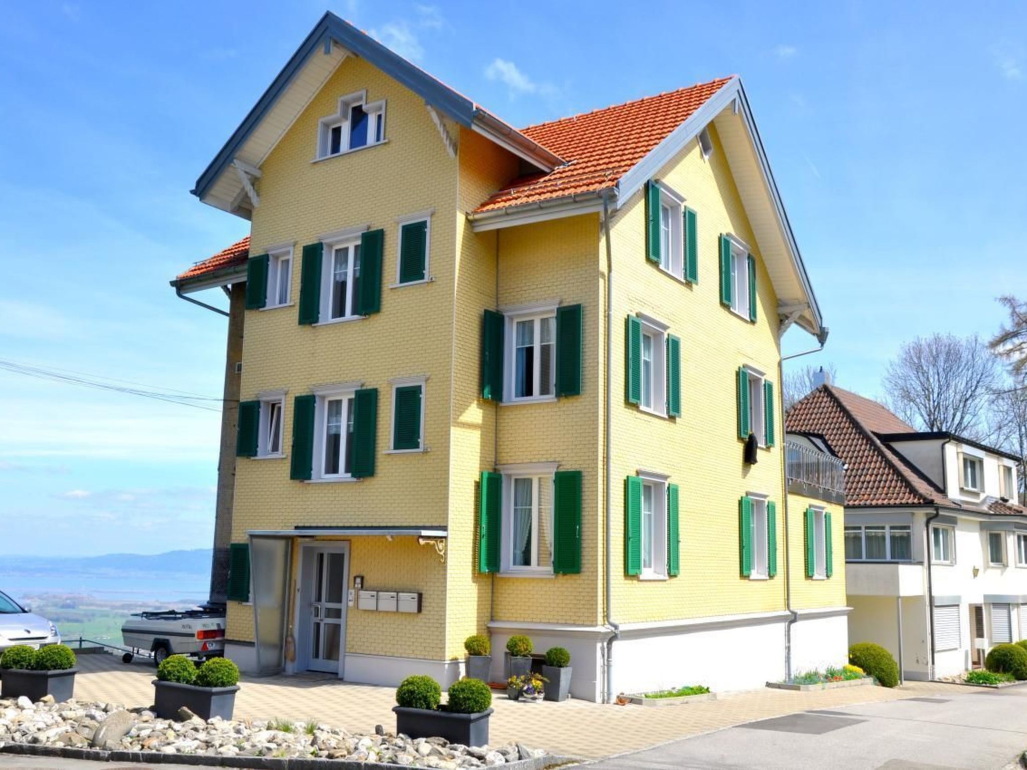 Im Außenbereich der Ferienwohnung können Sie die spektakuläre Aussicht und die friedvolle Ruhe des Appenzellerlandes vollends genießen. Es gibt genügend Platz, sich in der Sonne zu aalen oder einfach die frische Luft in einer der malerischsten Umgebungen der Schweiz zu genießen. Die zur Verfügung stehenden Parkplätze machen die Anreise unkompliziert und sorgenfrei.