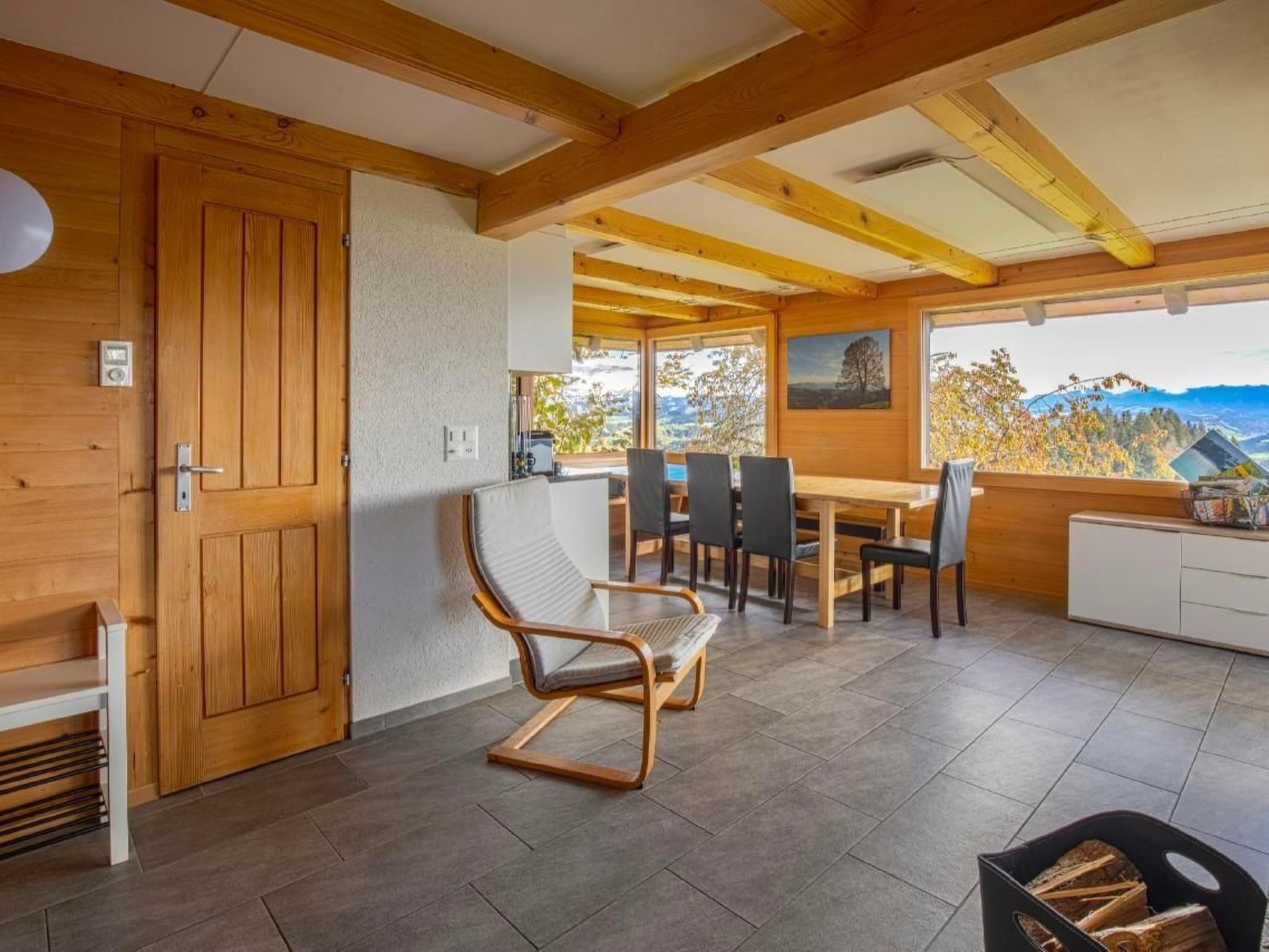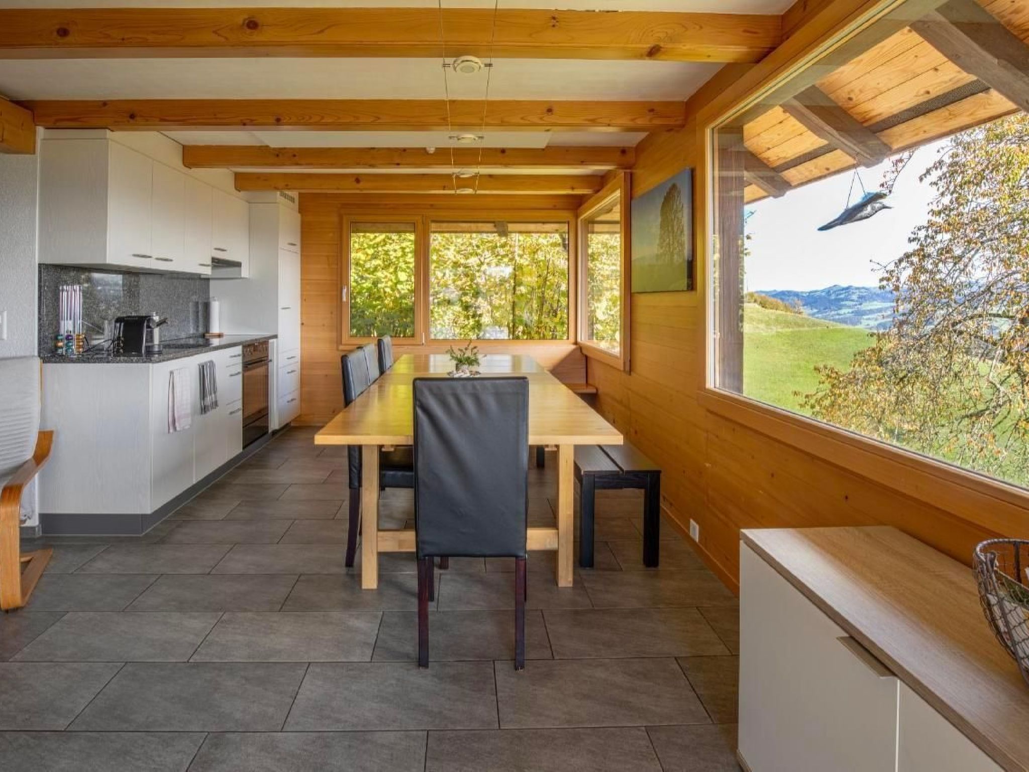 Im Inneren wartet das Haus mit einer sorgfältig ausgewählten Ausstattung auf, die keine Wünsche offenlässt. Das gemütliche Ambiente lädt zum Verweilen und Geniessen ein, egal ob nach einem langen Tag voller Aktivitäten in der Natur oder einem entspannten Tag am Haus. Die moderne und voll ausgestattete Küche ermöglicht es Ihnen, kulinarische Köstlichkeiten zu zaubern und diese mit Blick auf die malerische Umgebung zu geniessen.