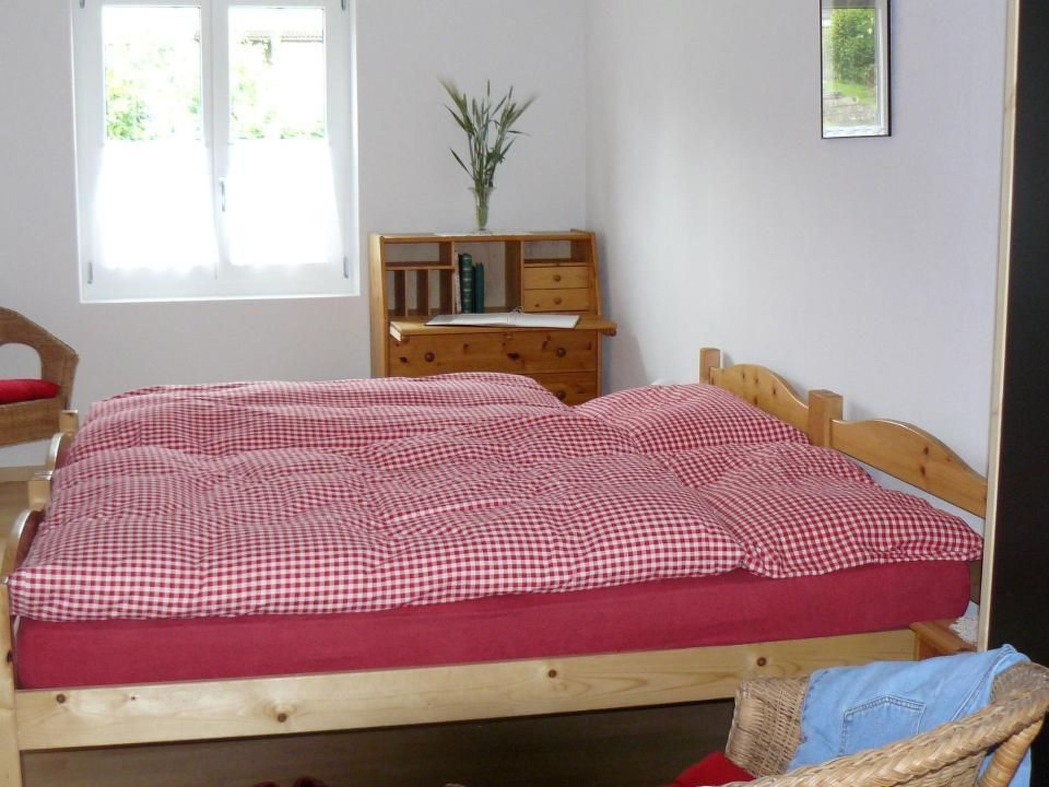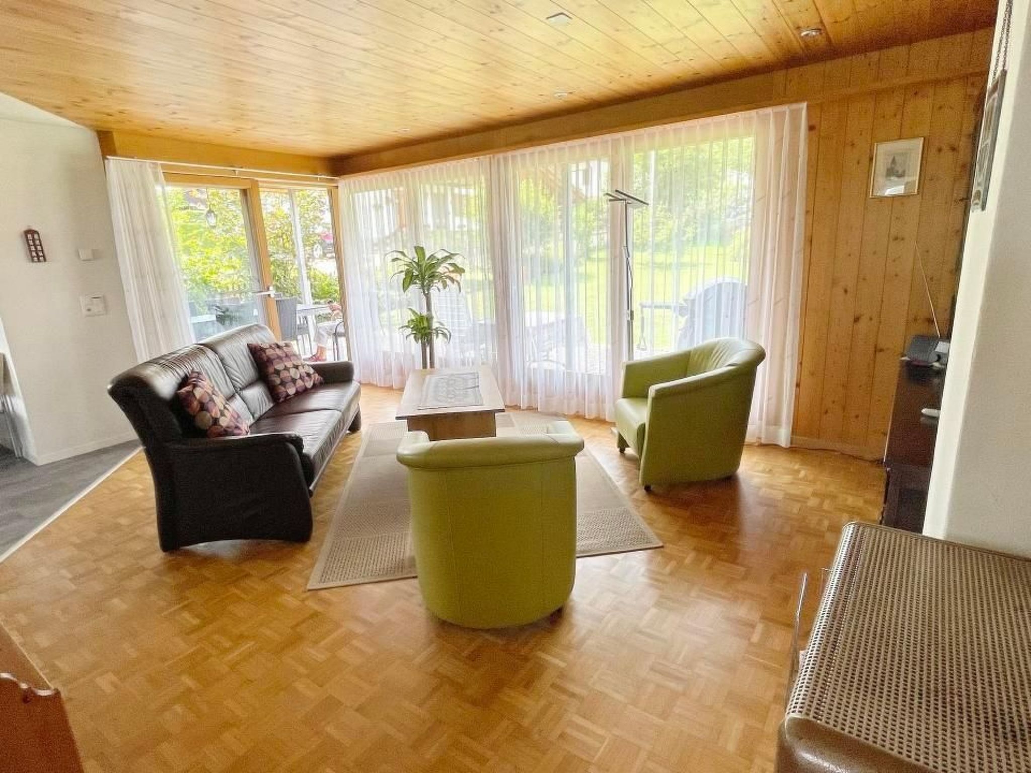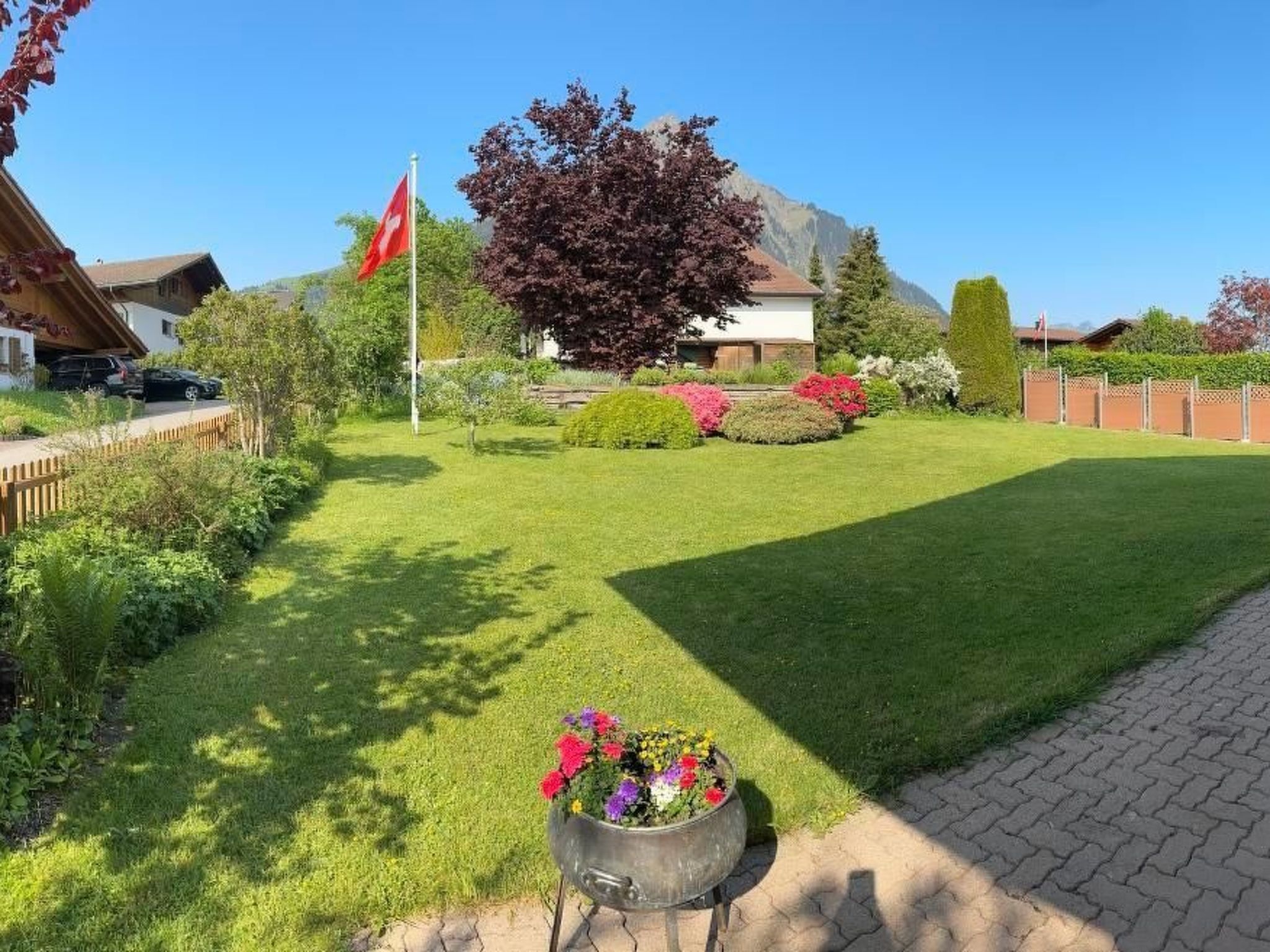 Das 2200 Seelendorf liegt ca 900 m.ü.M über dem Thunersee und ist umrundet mit einer herrlichen Berglandschaft. Der Hausberg Niesen, (die größte Pyramide weltweit) umarmt geradezu beschützend den Hügelzug von Aeschi. Unser Ferienhaus liegt an der Strasse zwischen Aeschi und Aeschiried. Es ist allein bewohnbar und wurde 2008 komplett renoviert und aufgestockt.Das "Sunneggli" ist sehr gemütlich eingerichtet und bietet Platz für bis zu 6 Personen. Mit schöner Wohnküche, 1 Wohnzimmer, 3 Schlafzimmer, TV, Radio, Telefon, 2 Duschen/WC, gedeckter Sitzplatz, grosse Rasenfläche, Garage. Ein grosser Spielplatz, sowie die Bushaltestelle befinden sich in unmittelbarer Nähe.Im nahe gelegenen Ort Aeschi (1 km)gibt es alle Geschäfte für den täglichen Bedarf (Supermarkt, Bäcker, Metzger, Zeitungen, Schreibwaren, Bank). Darüber hinaus bieten die größeren Städte der Umgebung wie Thun (10 Min.) und Interlaken (15 Min.) oder auch die schnell erreichbare Hauptstadt Bern (30 Min.) alle Einkaufs- und Shoppingmöglichkeiten. In dem Kurort Interlaken (ca.15 km) befindet sich ein 18 Loch Golfplatz. Von dort startet auch die Jungfraujoch-Bahn, die - vorbei am weltbekannten Skiort Grindelwald nahe den Eisriesen Eiger, Mönch und Jungfrau - durch die Eiger-Nordwand bis auf eine Höhe von 3.500 Meter führt.